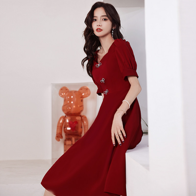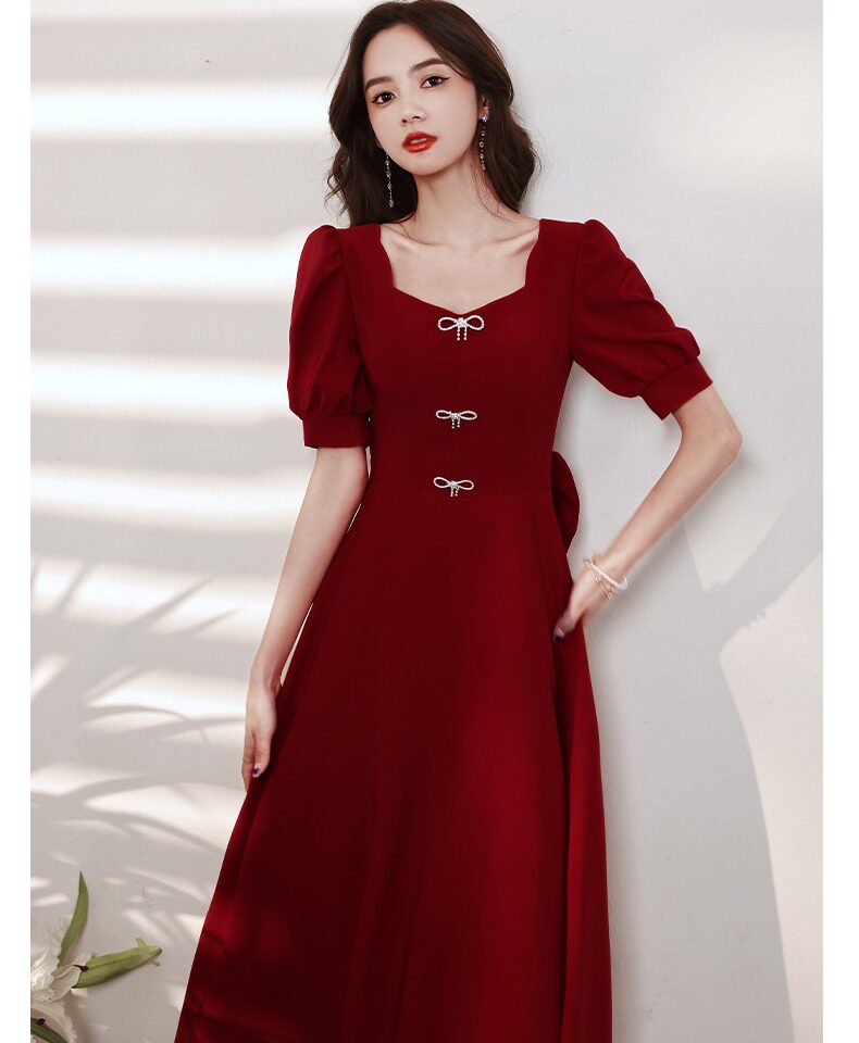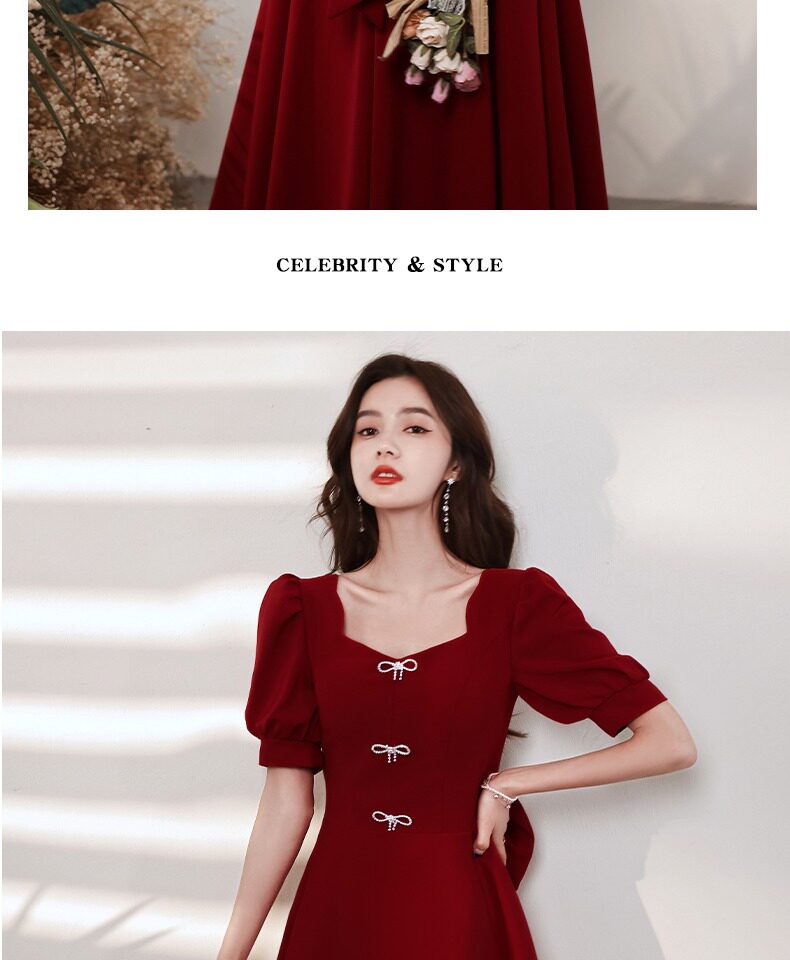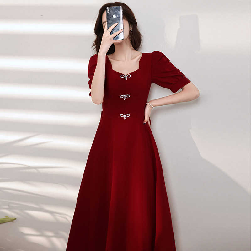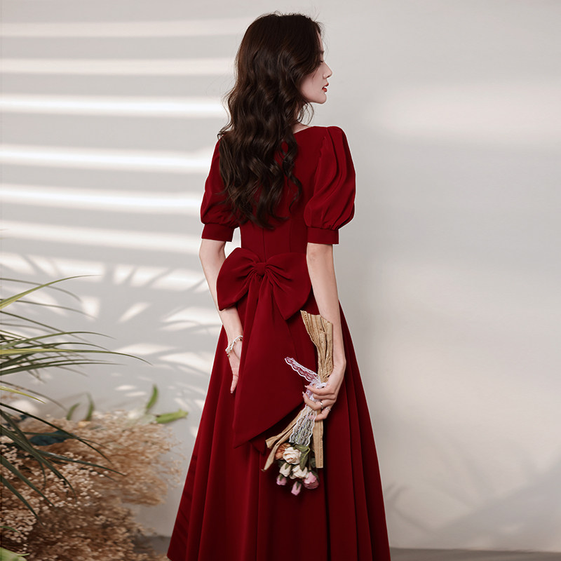 Бордовое вечернее платье, коллекция 2023, французский стиль
