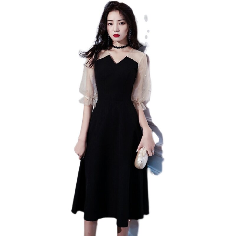 Женщины в вечернем обслуживании Девушка Простой и щедрый темперамент обычно может носить 2024 Новый французский стиль Леди Черный Банкет День рождения