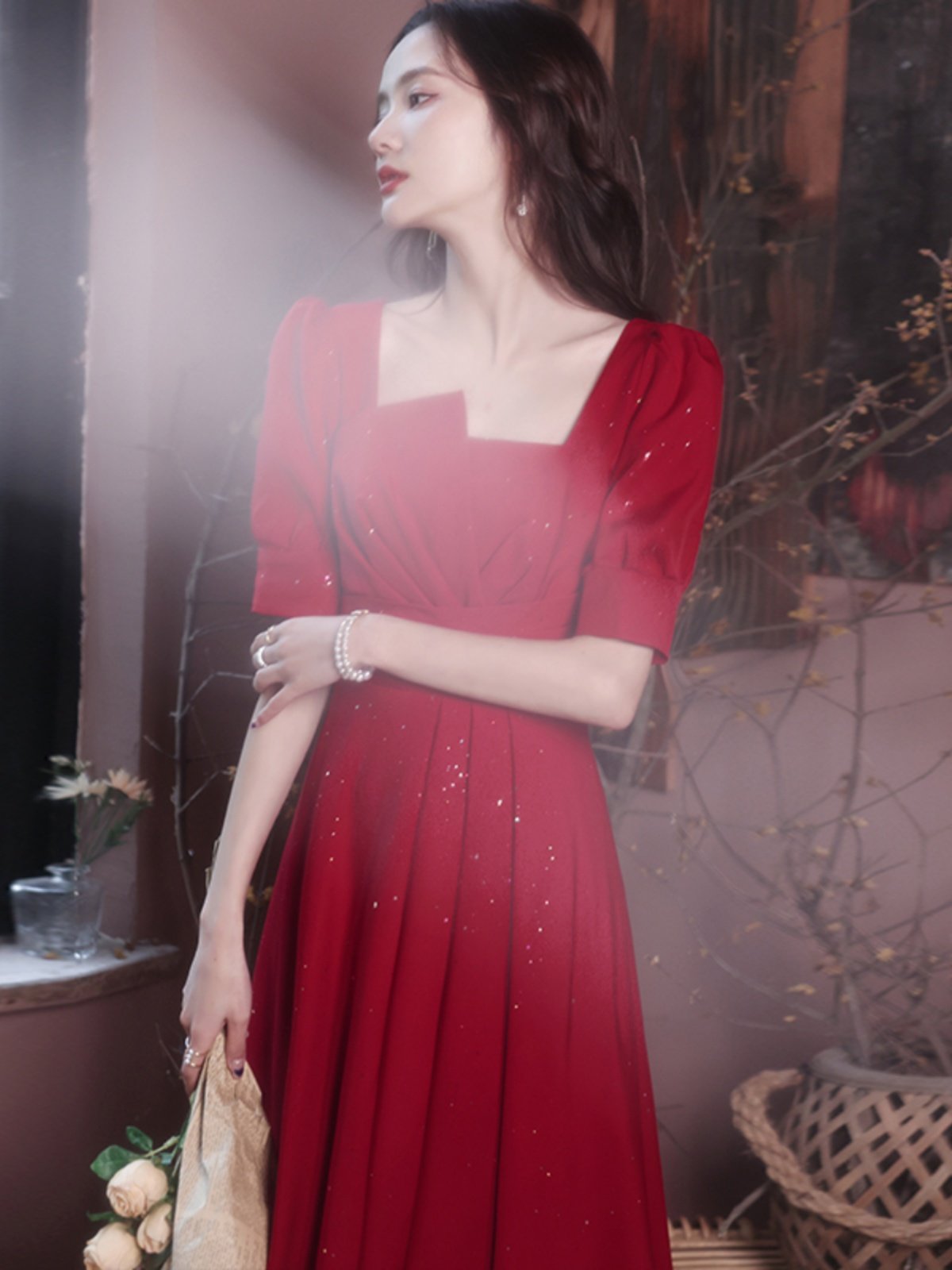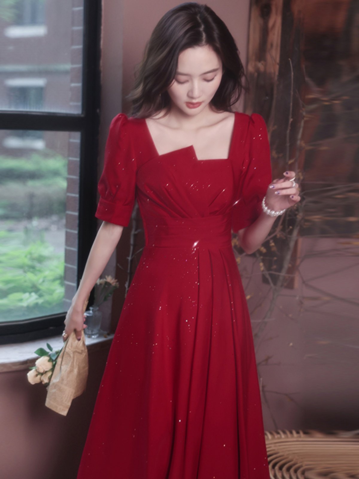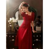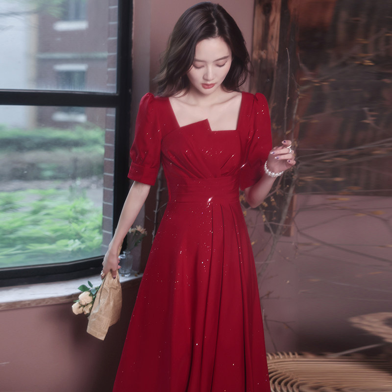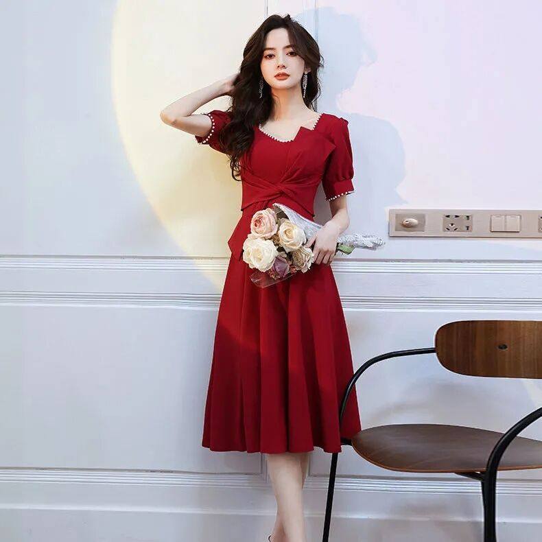 Вечернее платье, летний красный приталенный дизайнерский чай Цимень Хун Ча, тренд сезона