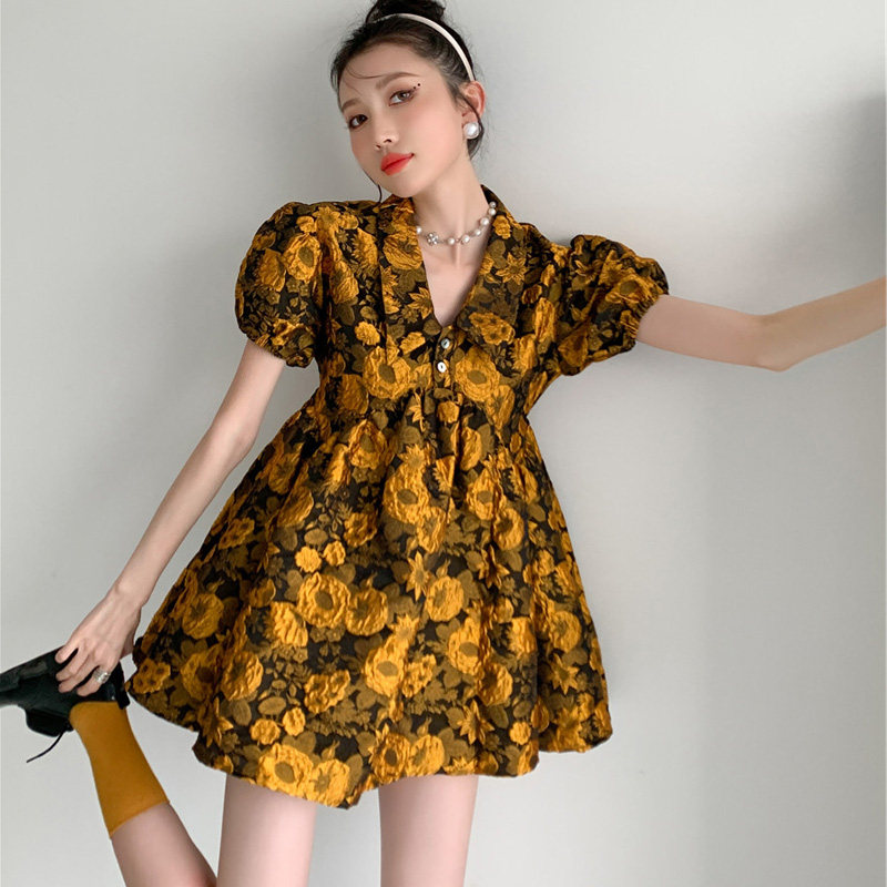 Летнее ретро трехмерное платье, корсет, 2021 года, в цветочек, подходит для подростков, квадратный вырез, рукава фонарики