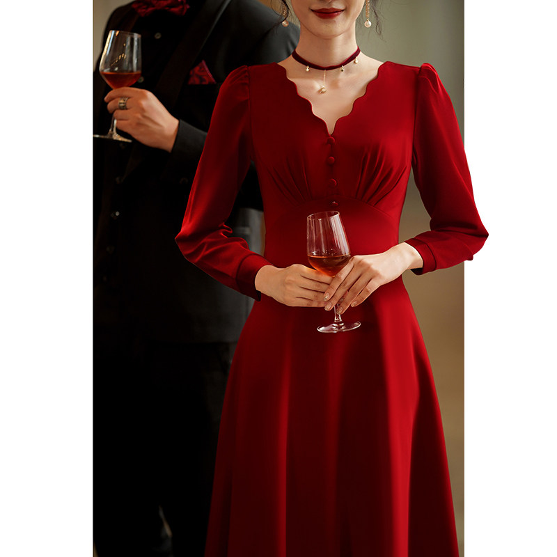 - Длинный, бордовый, короткий рукав