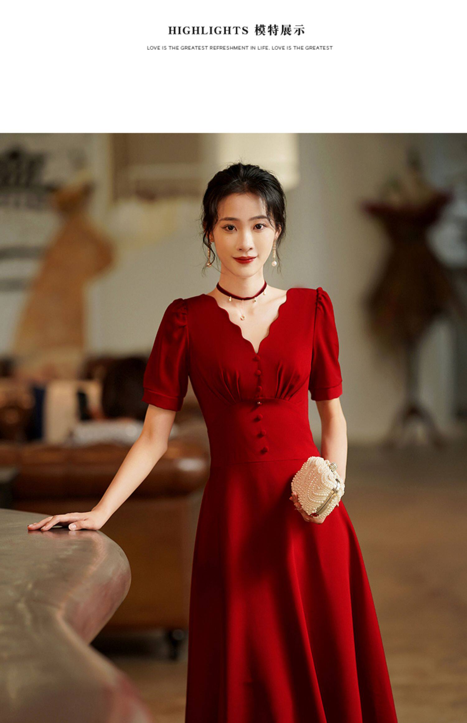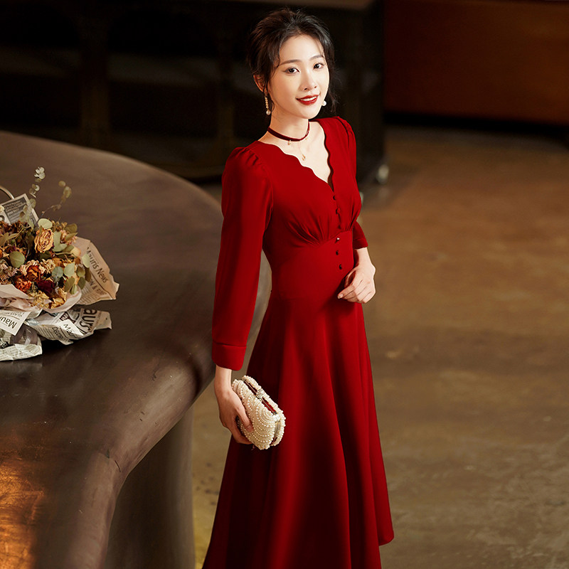 - Длинный, бордовый, короткий рукав, средней длины