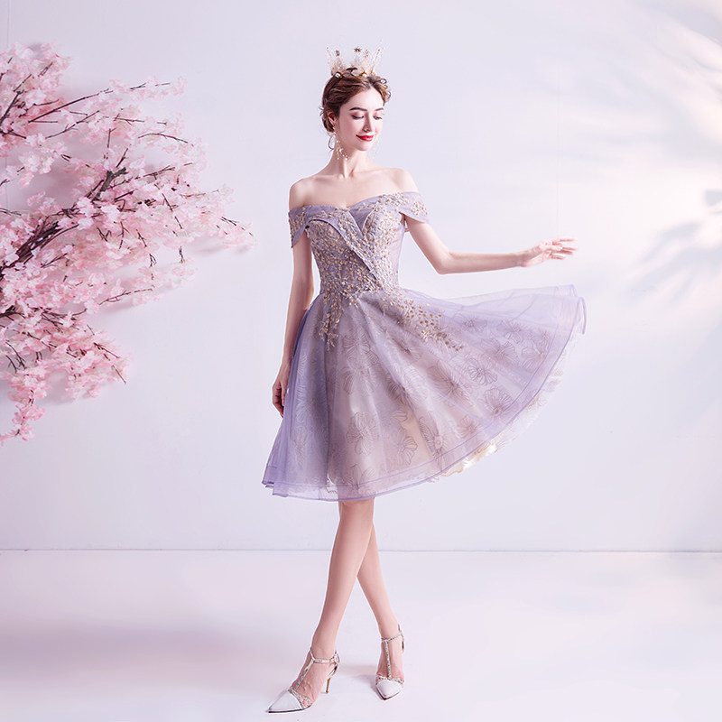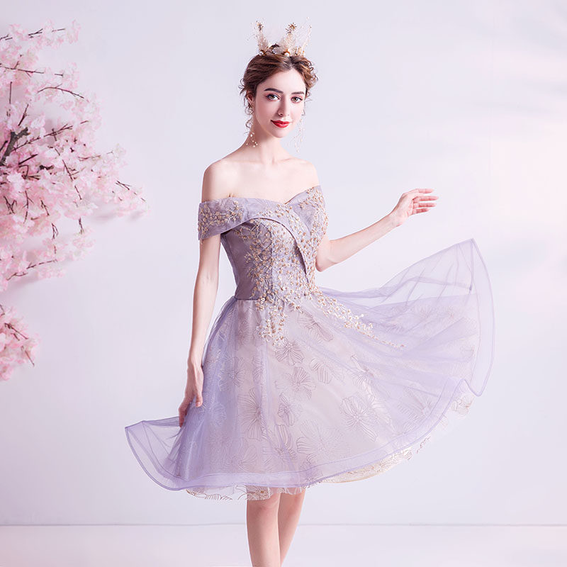 Сиреневое короткое свадебное платье