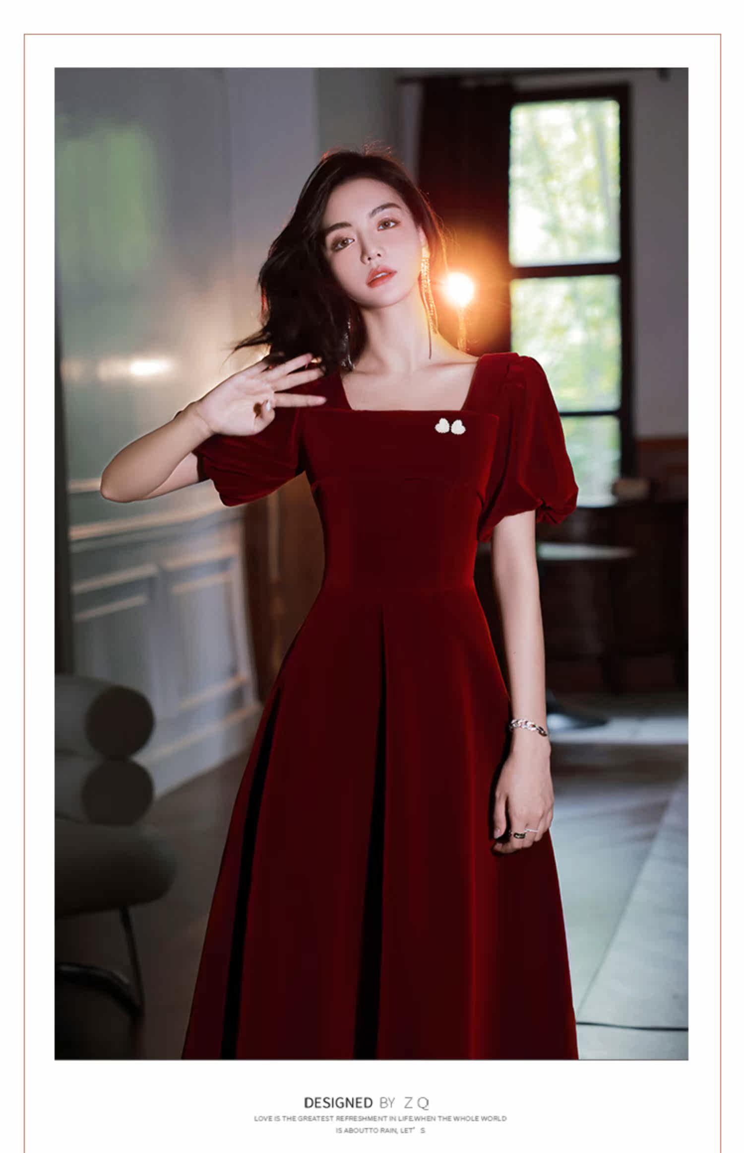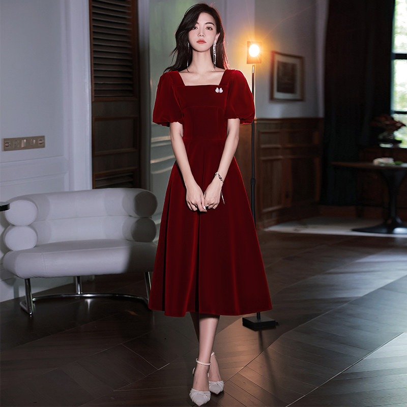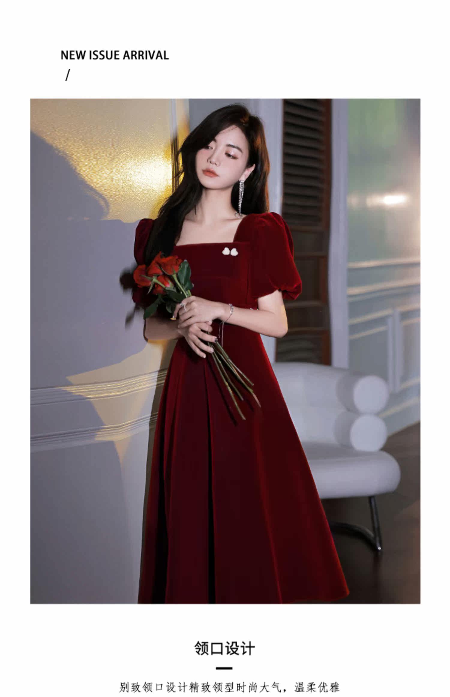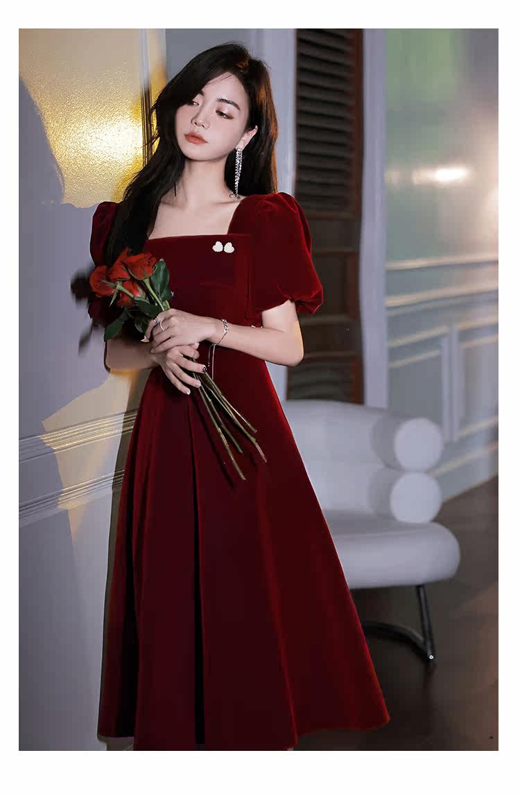 Бордовое вечернее платье, коллекция 2022, французский стиль, по фигуре