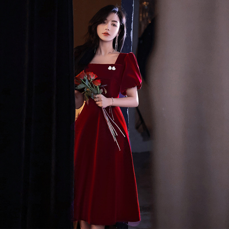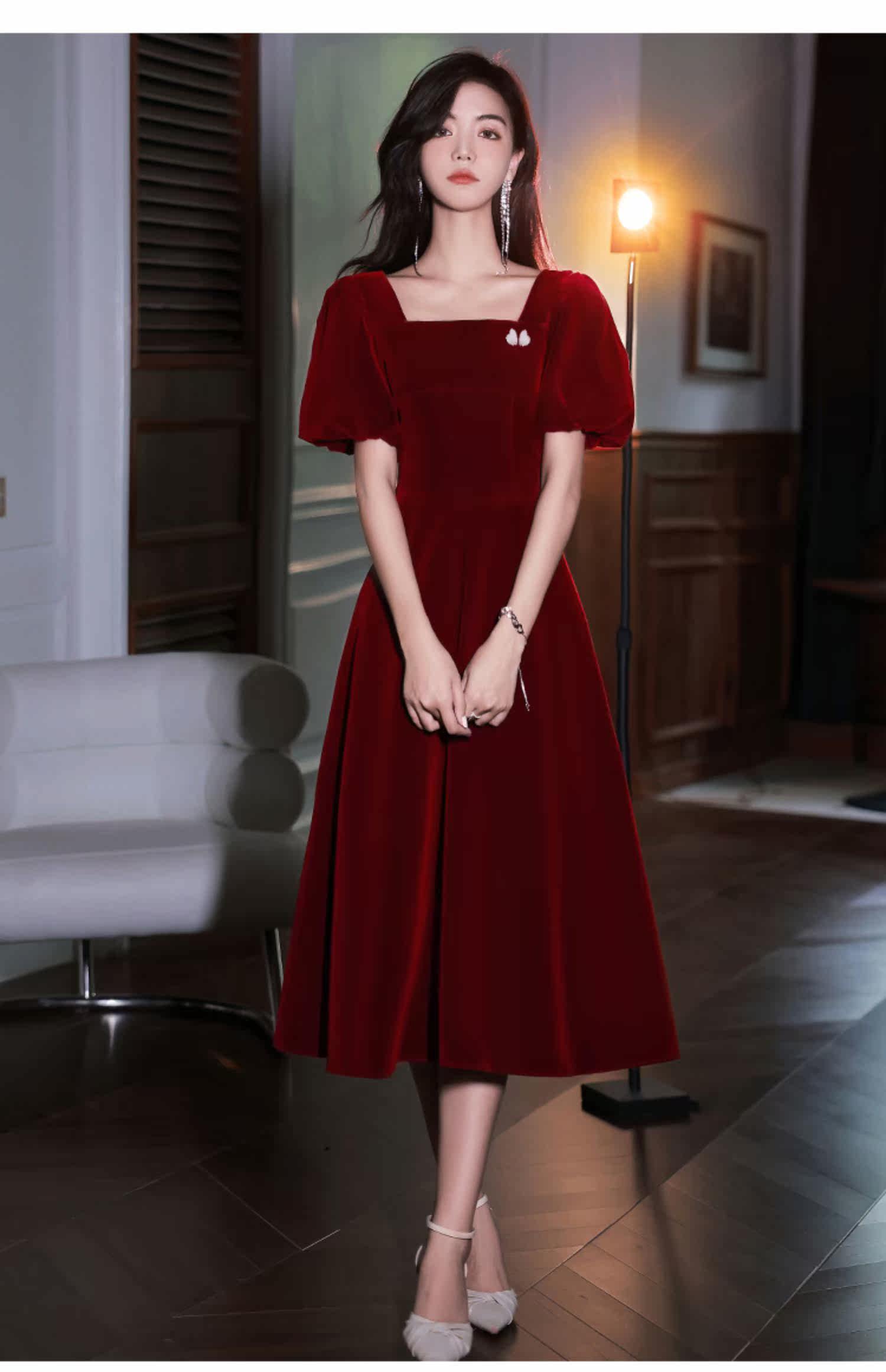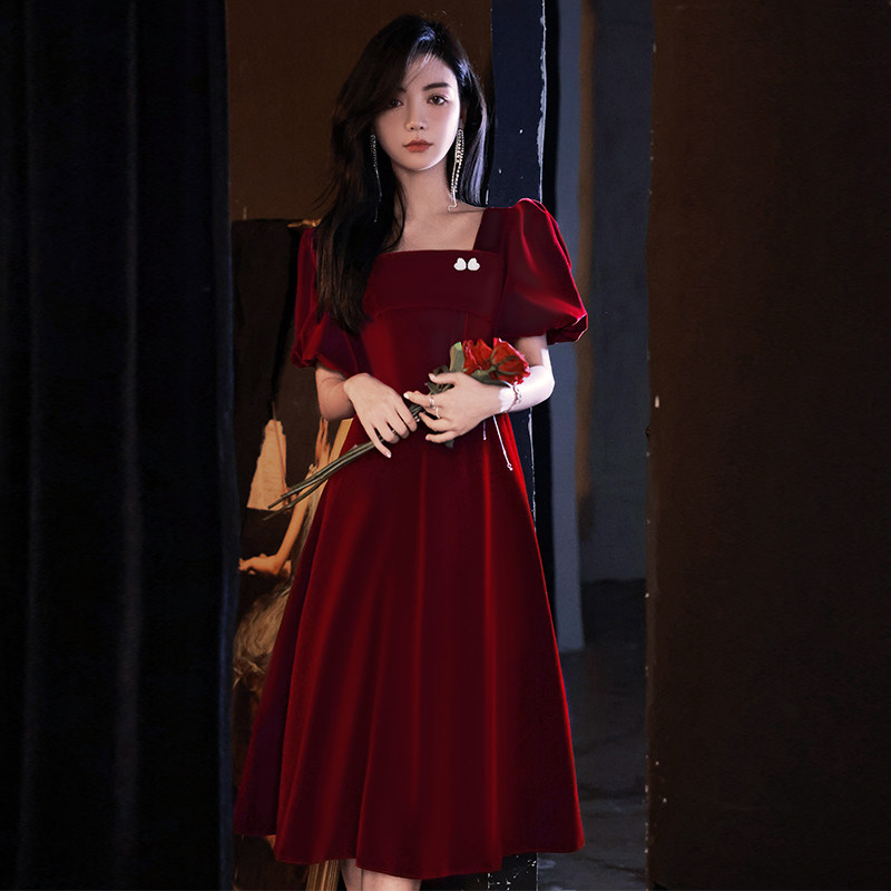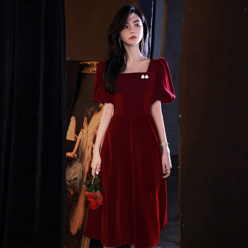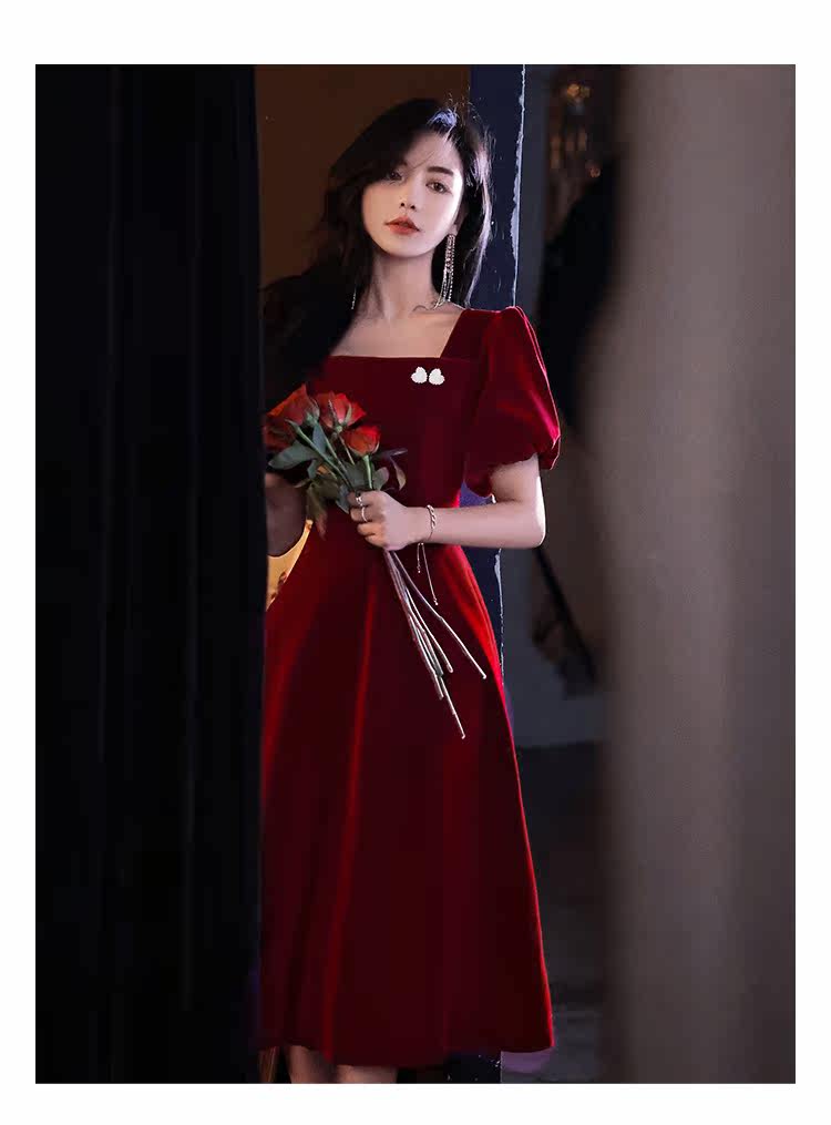 Бордовое вечернее платье, коллекция 2022, французский стиль, по фигуре