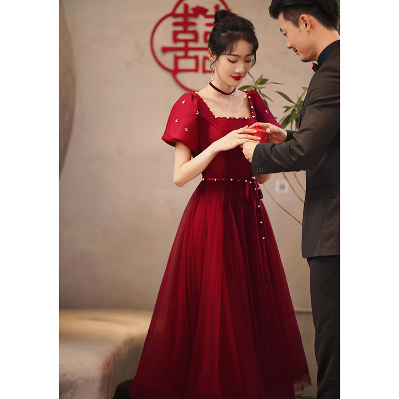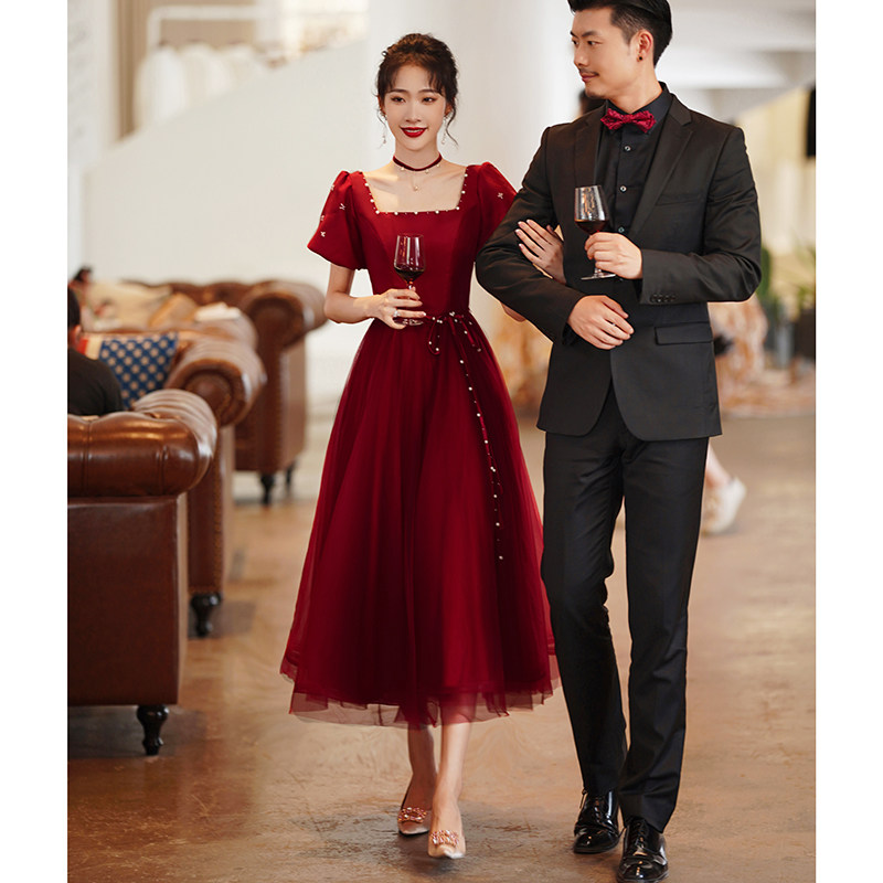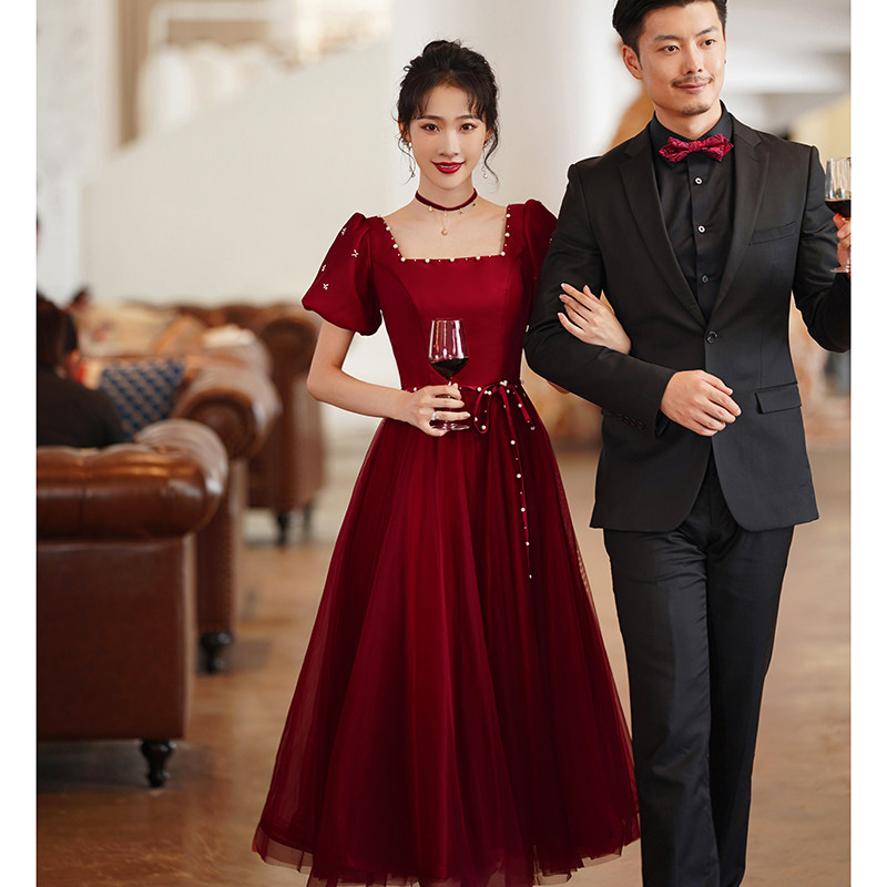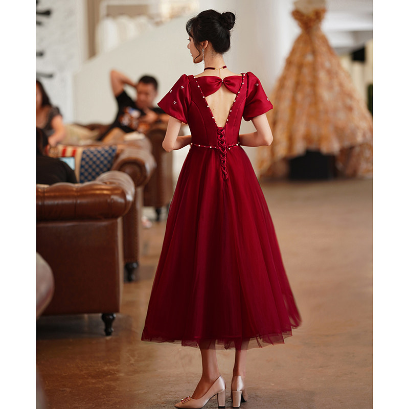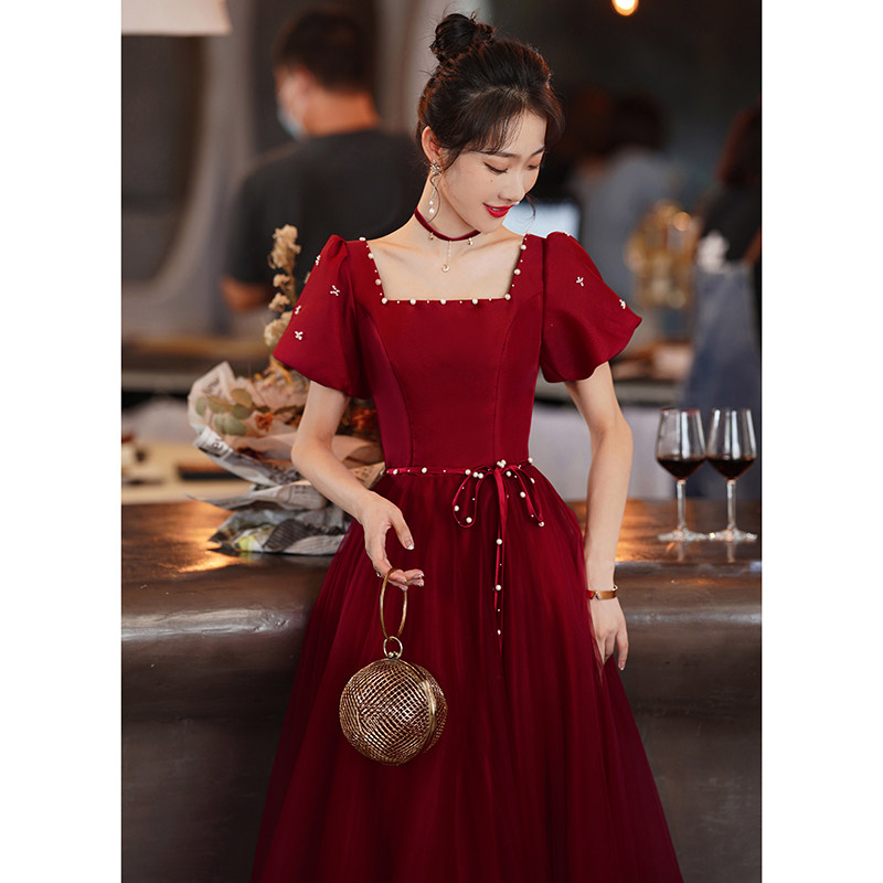 Бордовое дизайнерское вечернее платье для принцессы, коллекция 2023, французский стиль