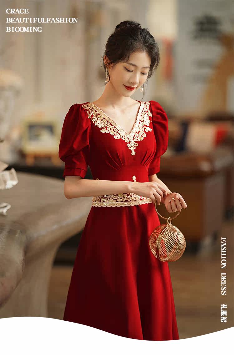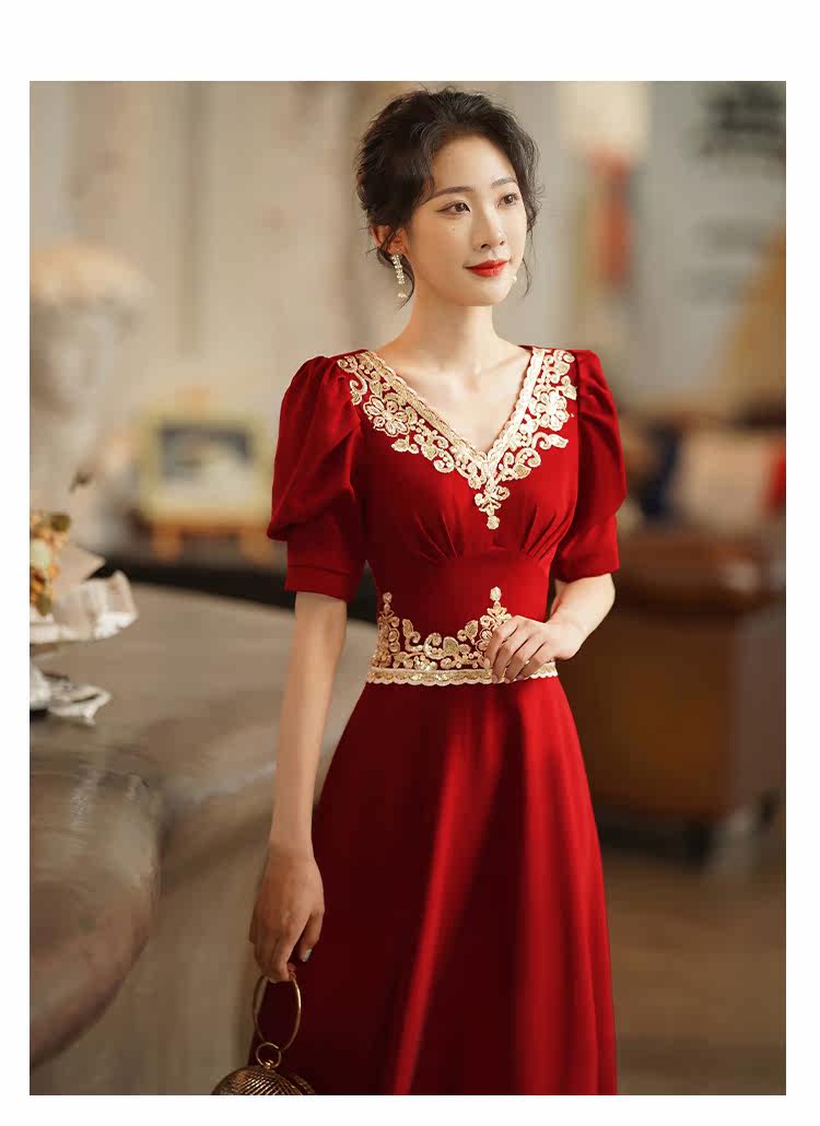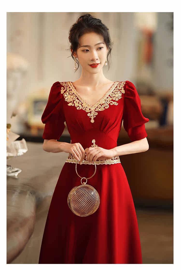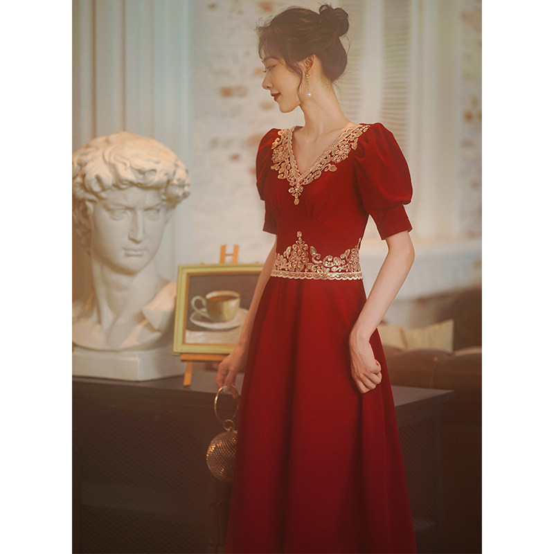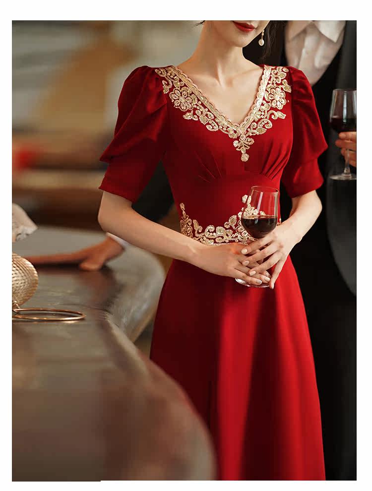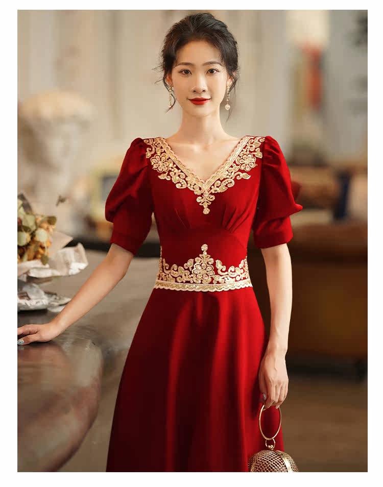 Вечернее платье, бордовое ретро свадебное платье, коллекция 2021, осенний сезон, китайский стиль