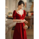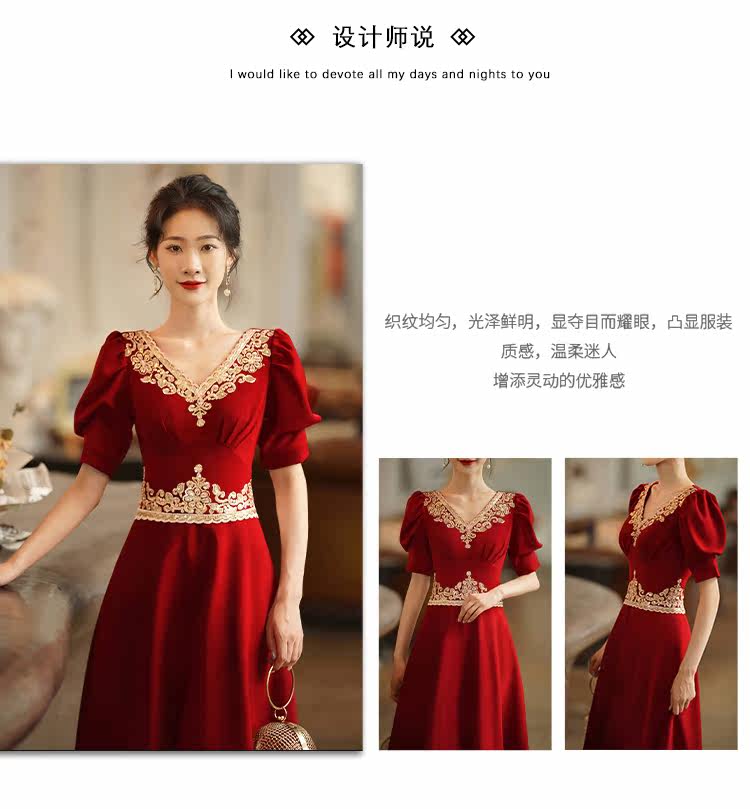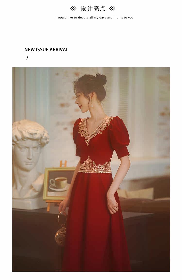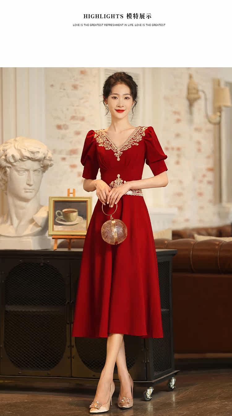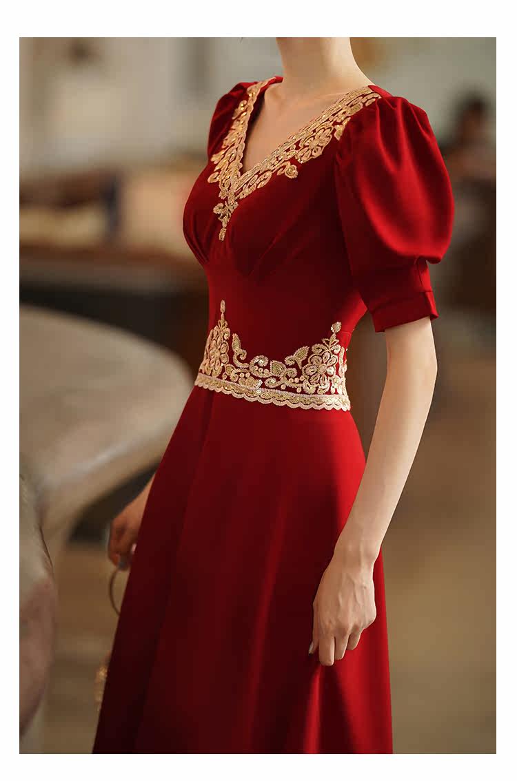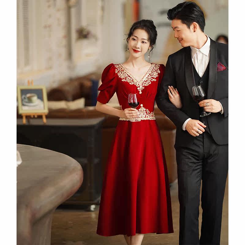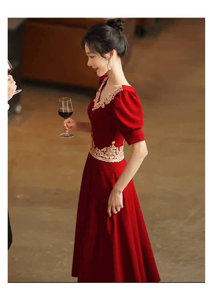 Вечернее платье, бордовое ретро свадебное платье, коллекция 2021, осенний сезон, китайский стиль