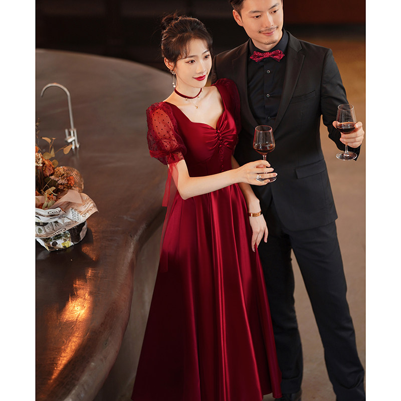 Бордовое вечернее платье, коллекция 2022, из фатина