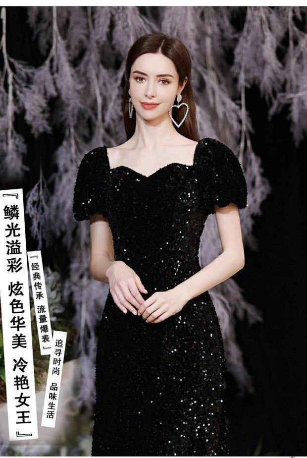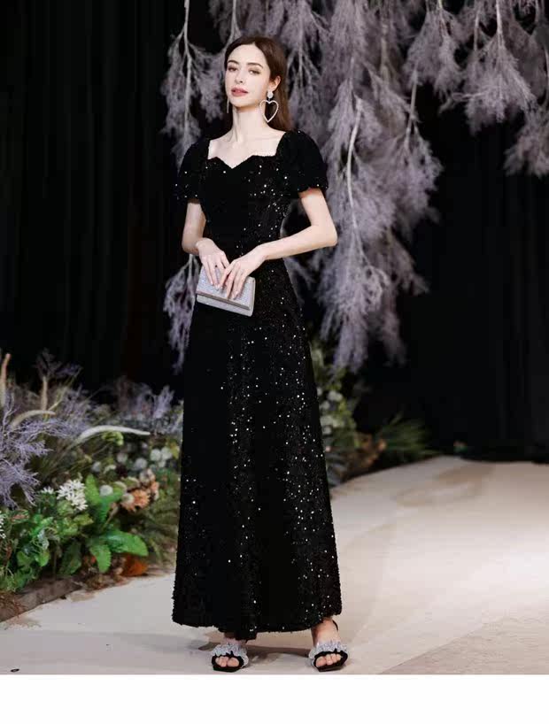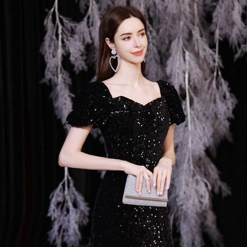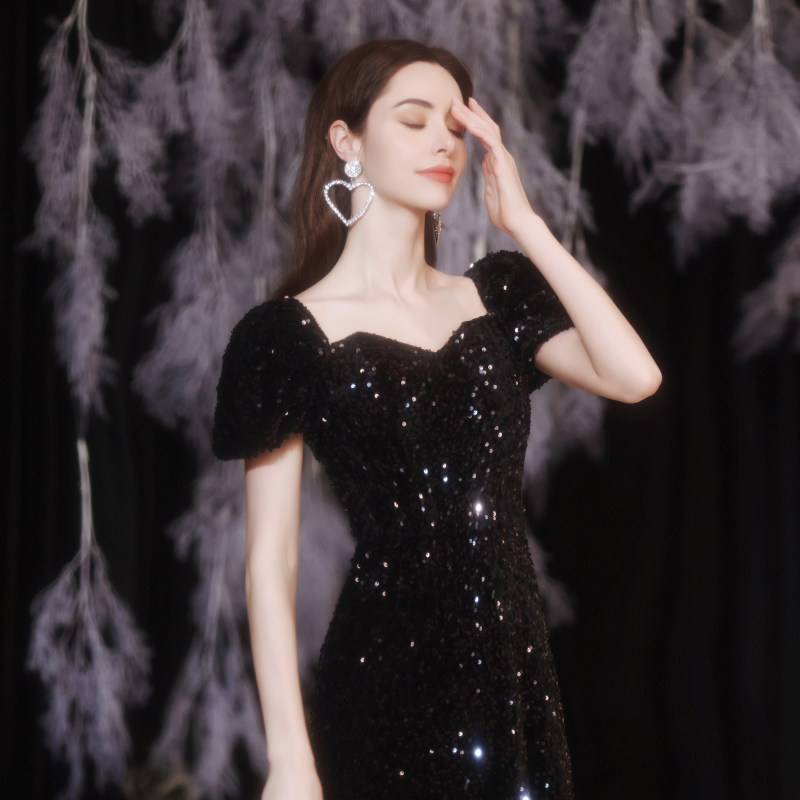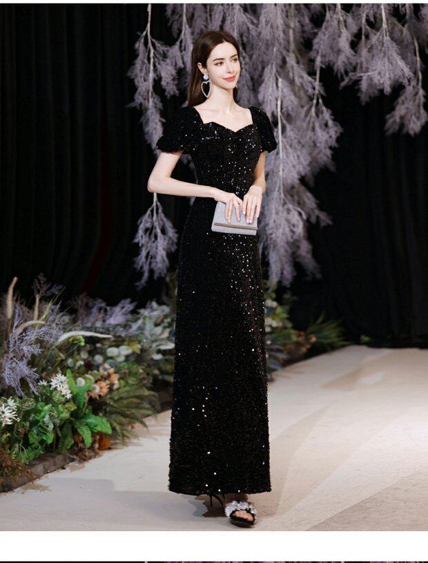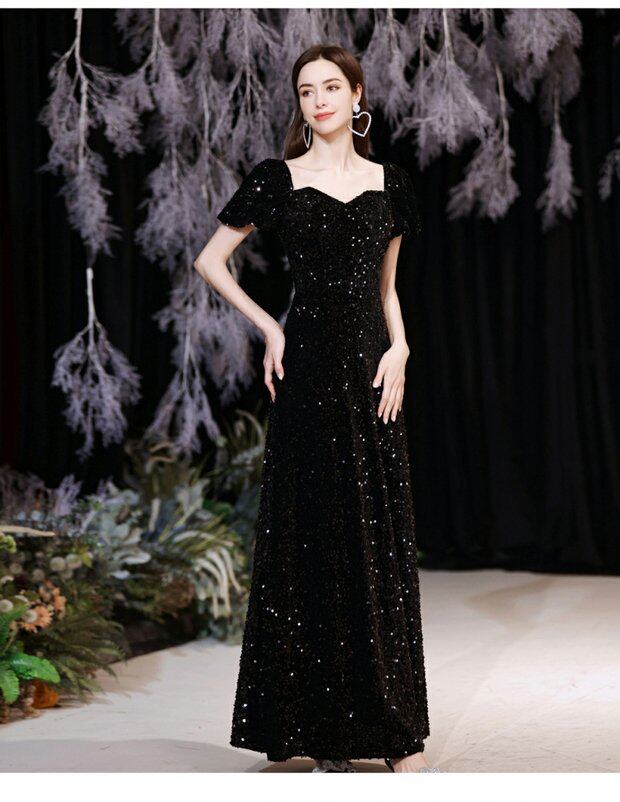 Черное пианино, наряд для музыкальных выступлений, свадебное платье, вечернее платье, рукава фонарики