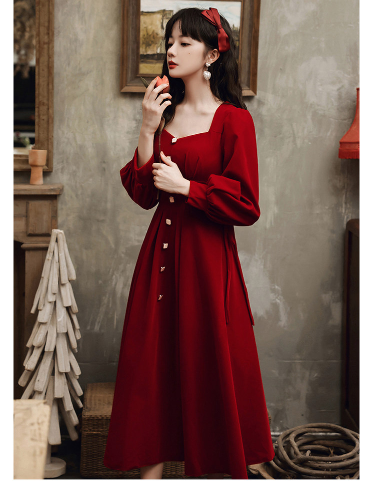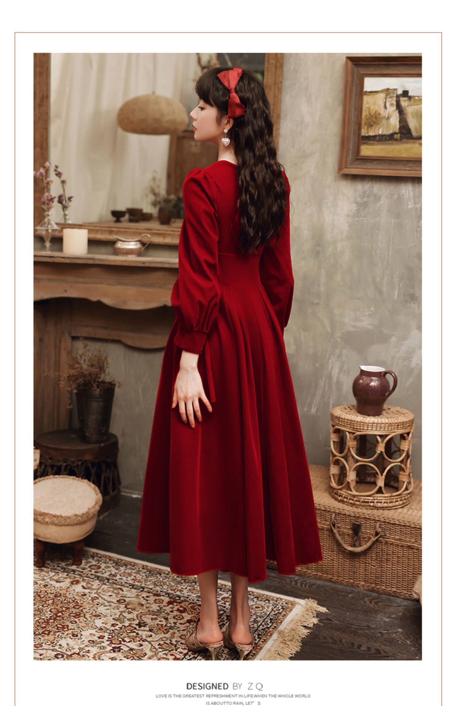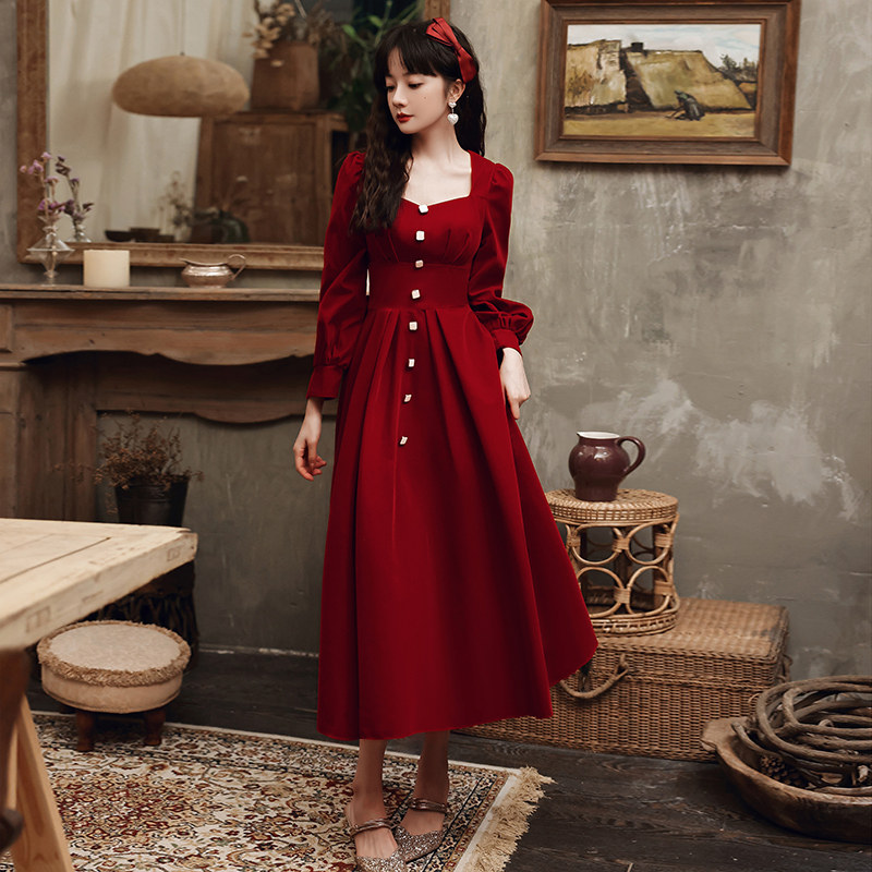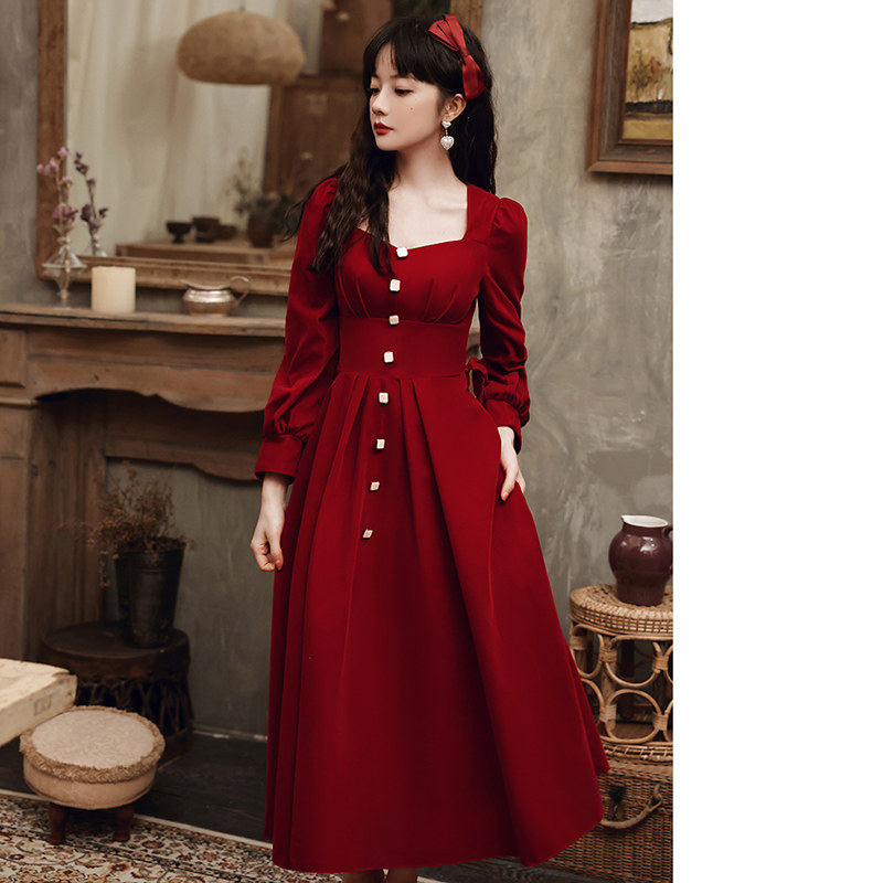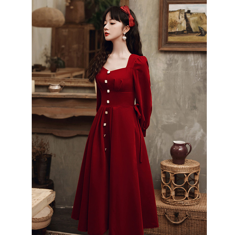 Вечернее платье, дизайнерский бордовый лонгслив, чай Цимень Хун Ча, коллекция 2022, тренд сезона