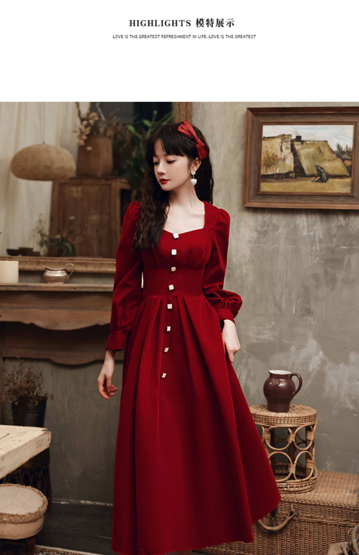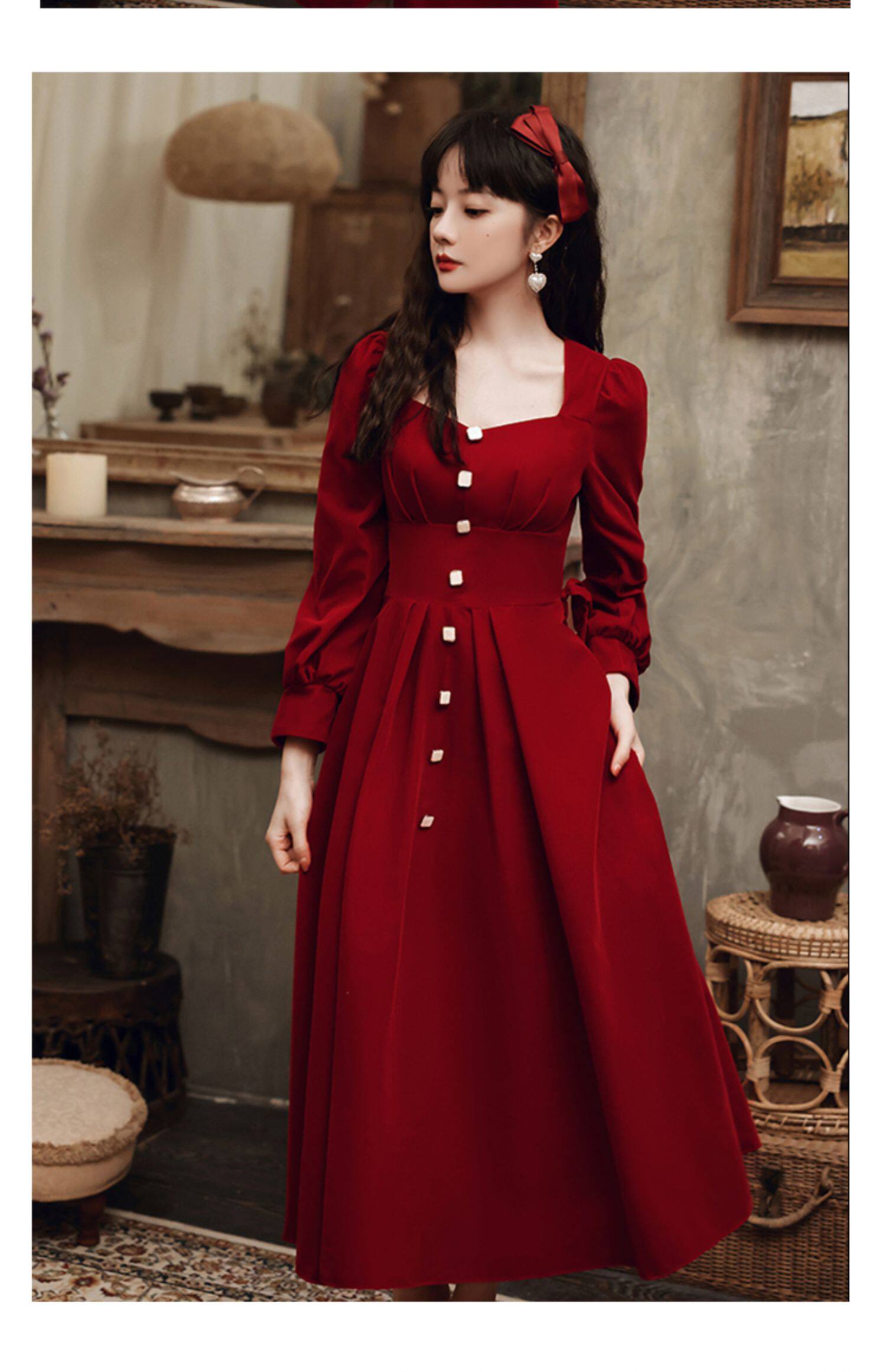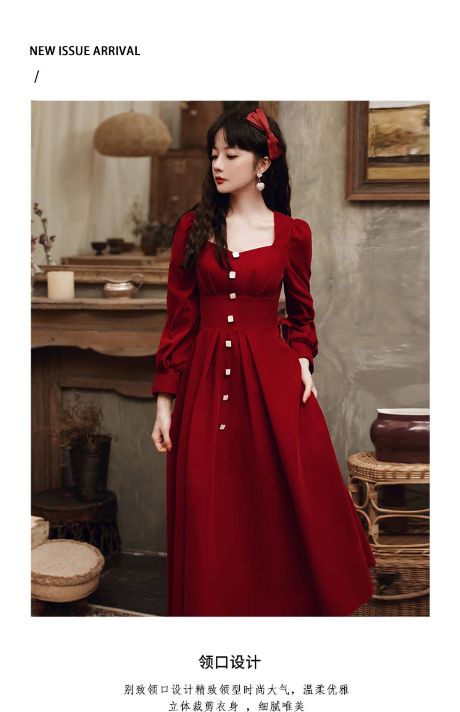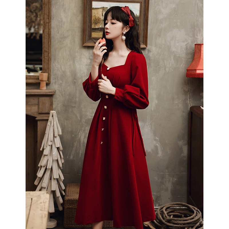 Вечернее платье, дизайнерский бордовый лонгслив, чай Цимень Хун Ча, коллекция 2022, тренд сезона