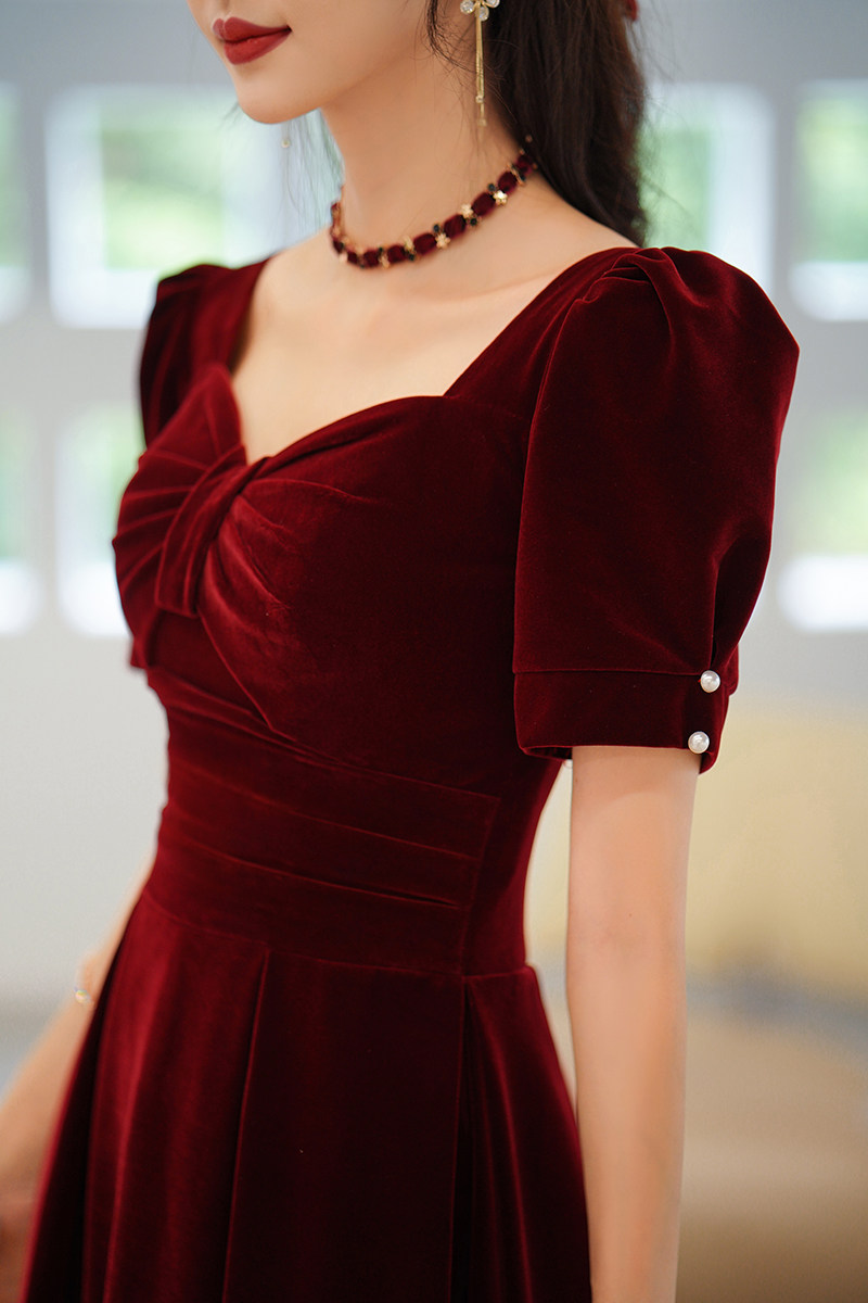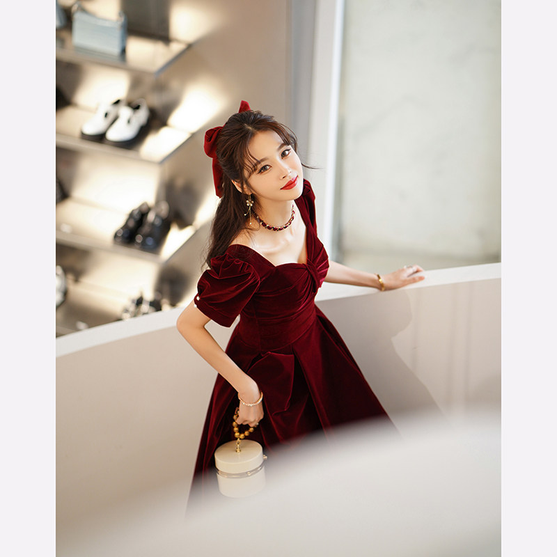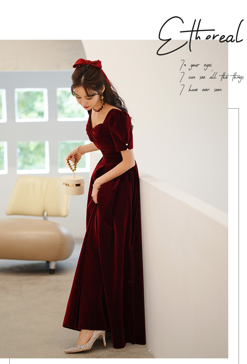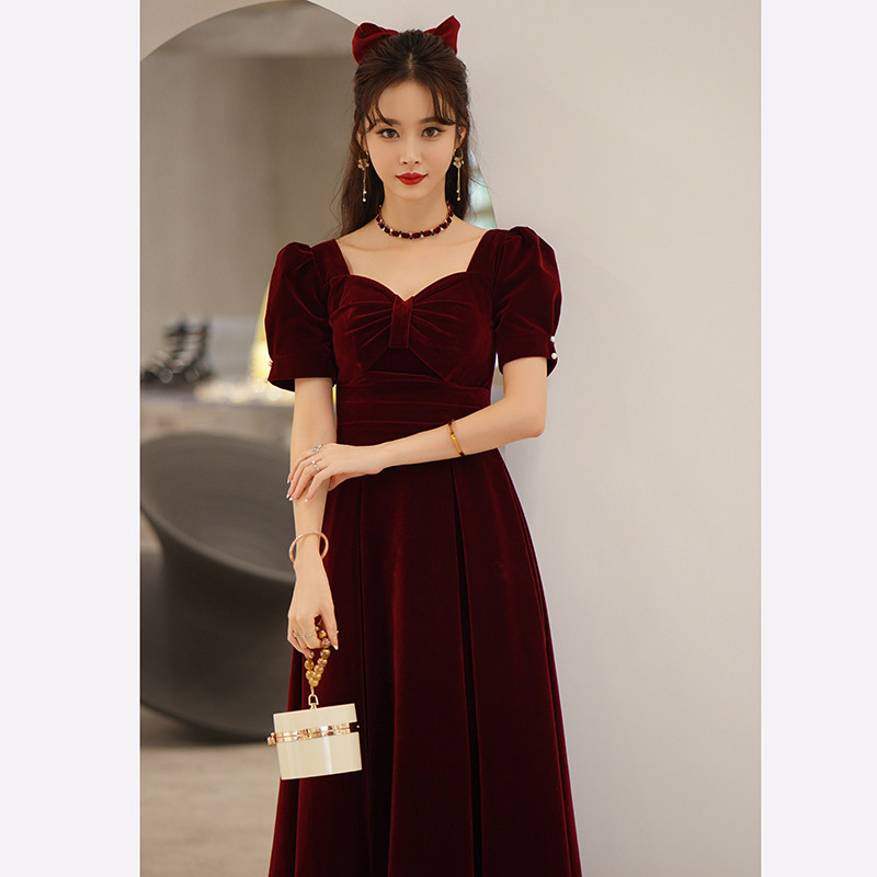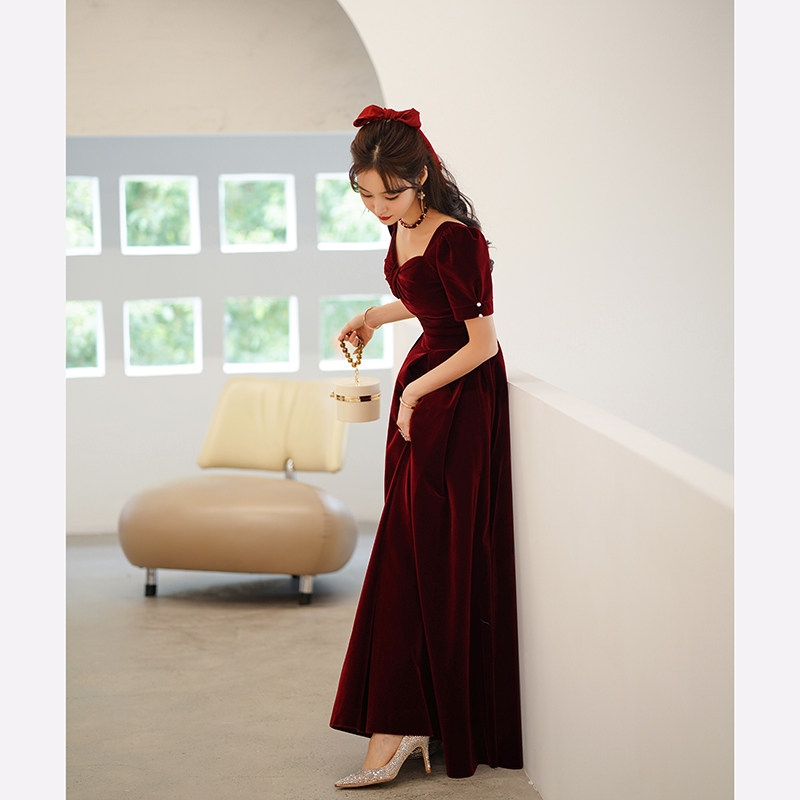 Бордовое длинное бархатное вечернее платье, коллекция 2023