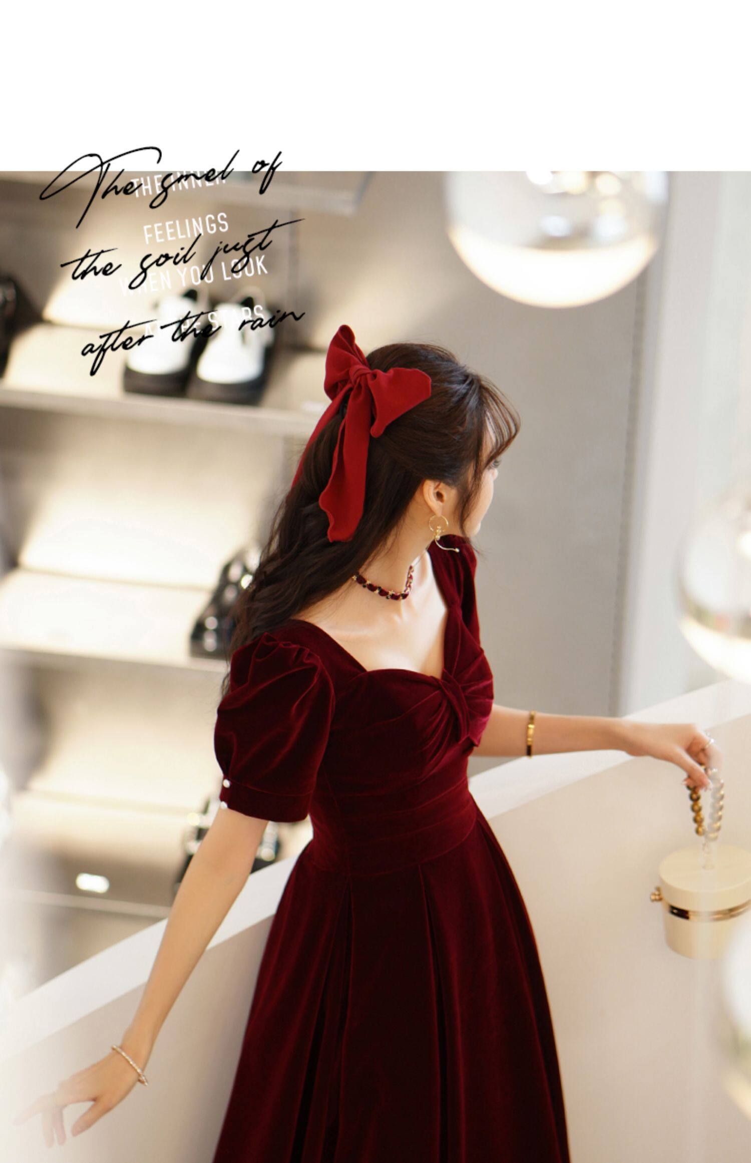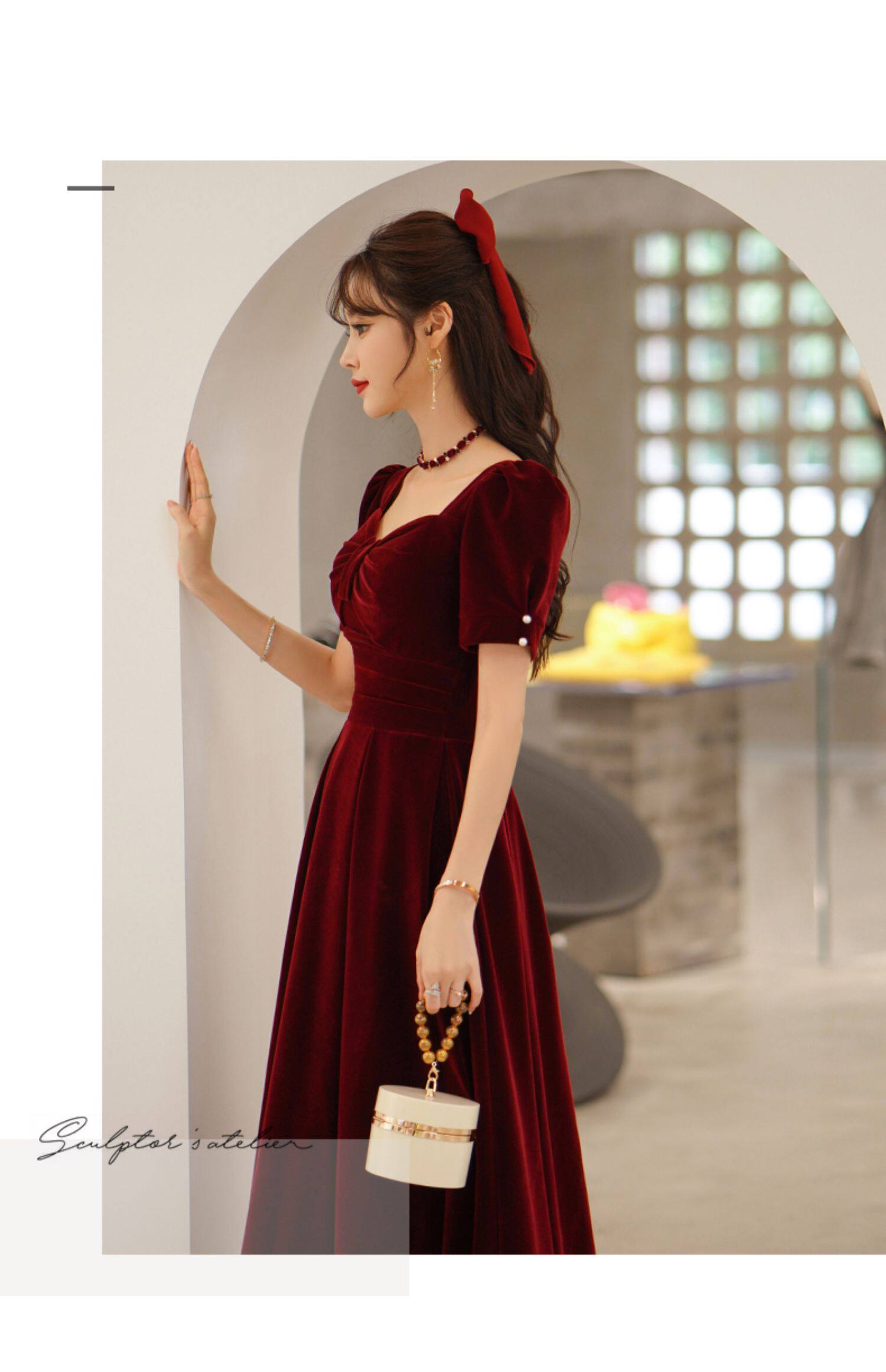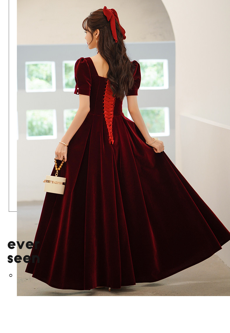 Бордовое длинное бархатное вечернее платье, коллекция 2023