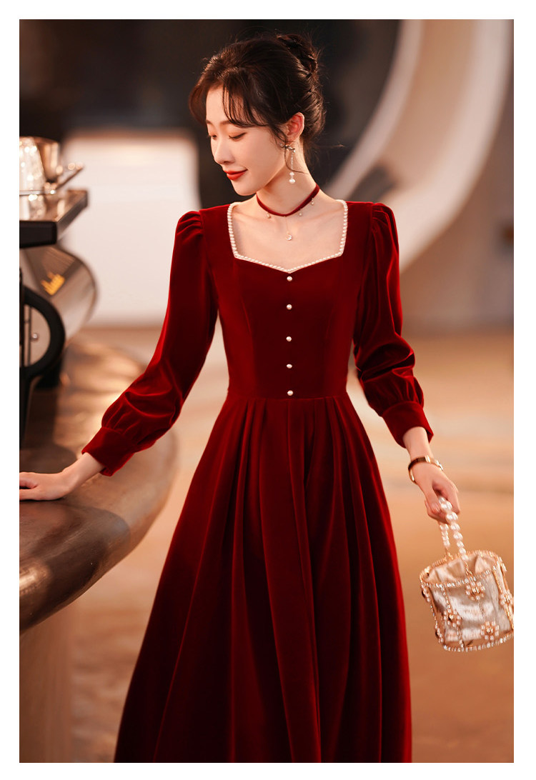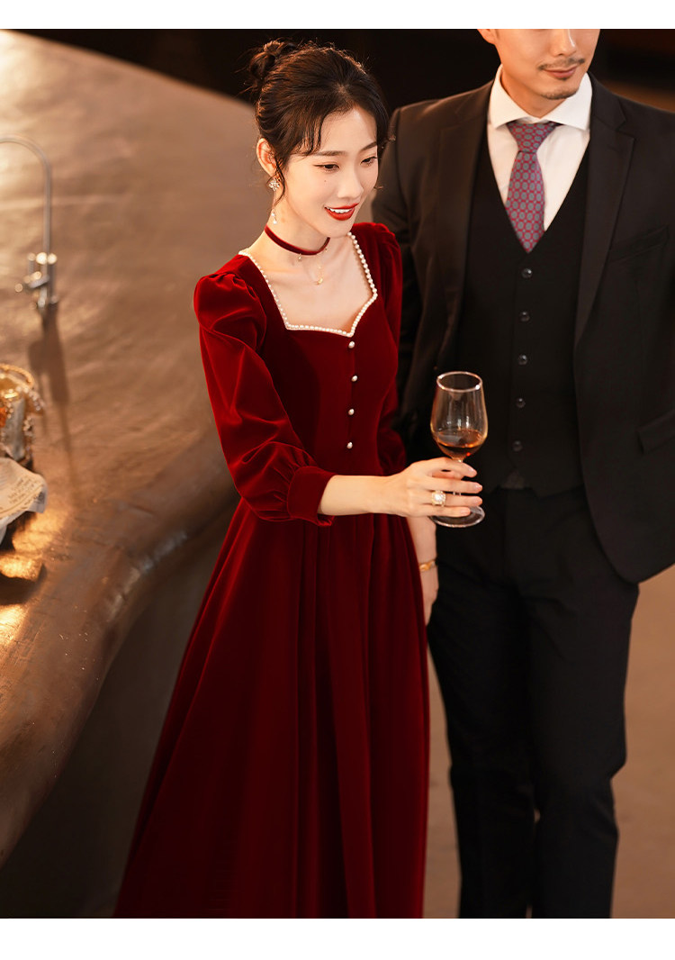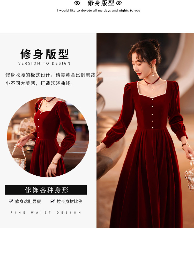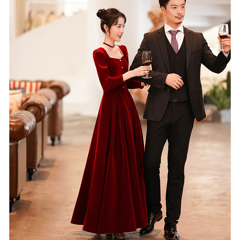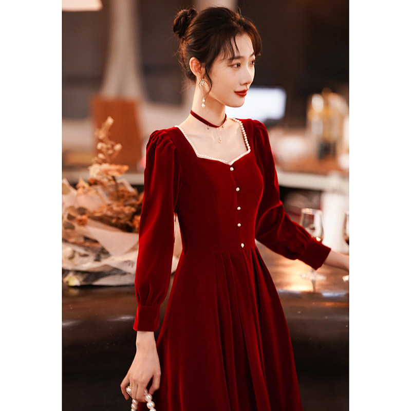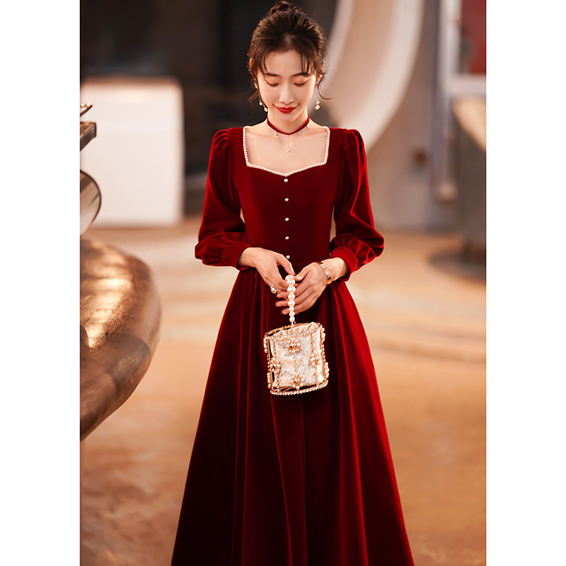 Весеннее вечернее платье, бордовый бархатный лонгслив, коллекция 2022