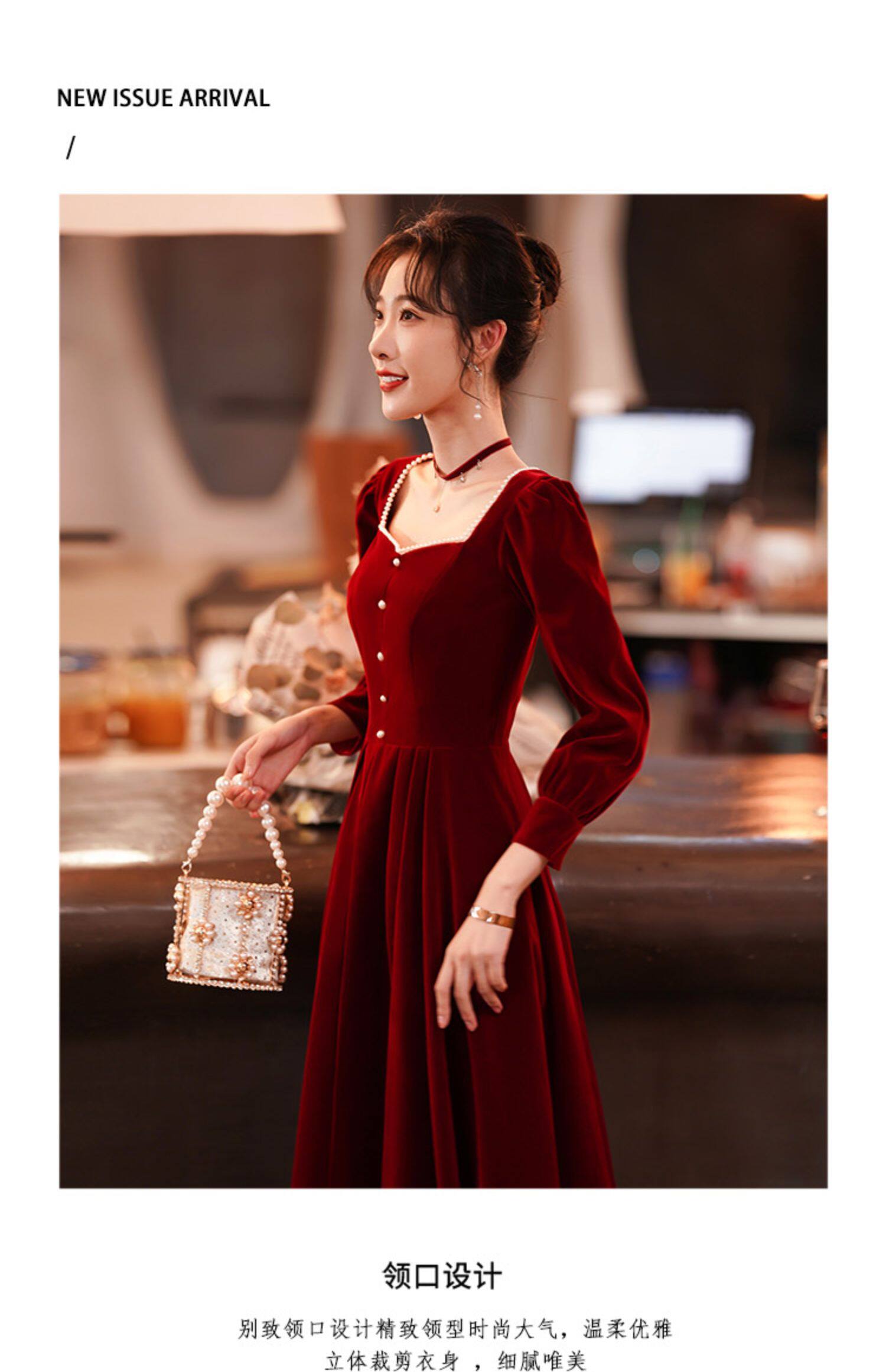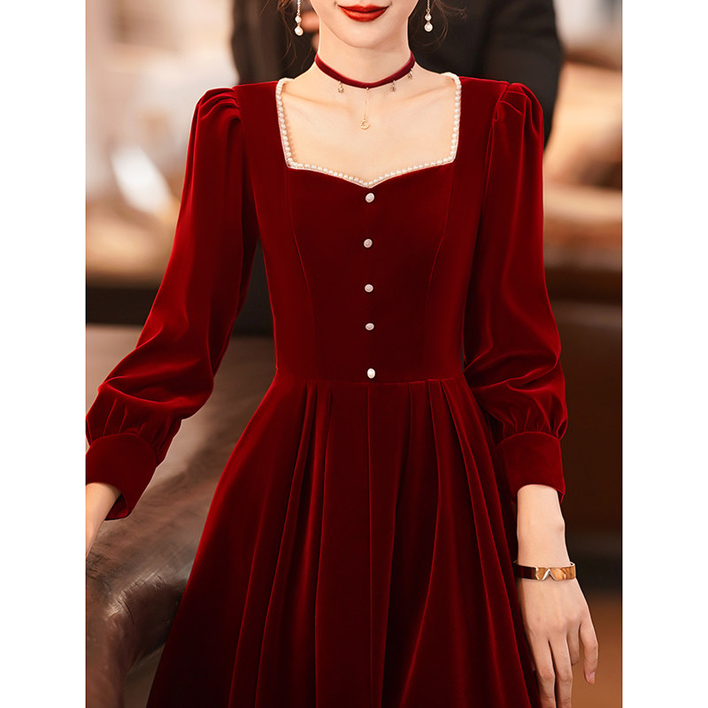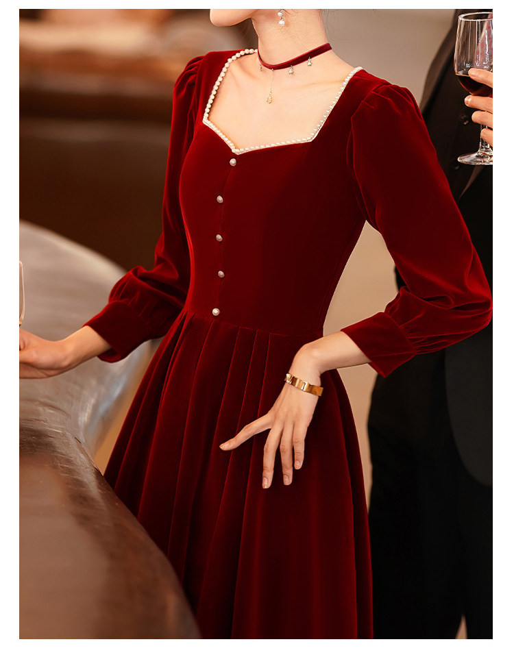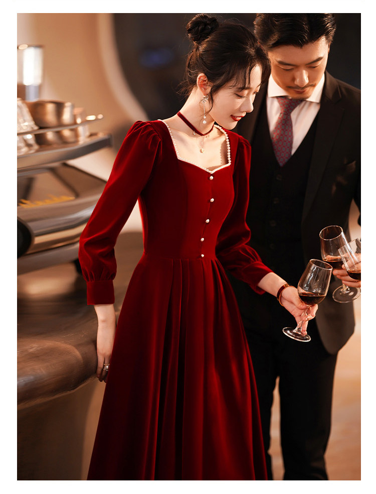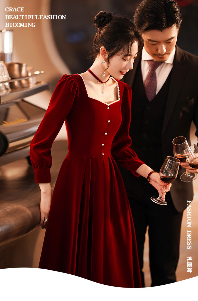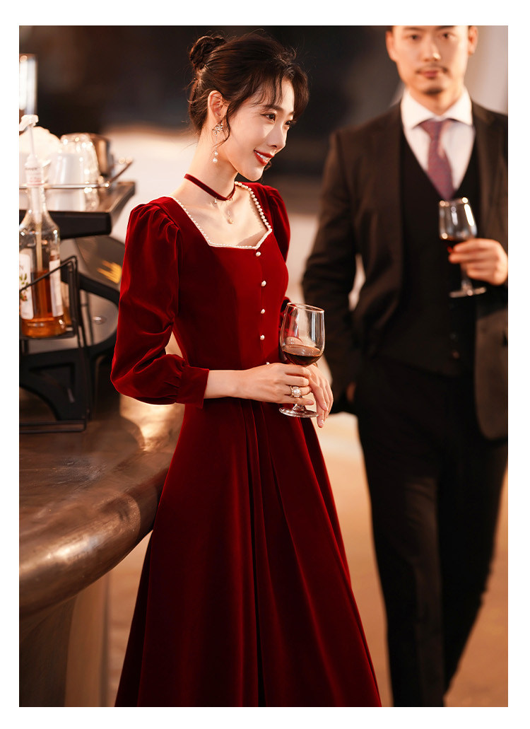 Весеннее вечернее платье, бордовый бархатный лонгслив, коллекция 2022