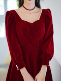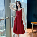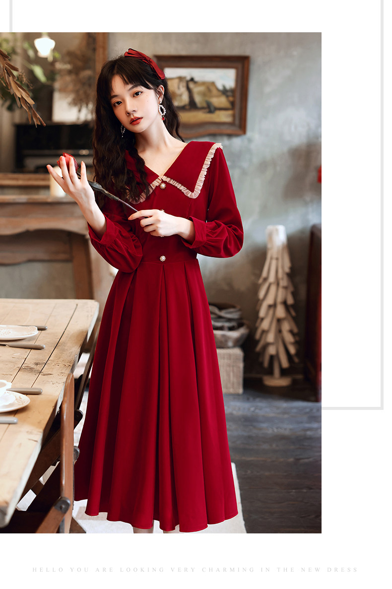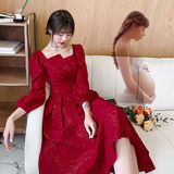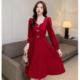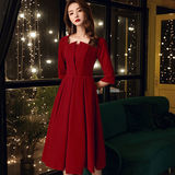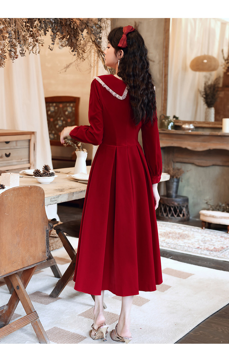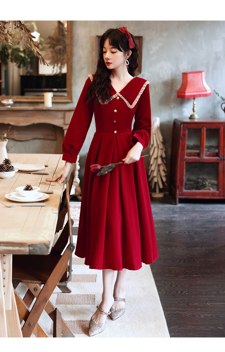 Осеннее длинное красное вечернее платье, большой размер, средней длины