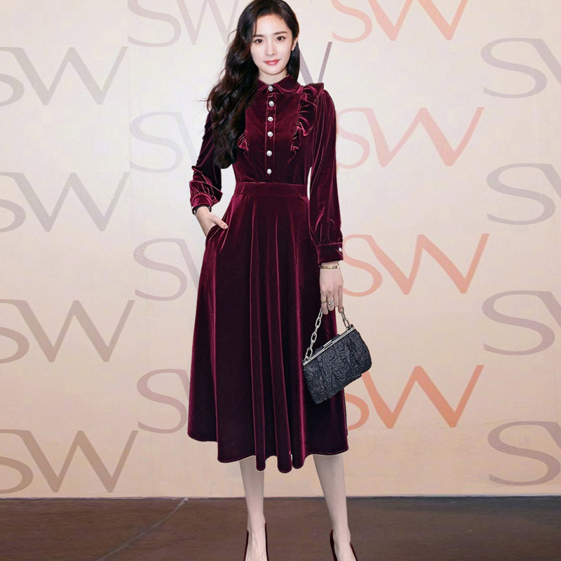 Модное зимнее элитное бархатное платье, яркий броский стиль