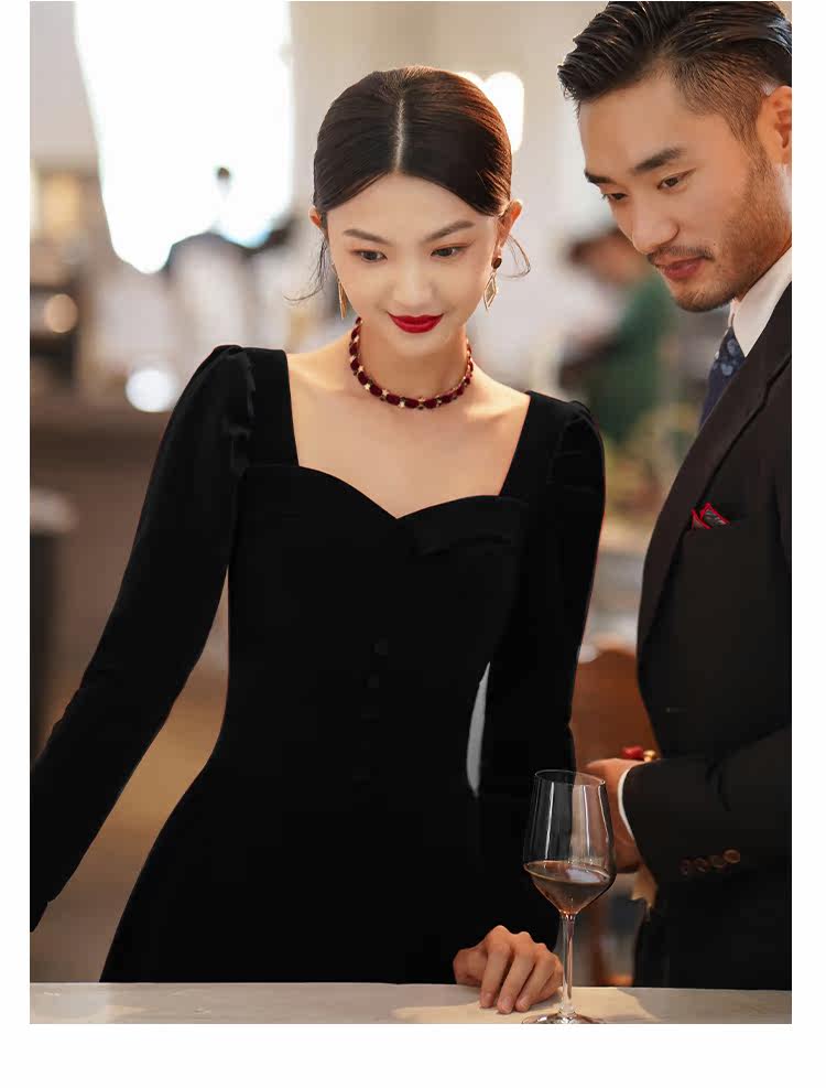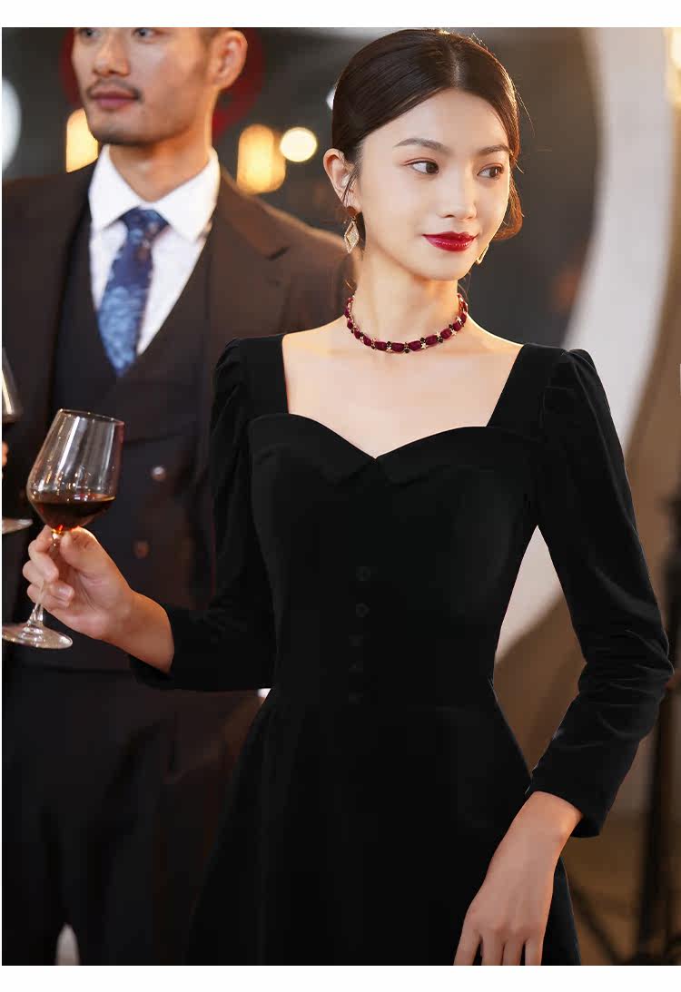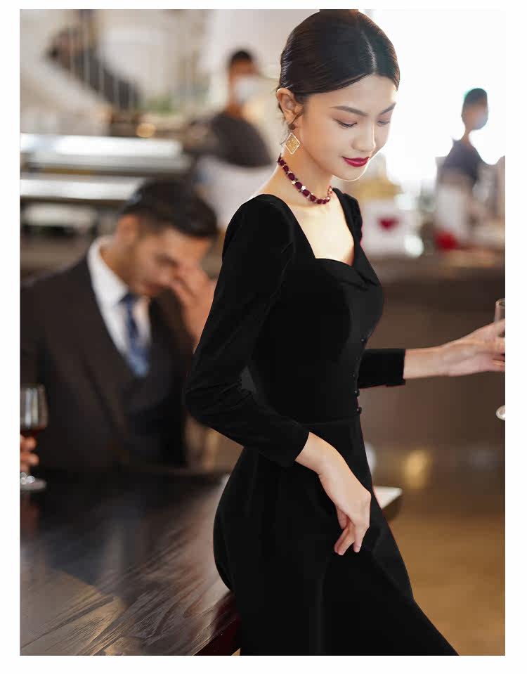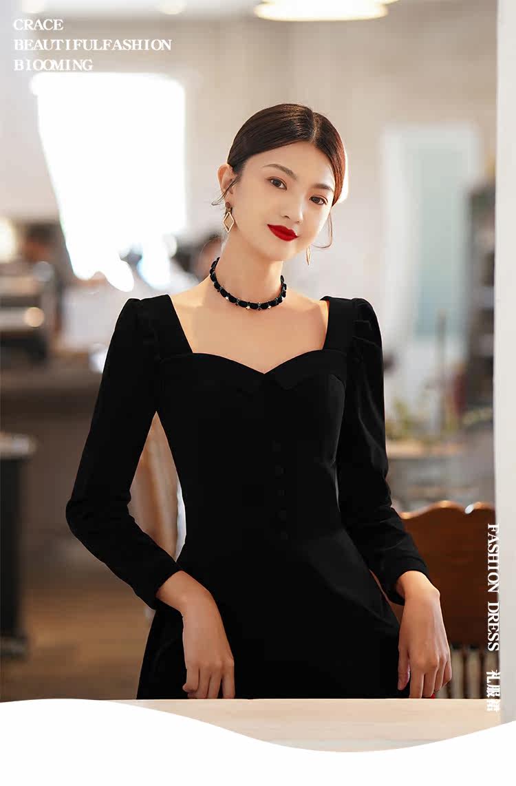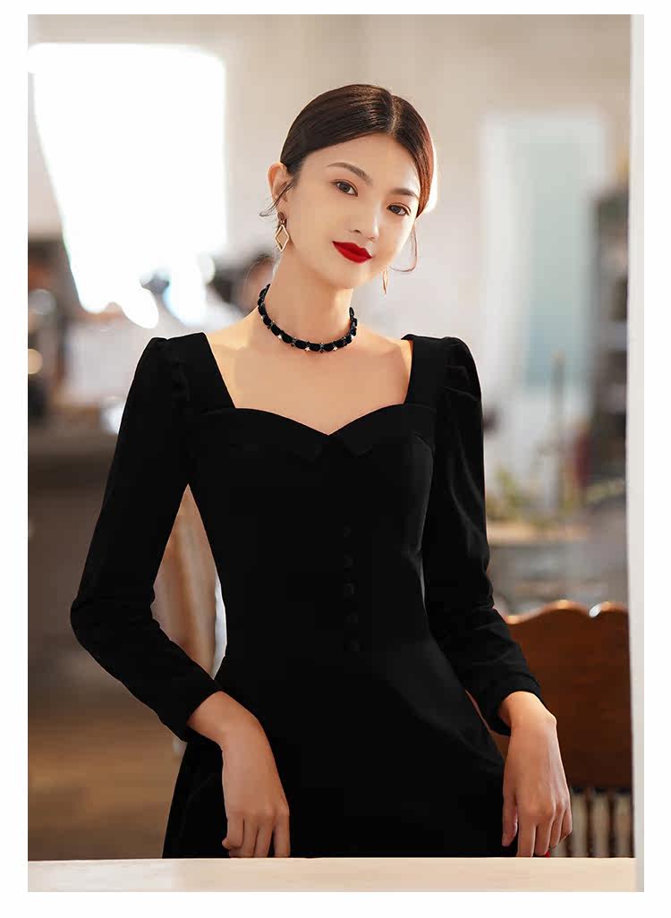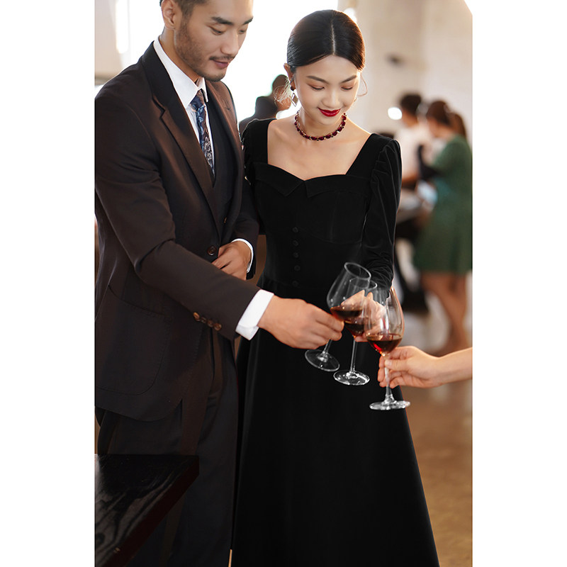 Черное вечернее платье, коллекция 2022, французский стиль, подарок на день рождения