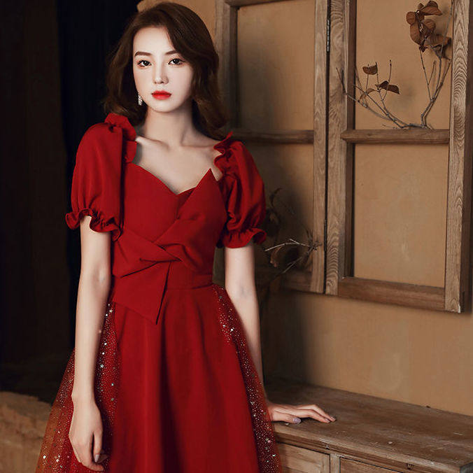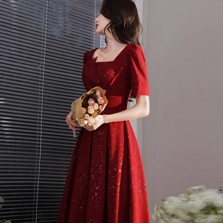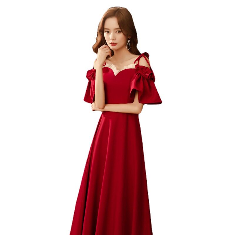 Бордовое вечернее платье, тонкое свадебное платье, по фигуре, подходит для подростков