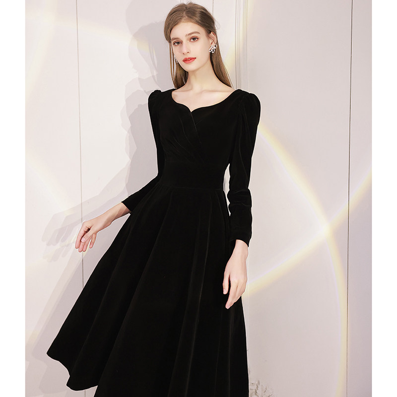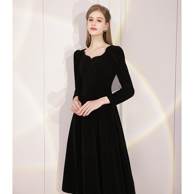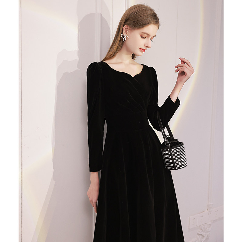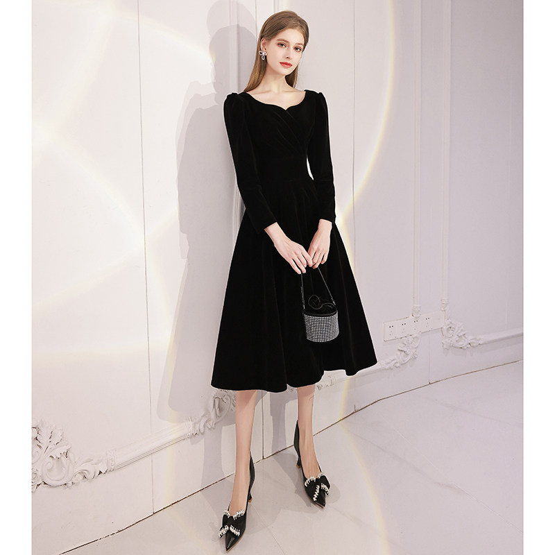 Черное вечернее платье, модный лонгслив, французский стиль