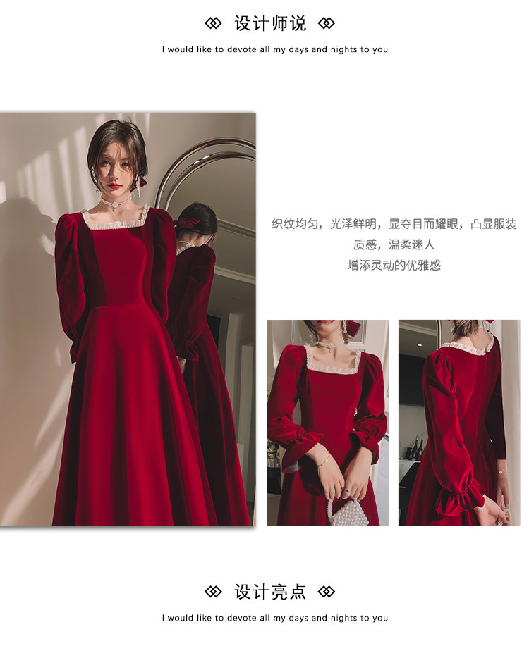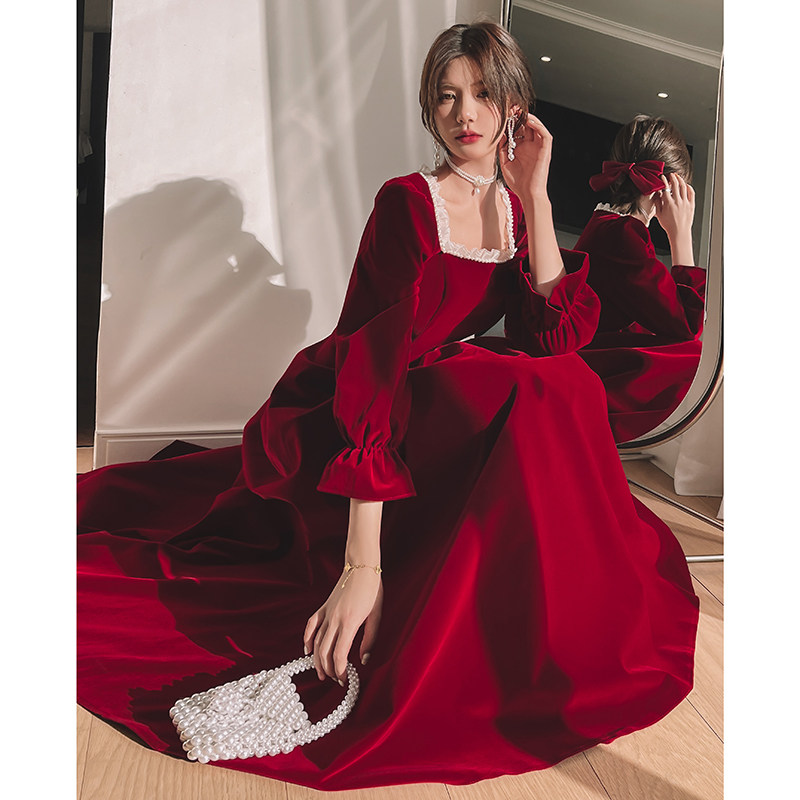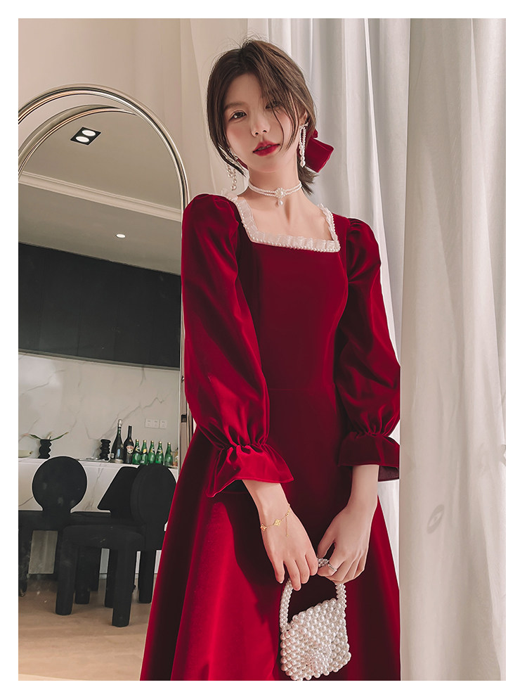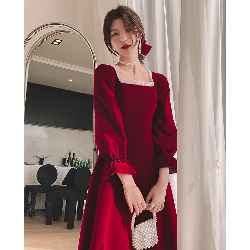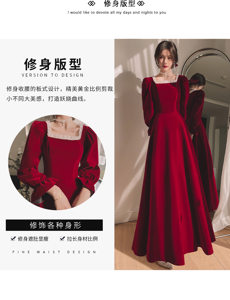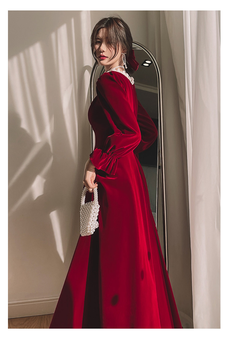 Бордовое элегантное бархатное вечернее платье, коллекция 2022