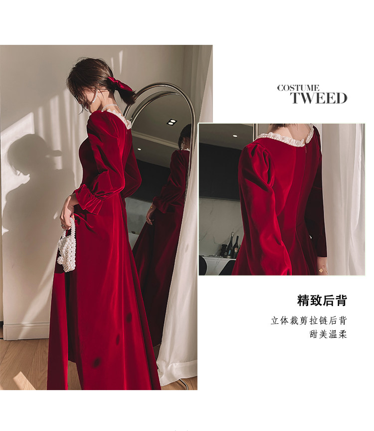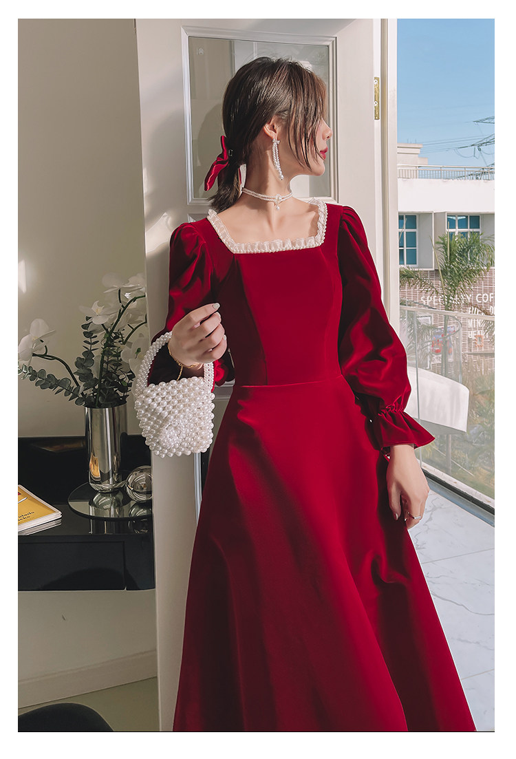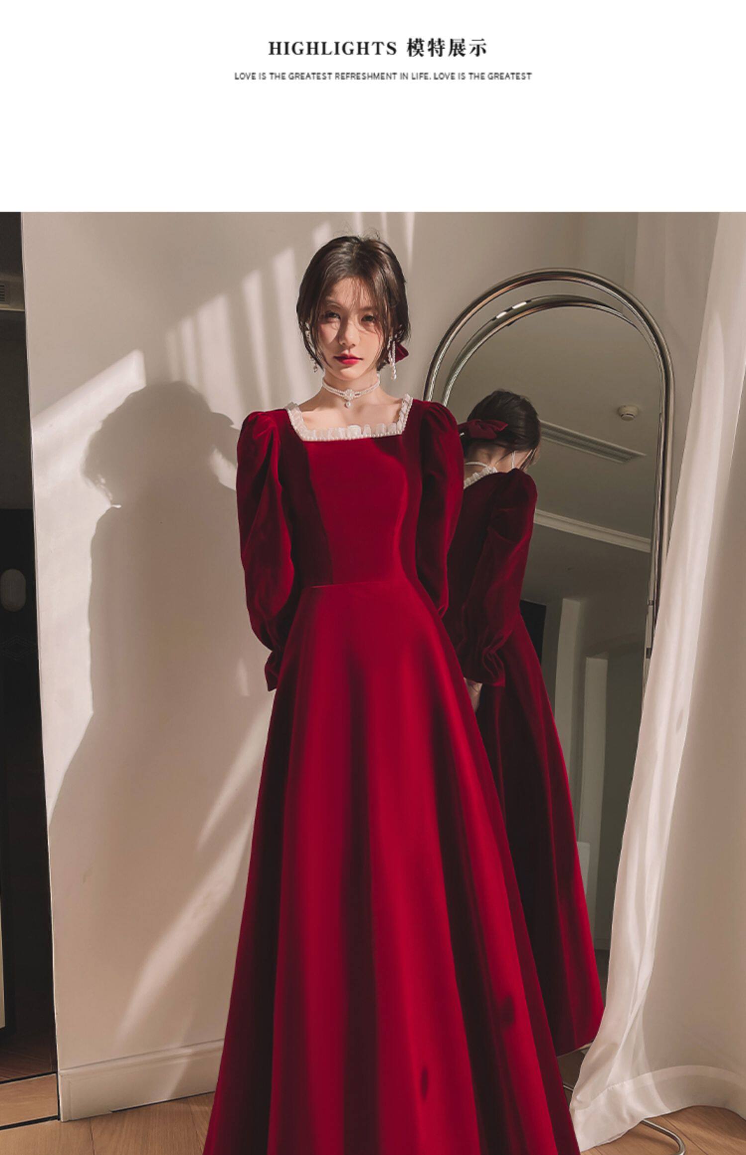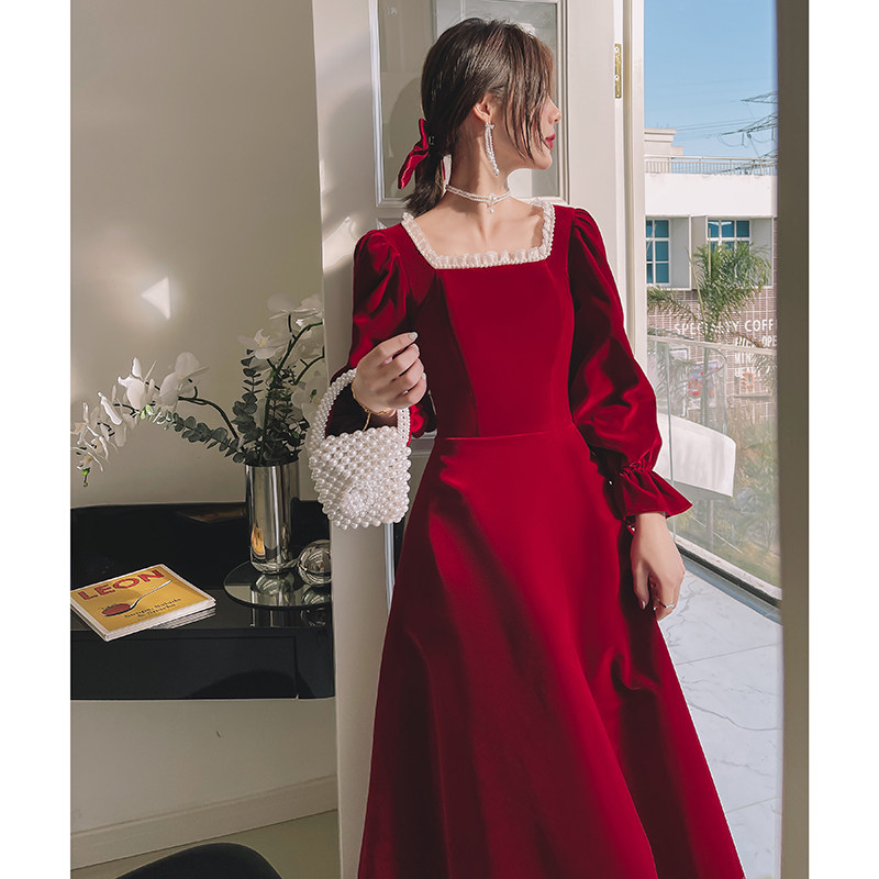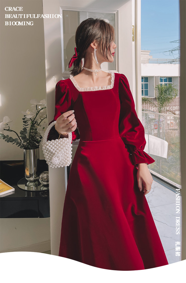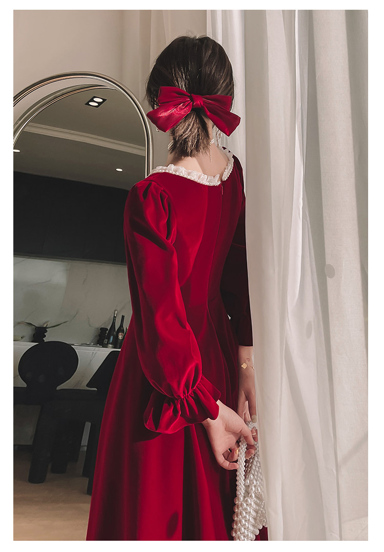 Бордовое элегантное бархатное вечернее платье, коллекция 2022