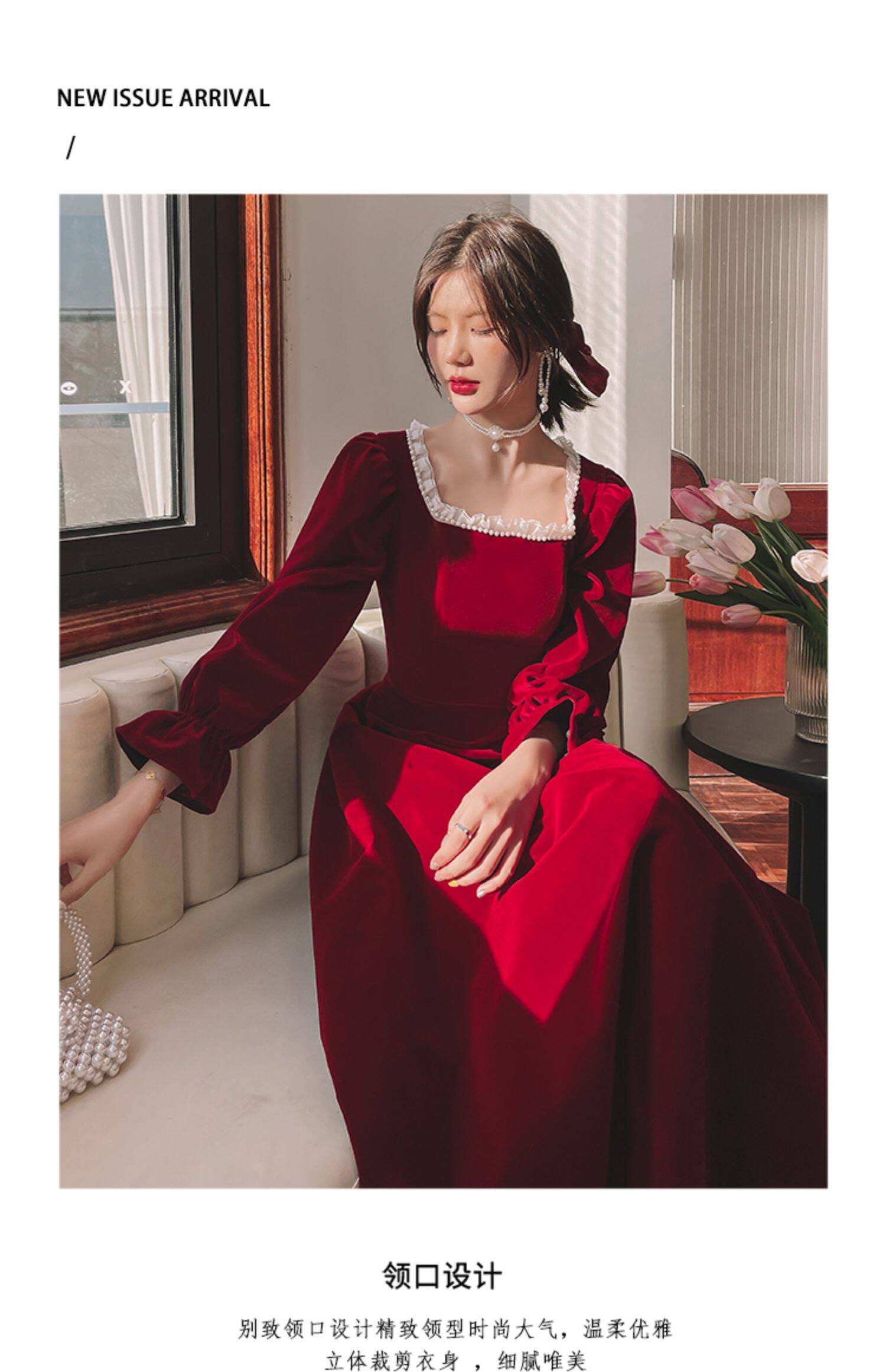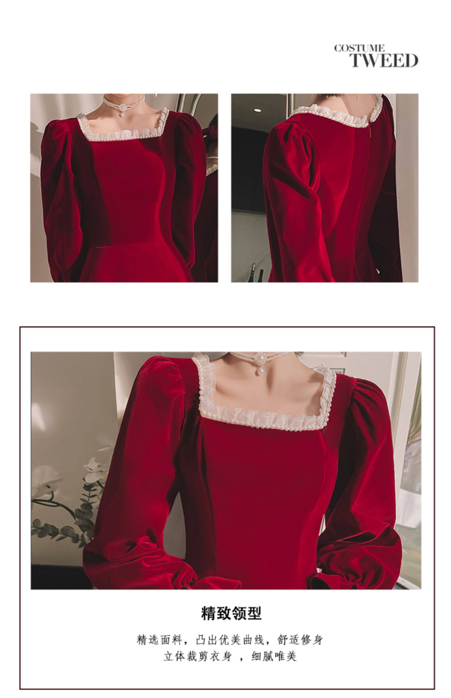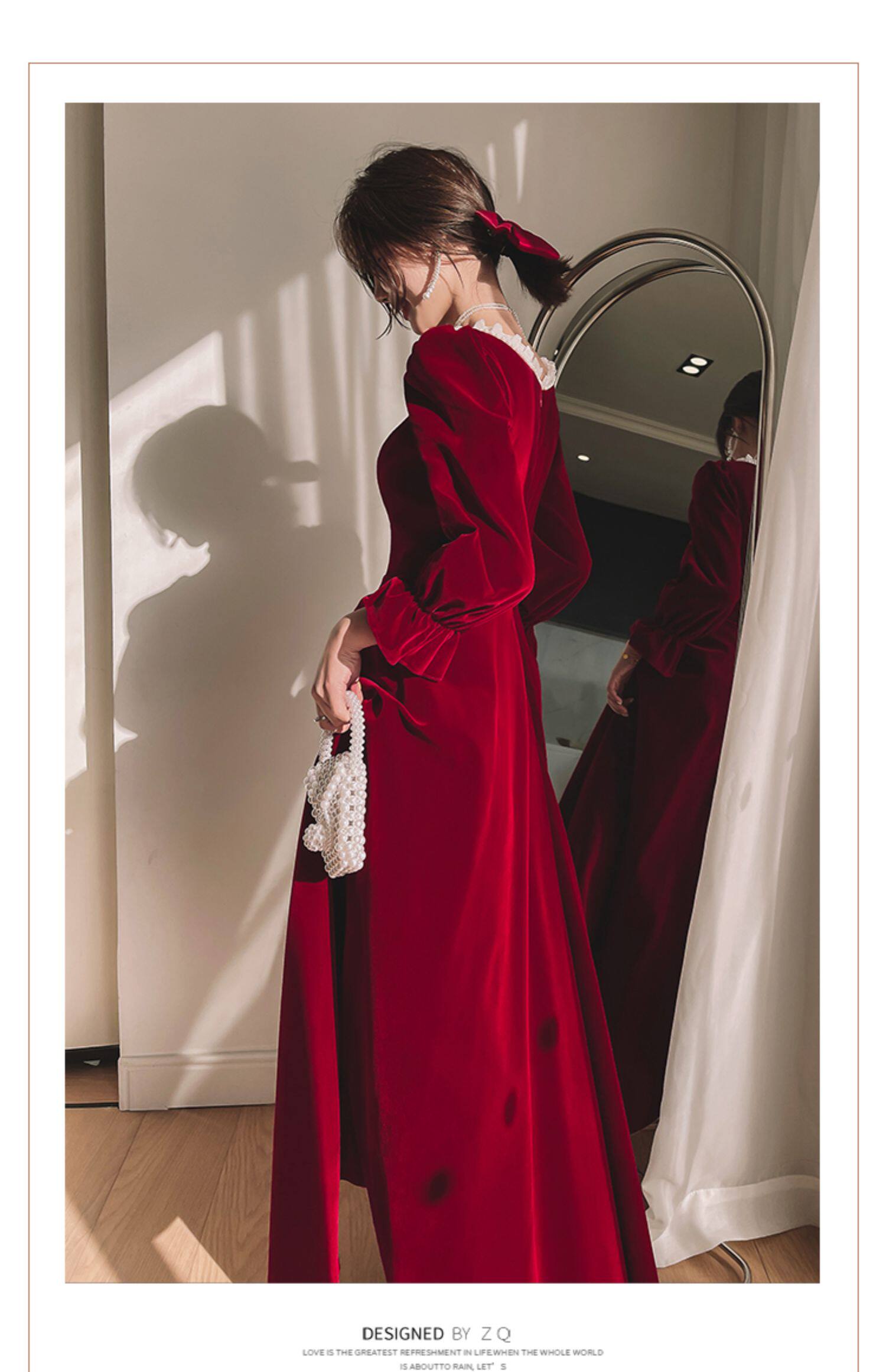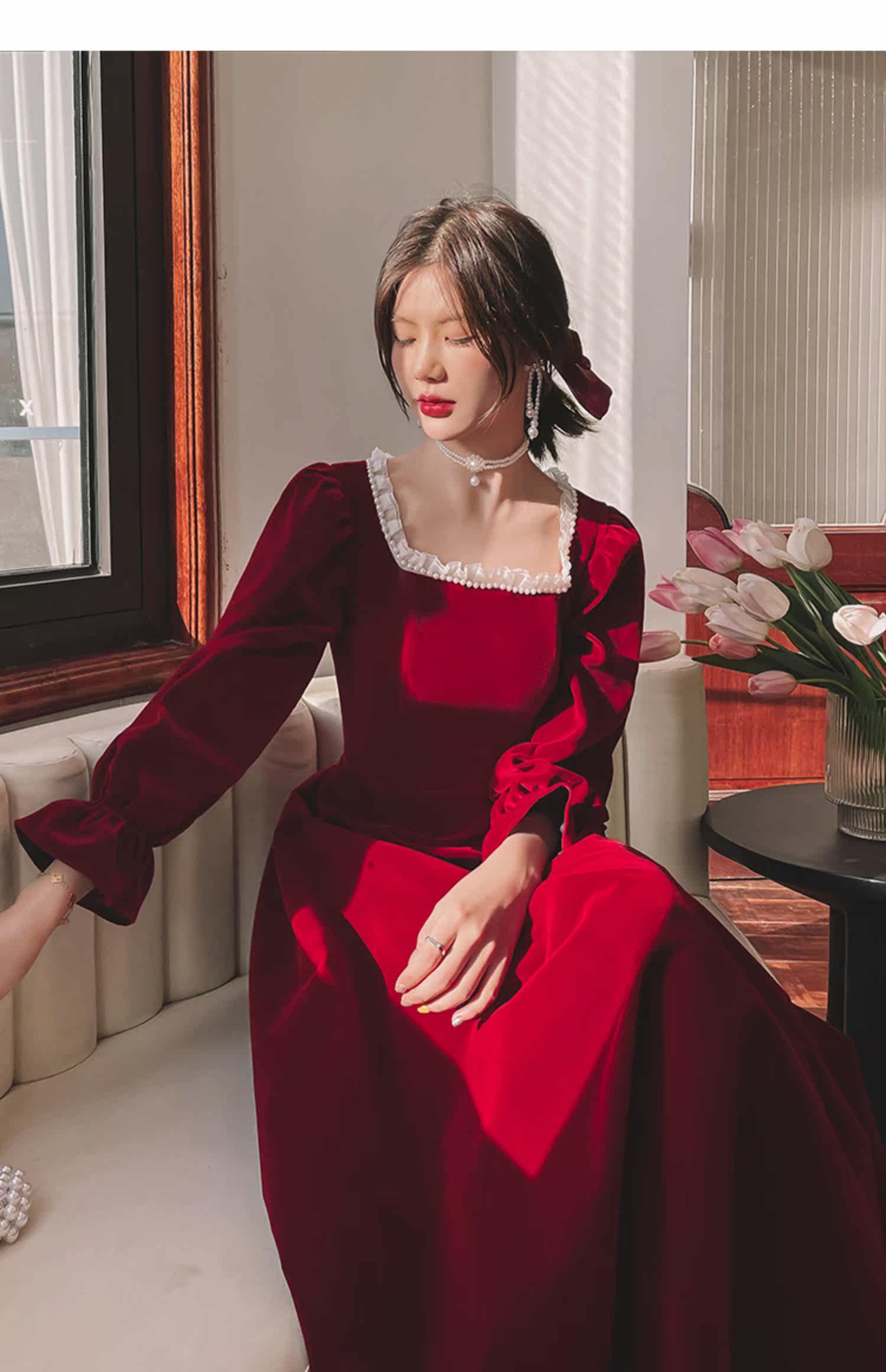 Бордовое элегантное бархатное вечернее платье, коллекция 2022