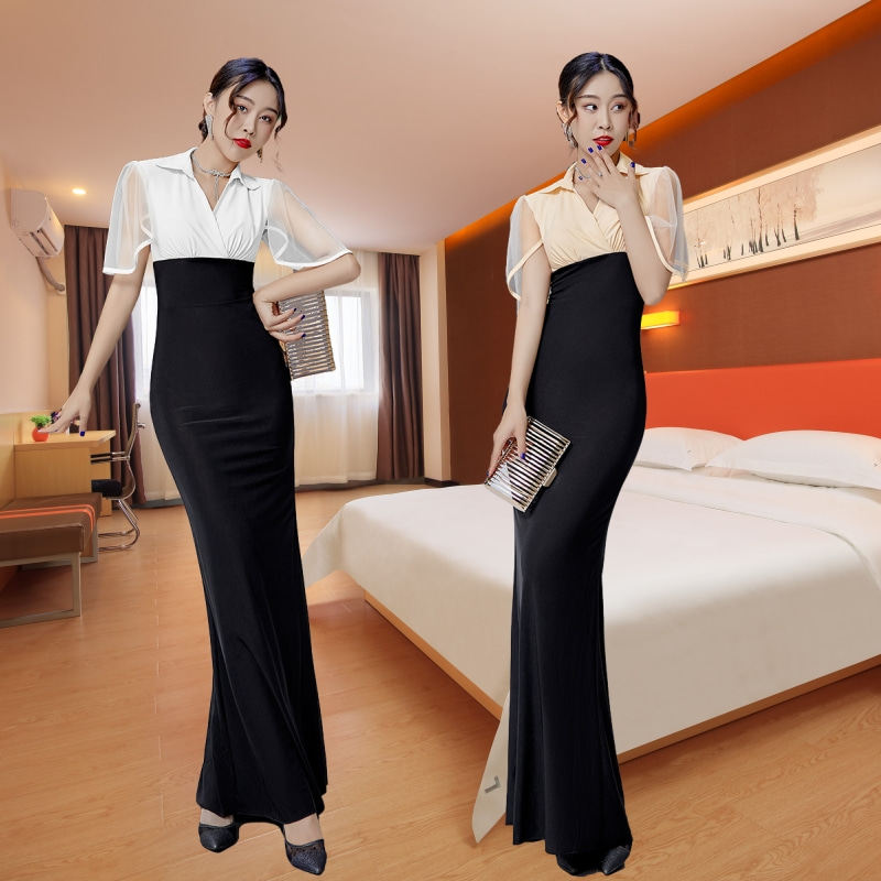Весеннее вечернее платье, длинная юбка, V-образный вырез, облегающий крой, с акцентом на бедрах