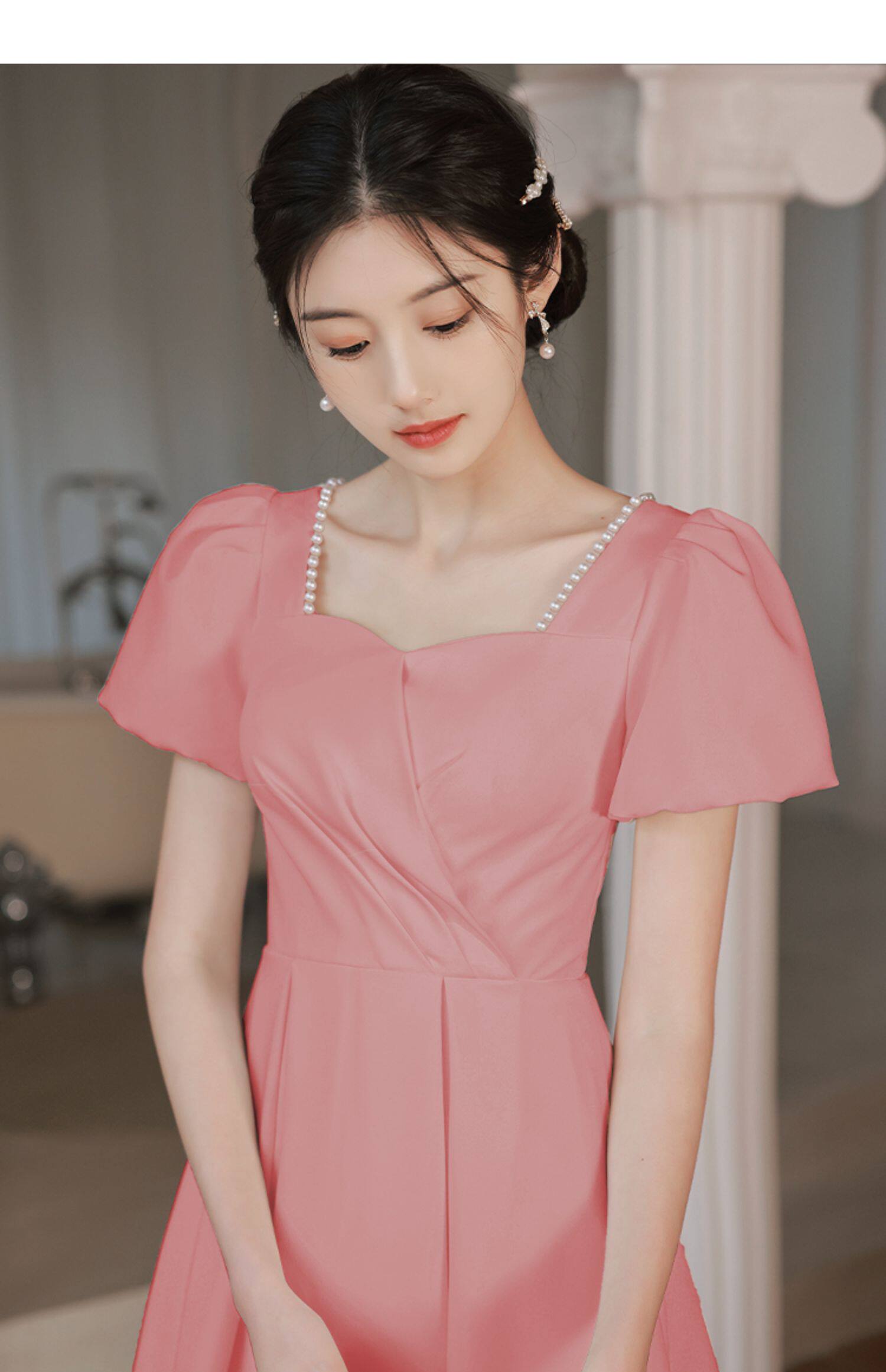 Розовое вечернее платье, платье подружки невесты для принцессы, юбка