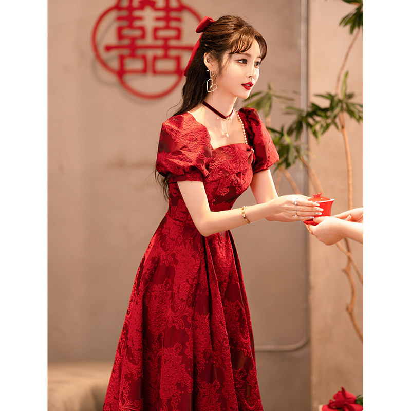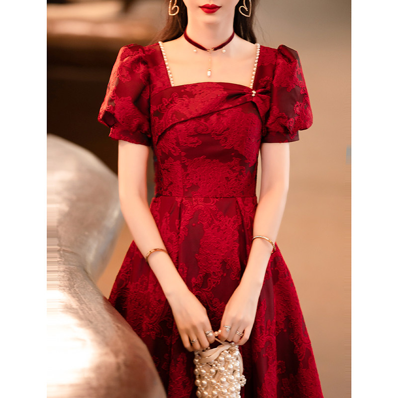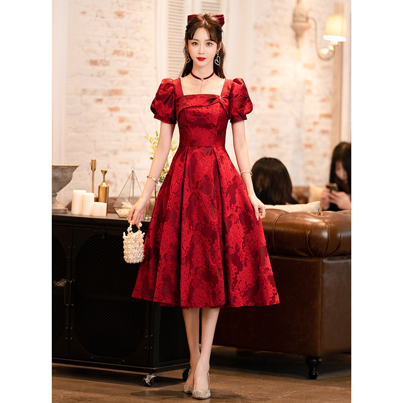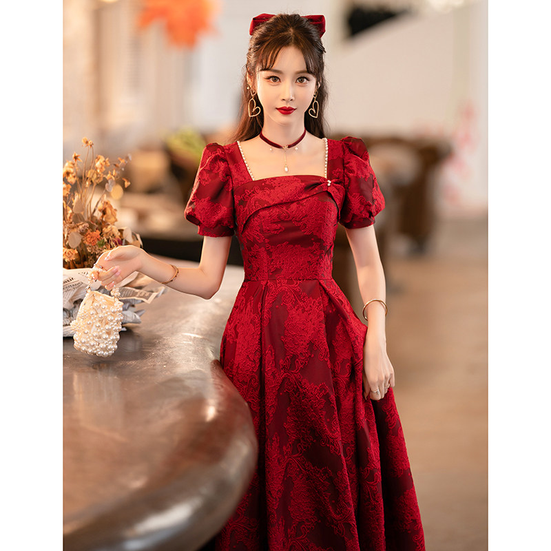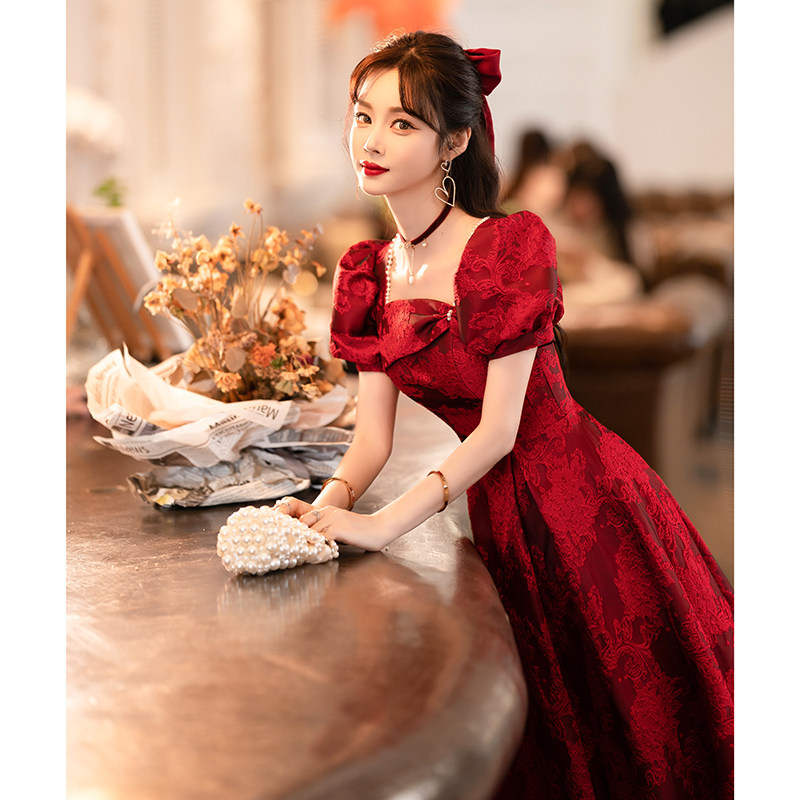 Бордовое ретро вечернее платье для принцессы, подходит для подростков, французский ретро стиль, рукава фонарики