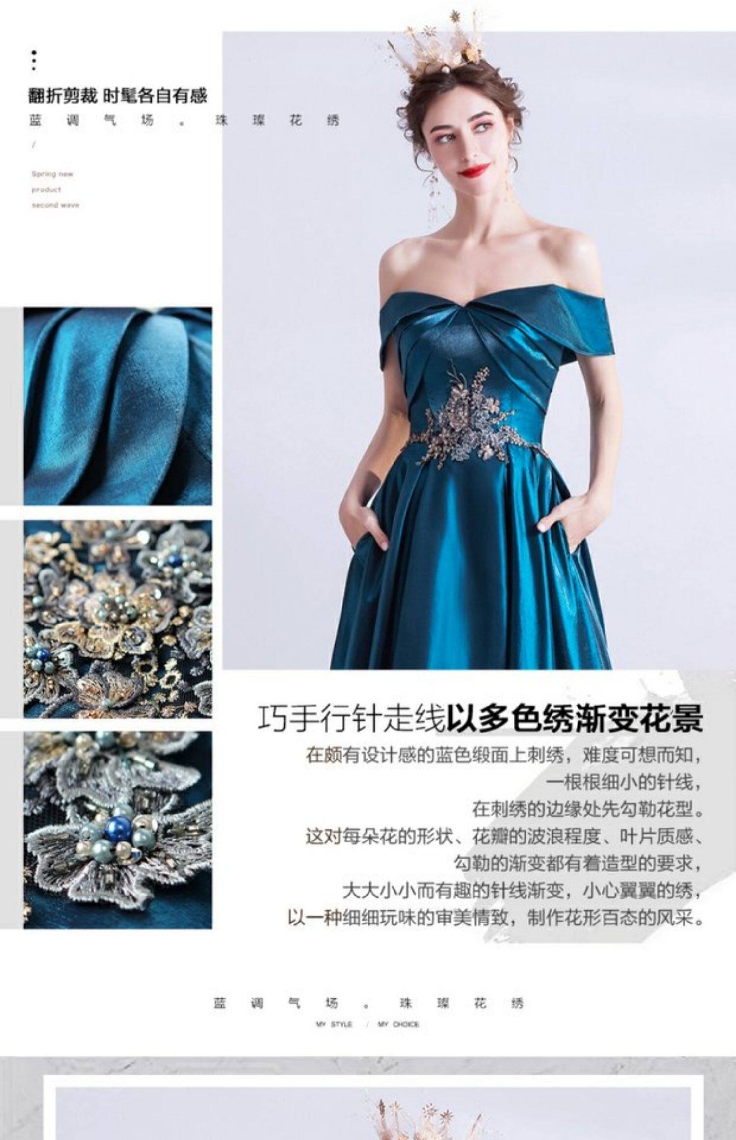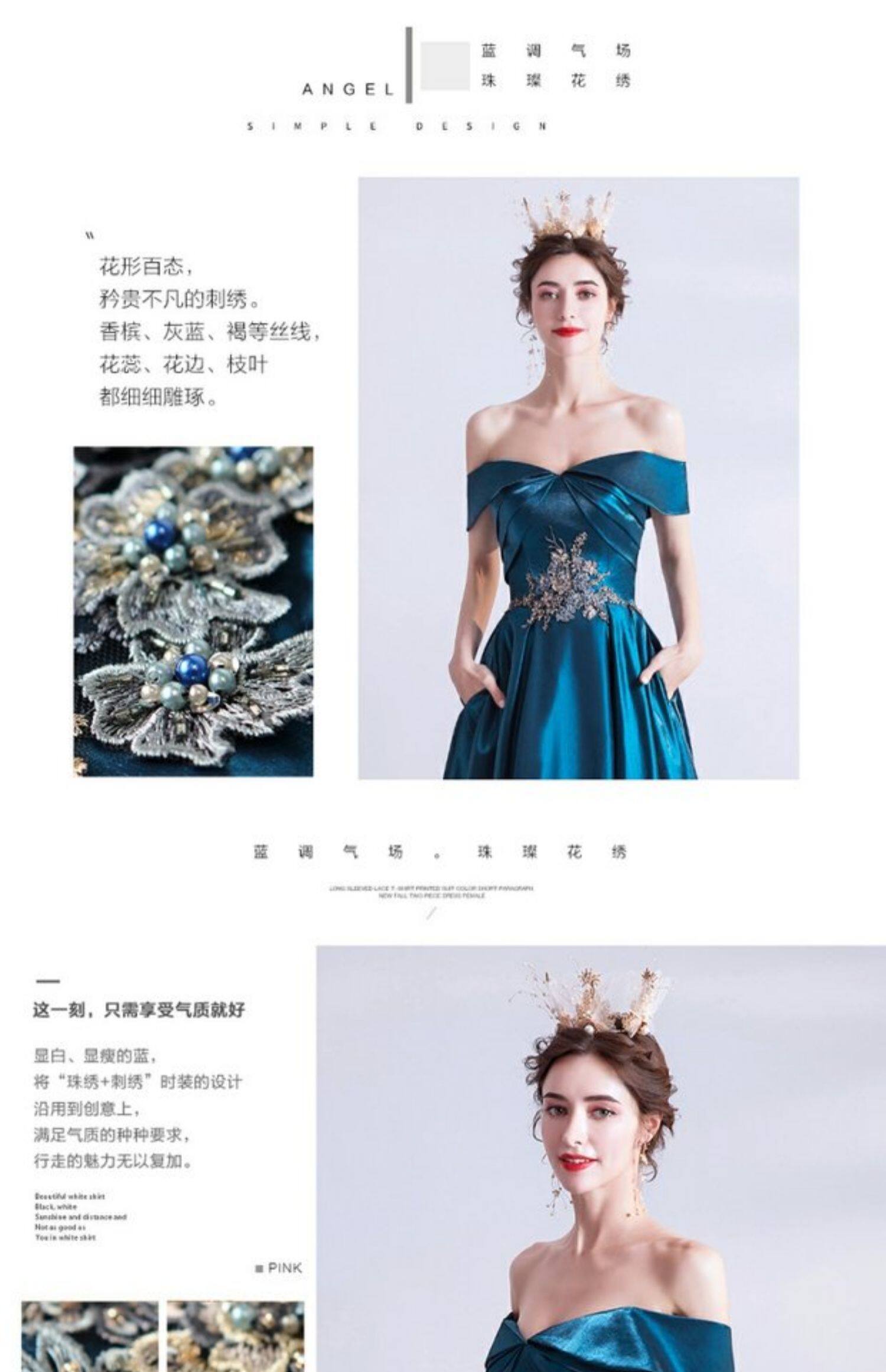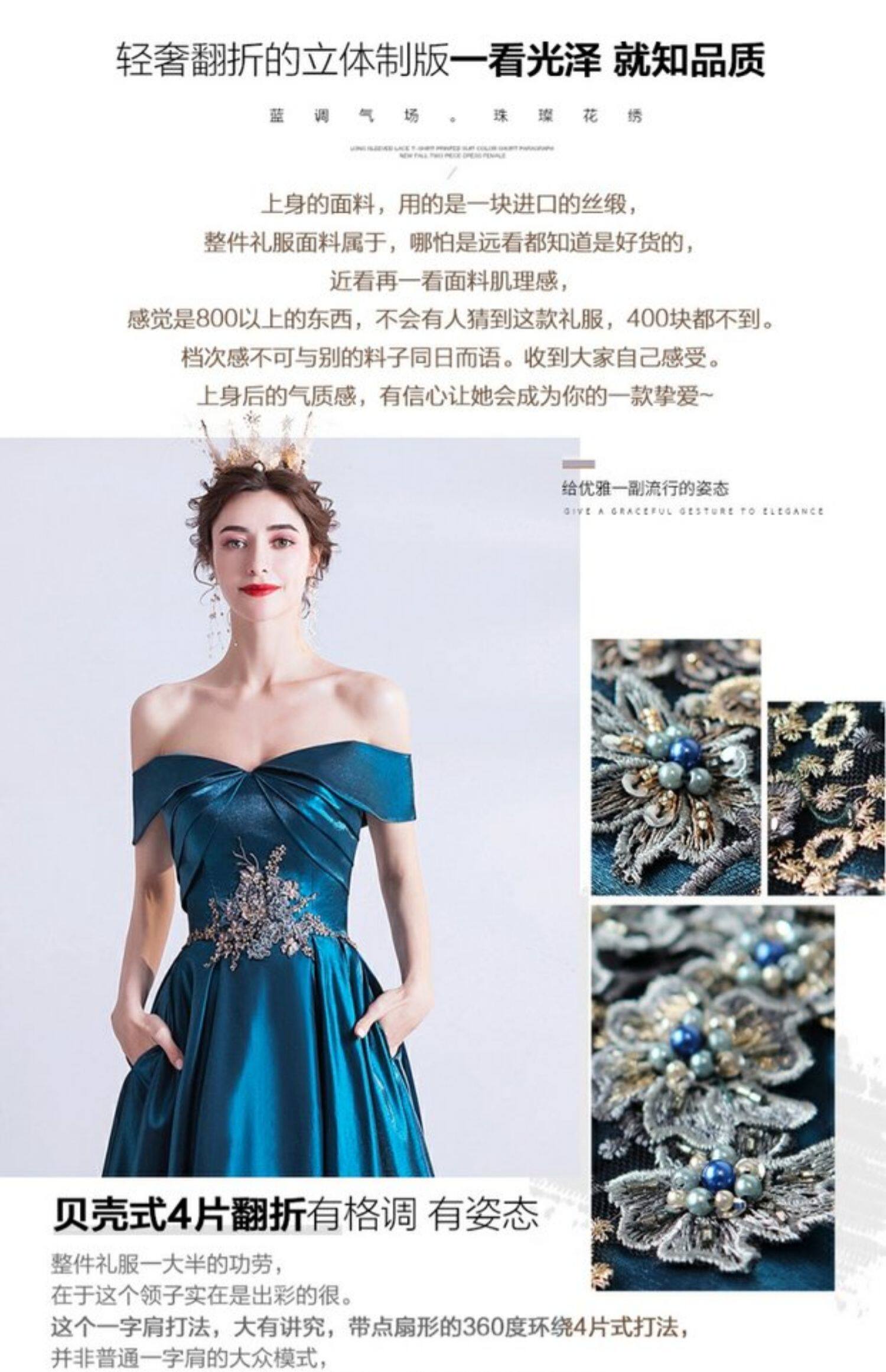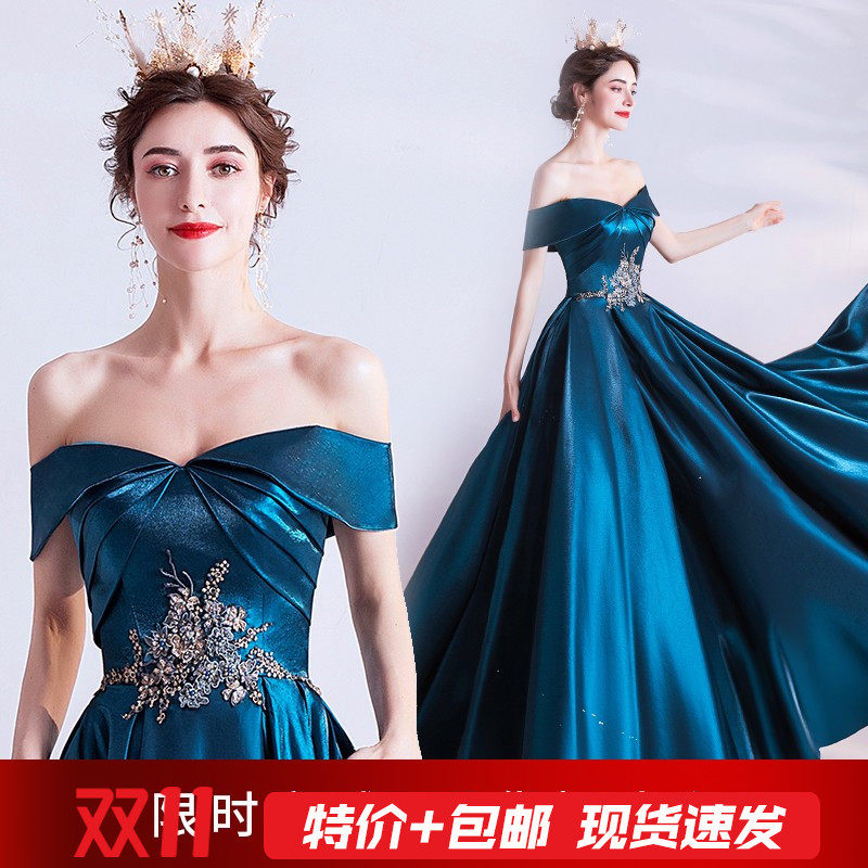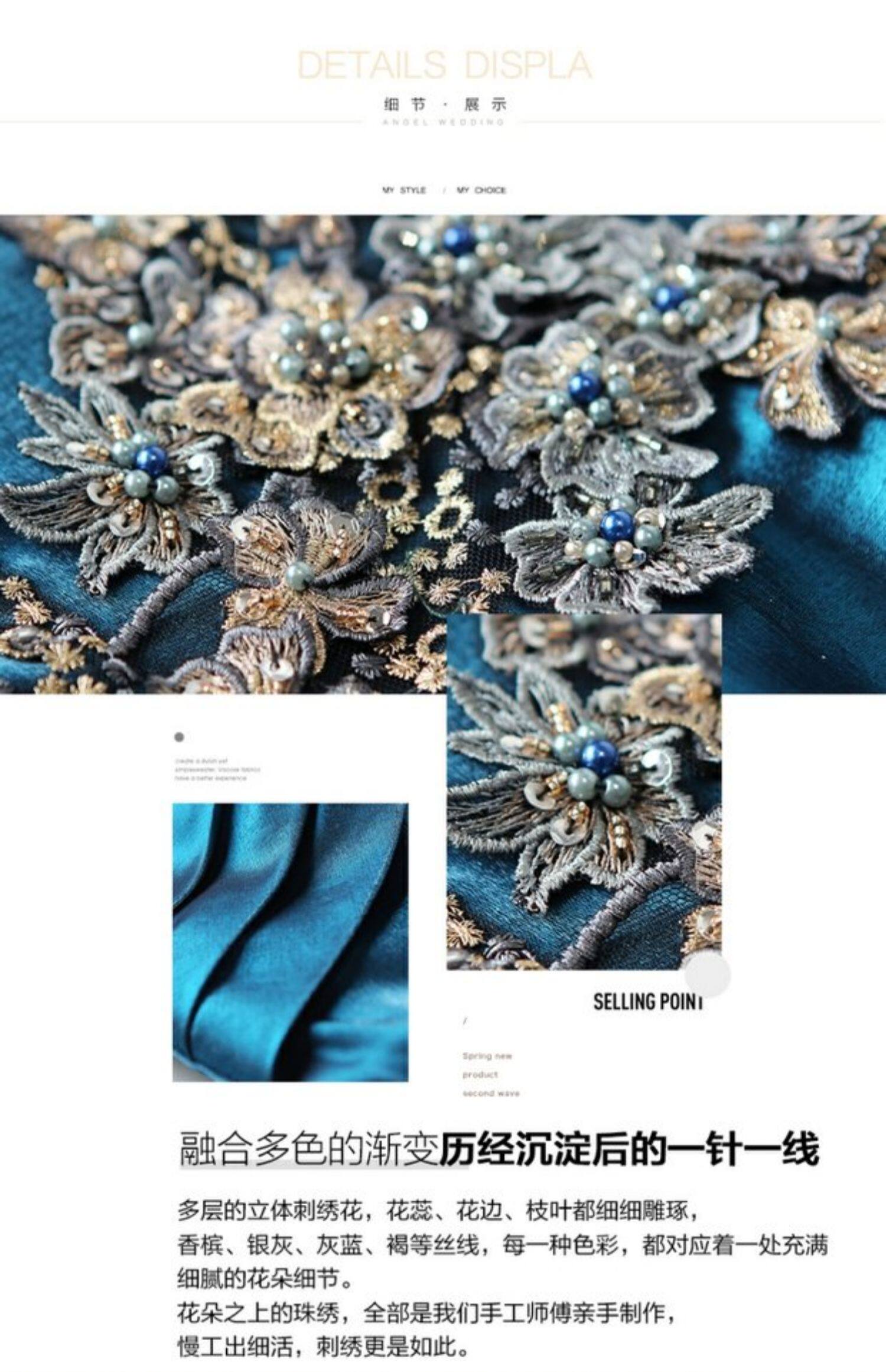 天使嫁衣 Синее свадебное платье, вечернее платье, для подиума