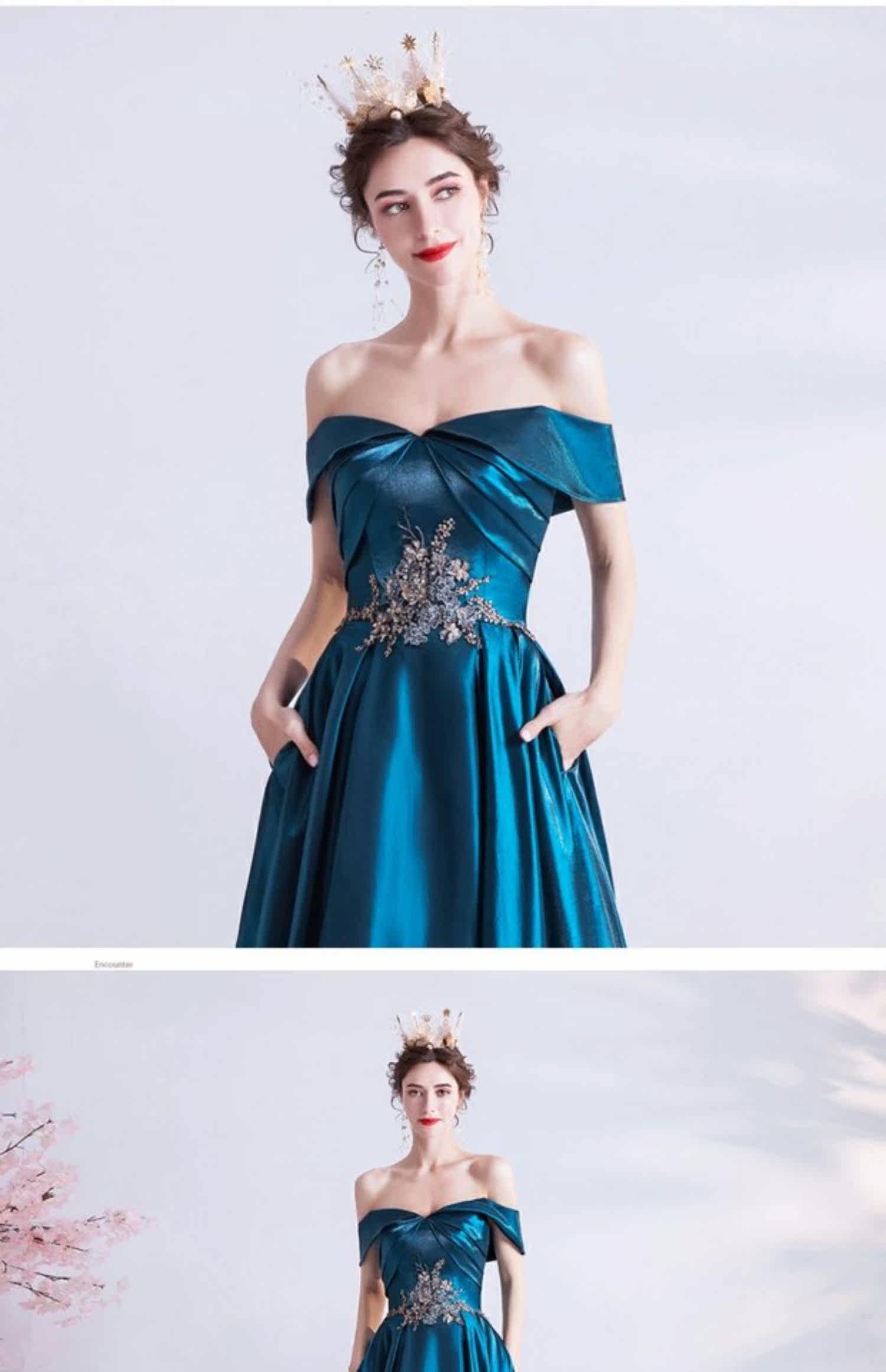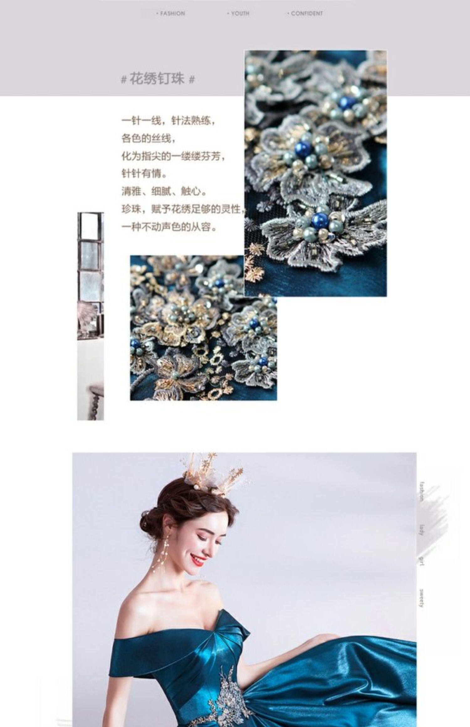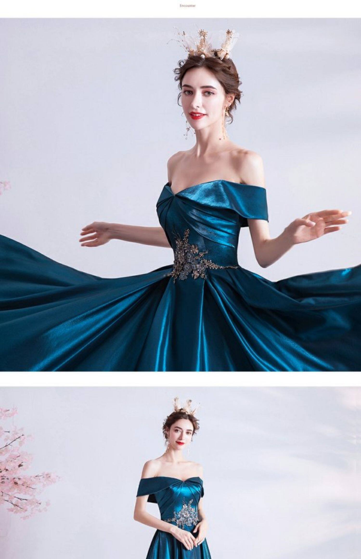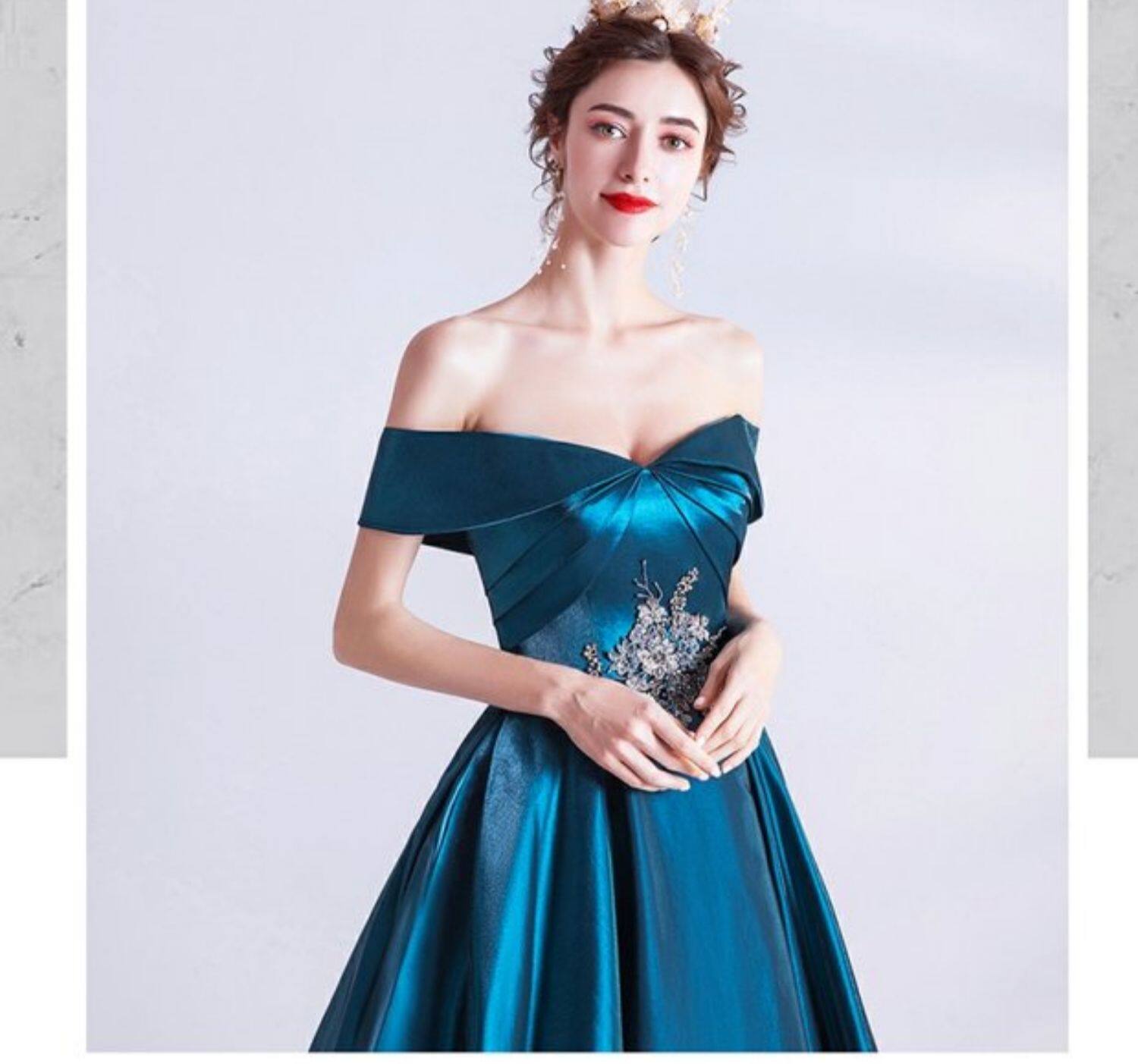 天使嫁衣 Синее свадебное платье, вечернее платье, для подиума