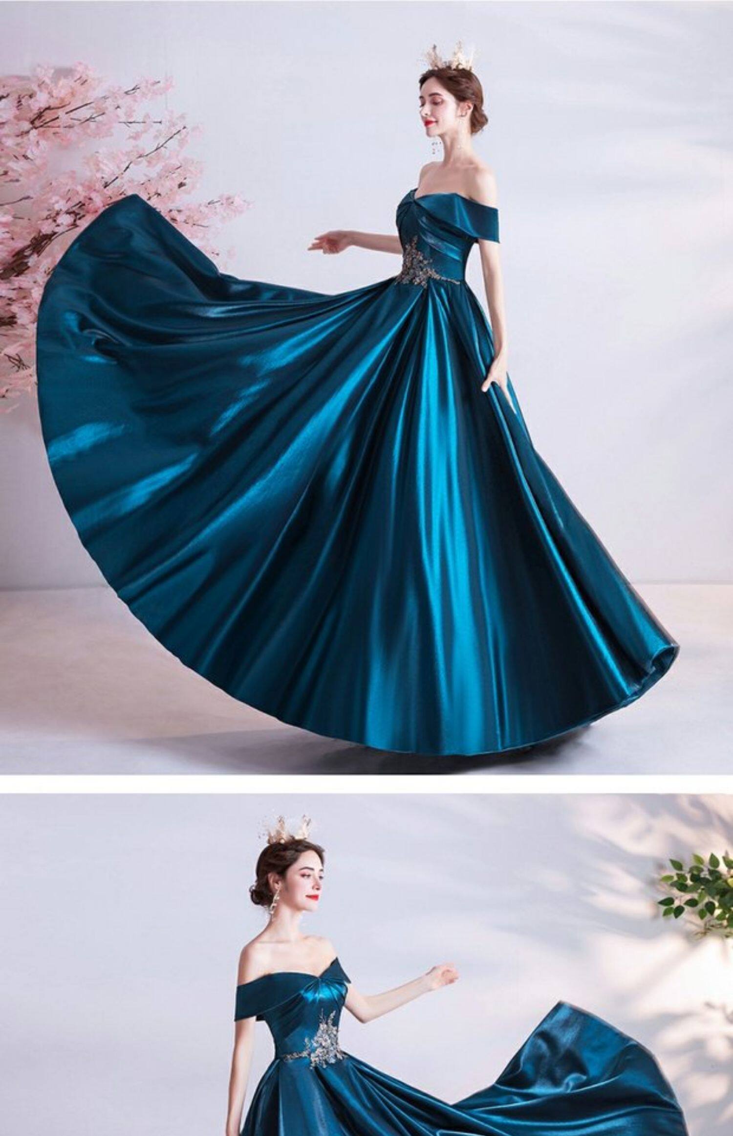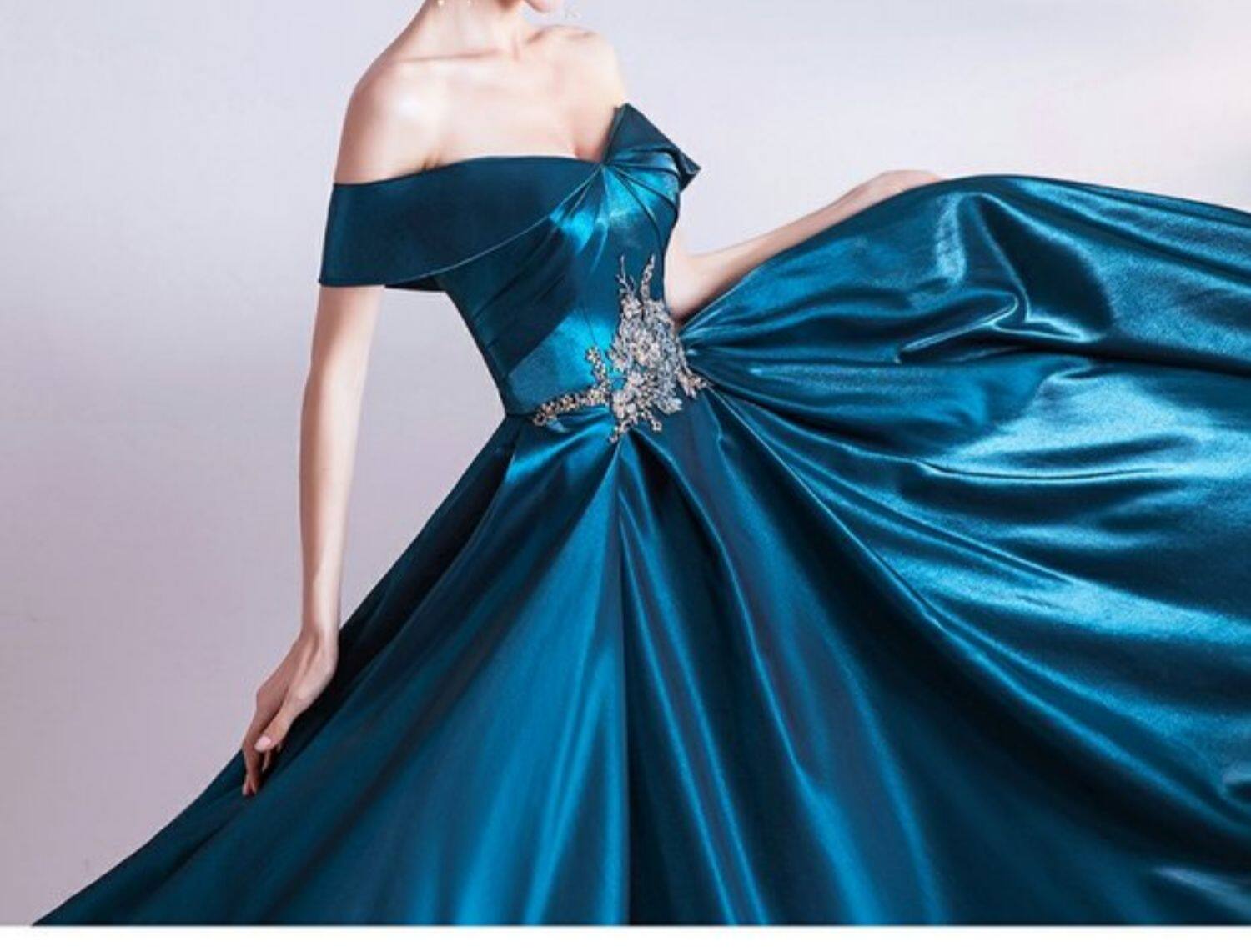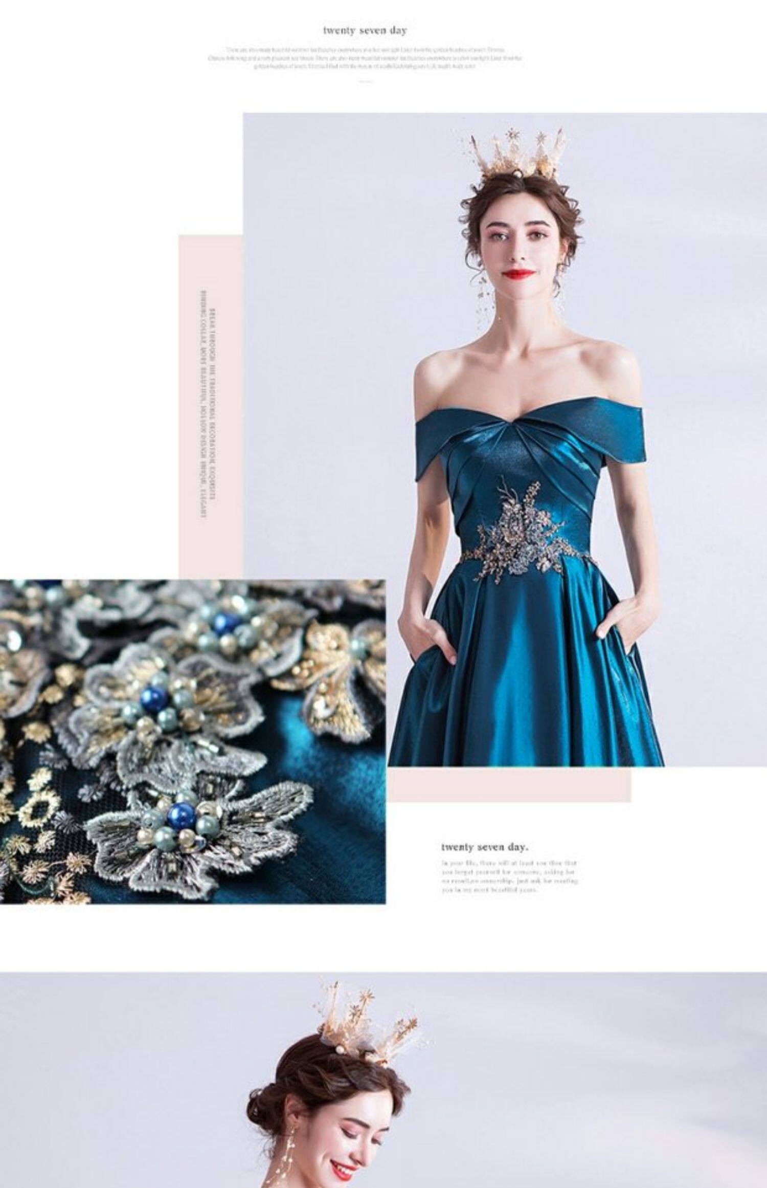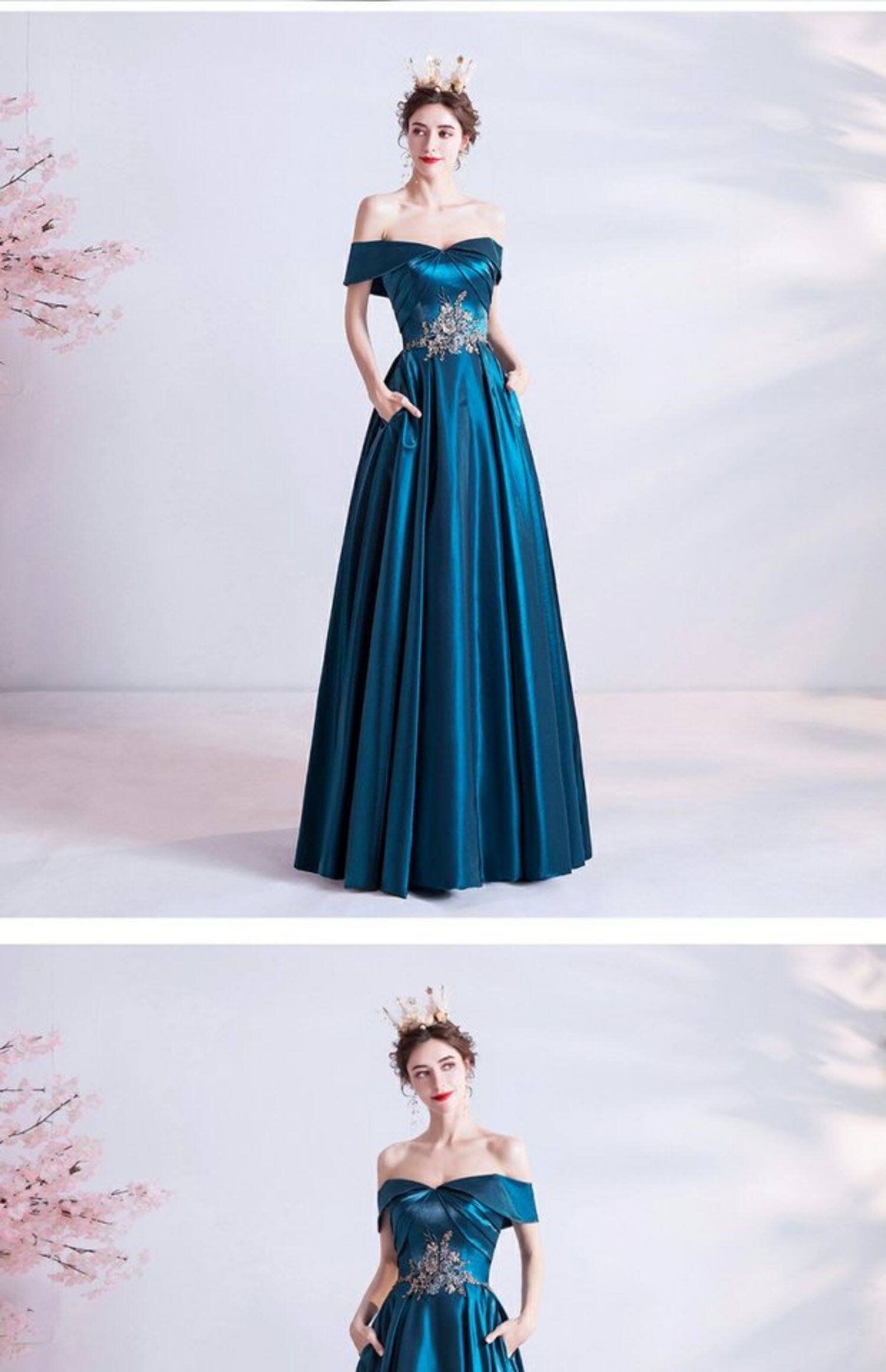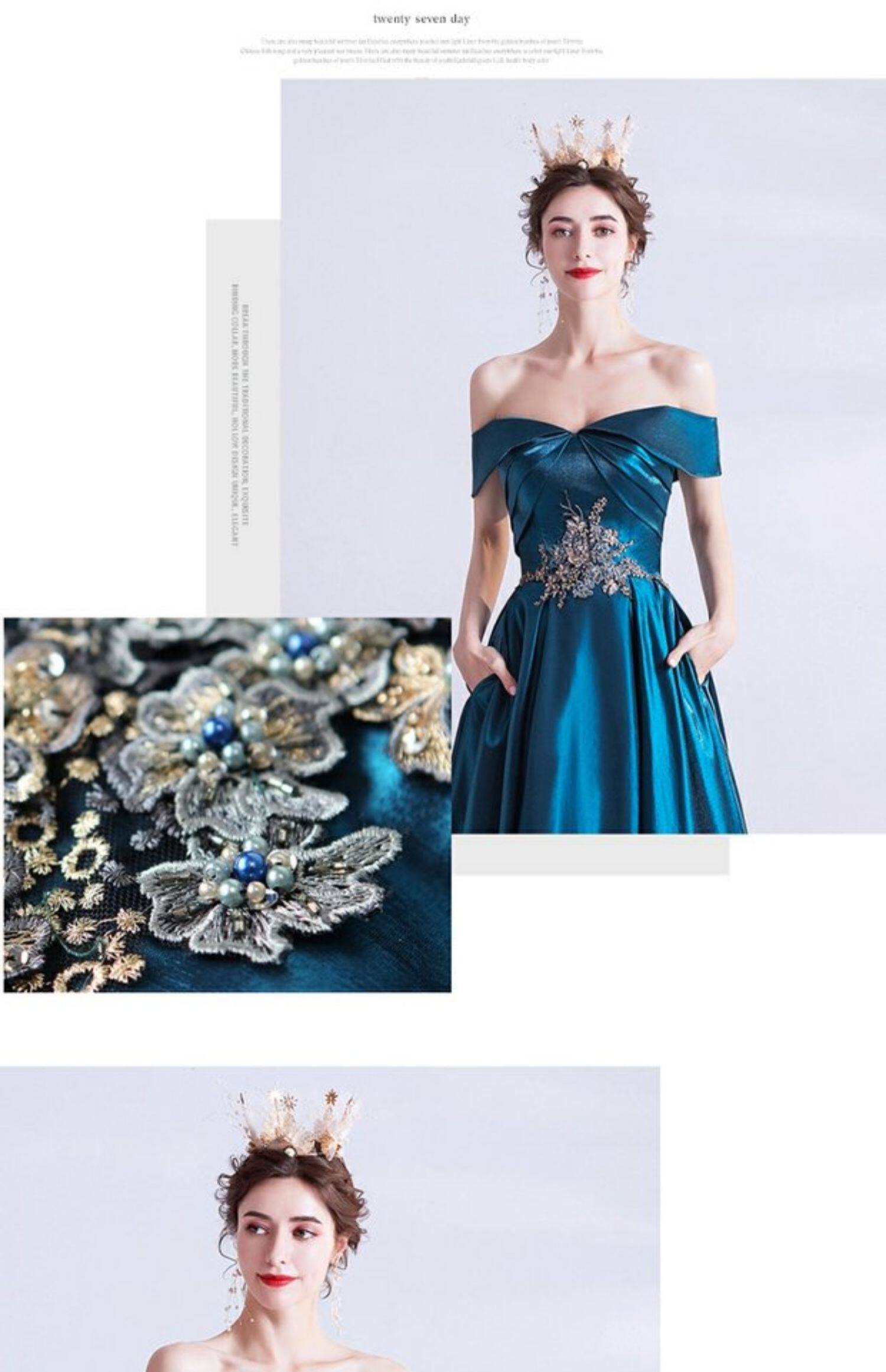 天使嫁衣 Синее свадебное платье, вечернее платье, для подиума