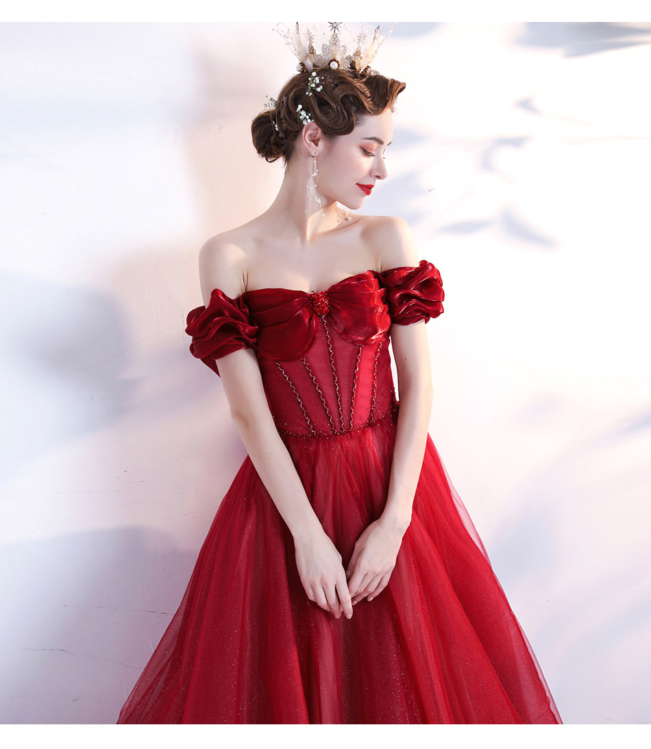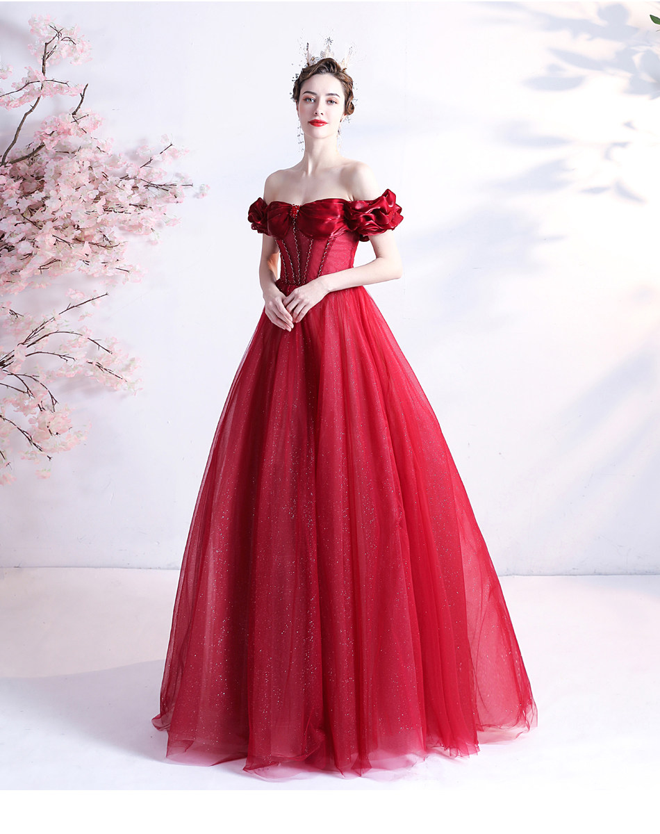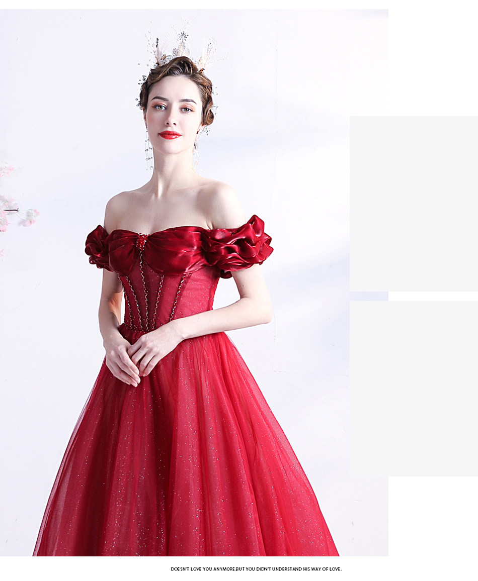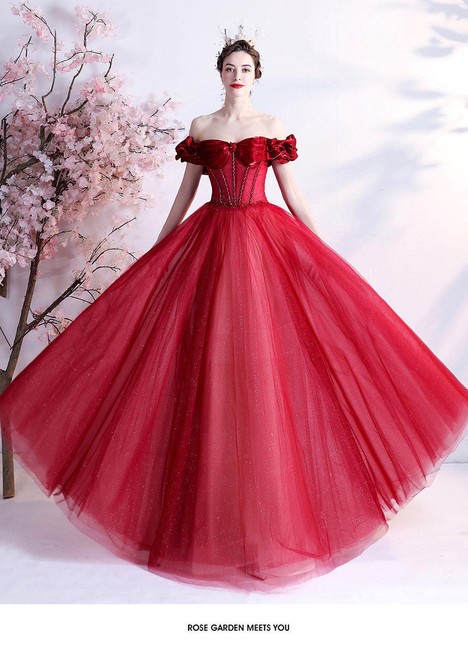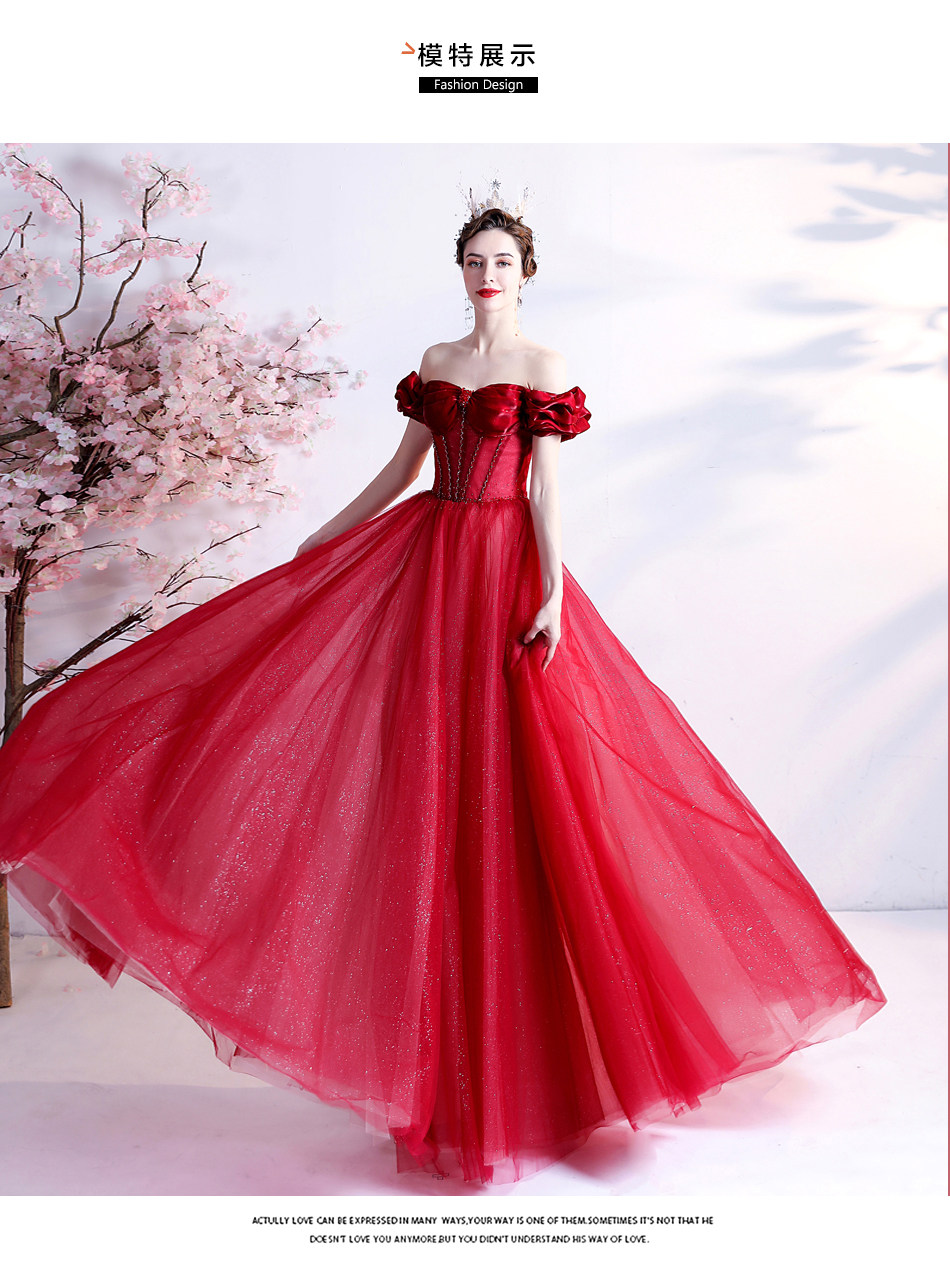 Красное свадебное платье для невесты, вечернее платье, в цветочек, открытые плечи
