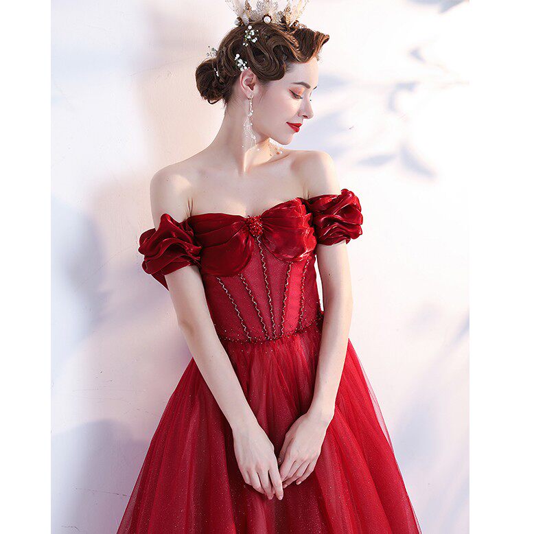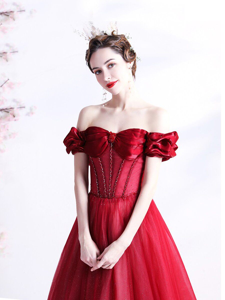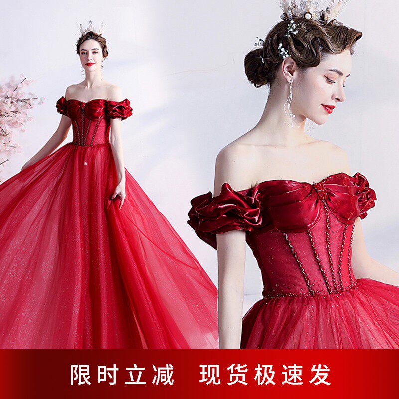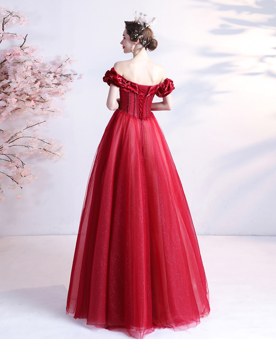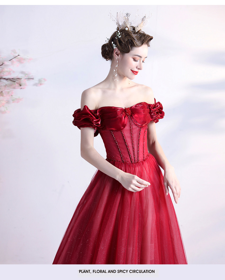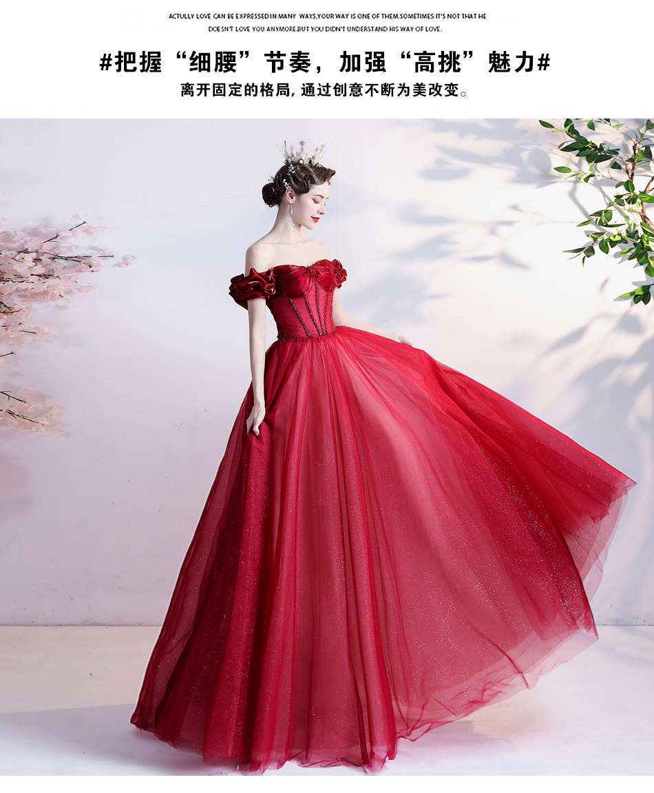 Красное свадебное платье для невесты, вечернее платье, в цветочек, открытые плечи