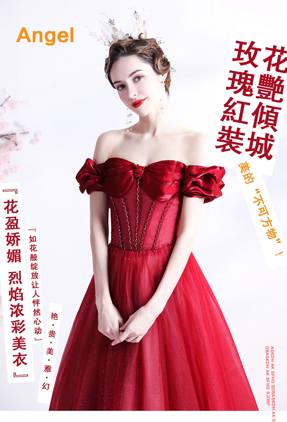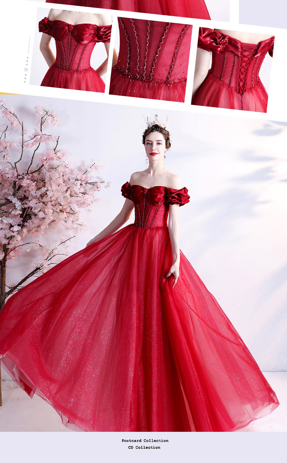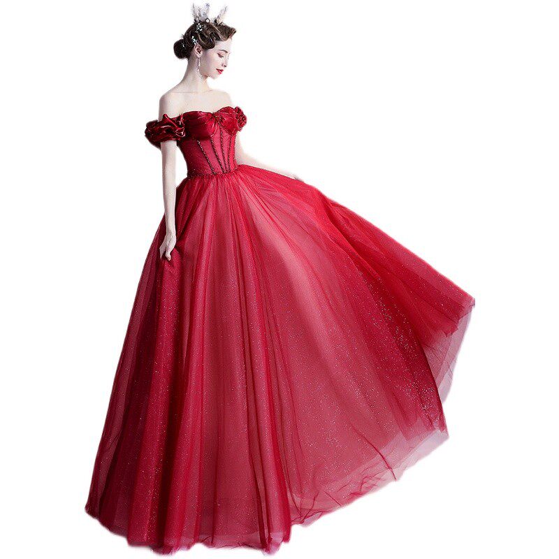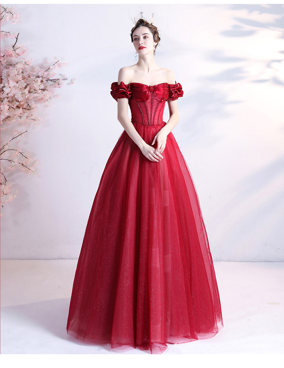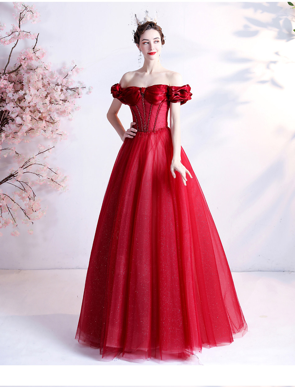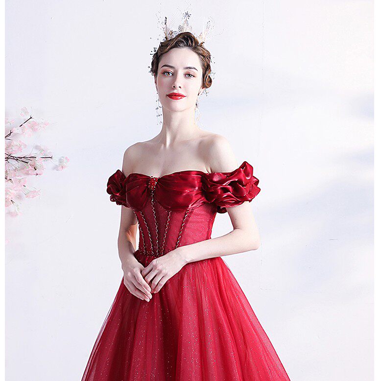 Красное свадебное платье для невесты, вечернее платье, в цветочек, открытые плечи