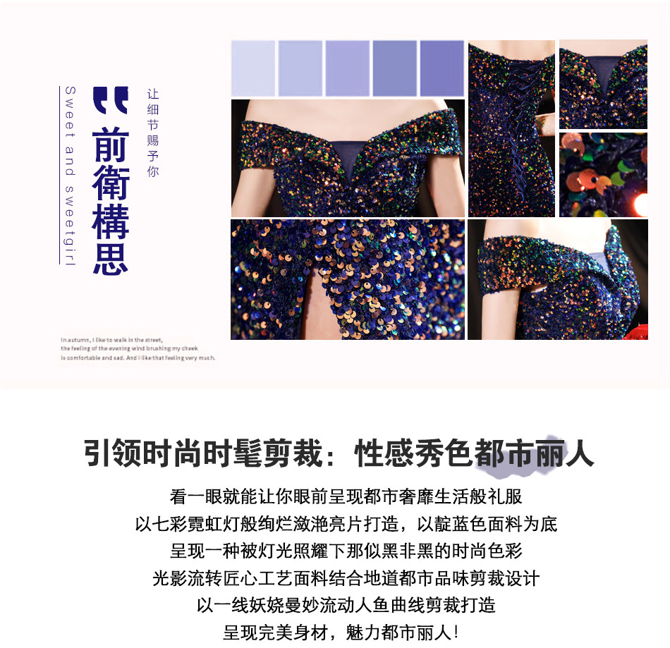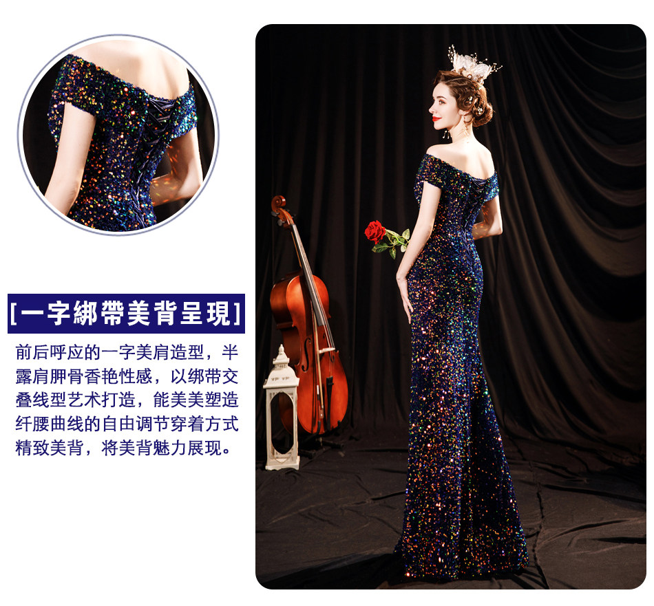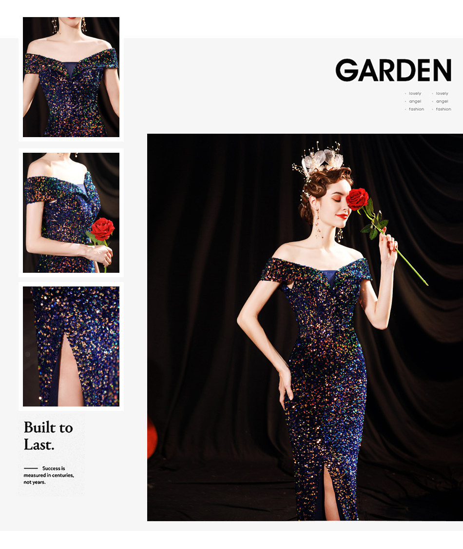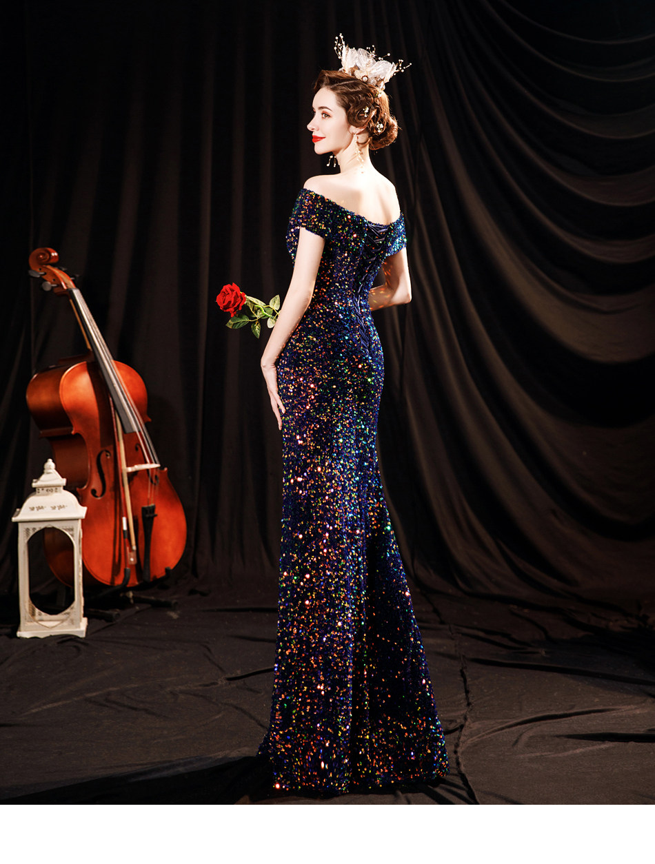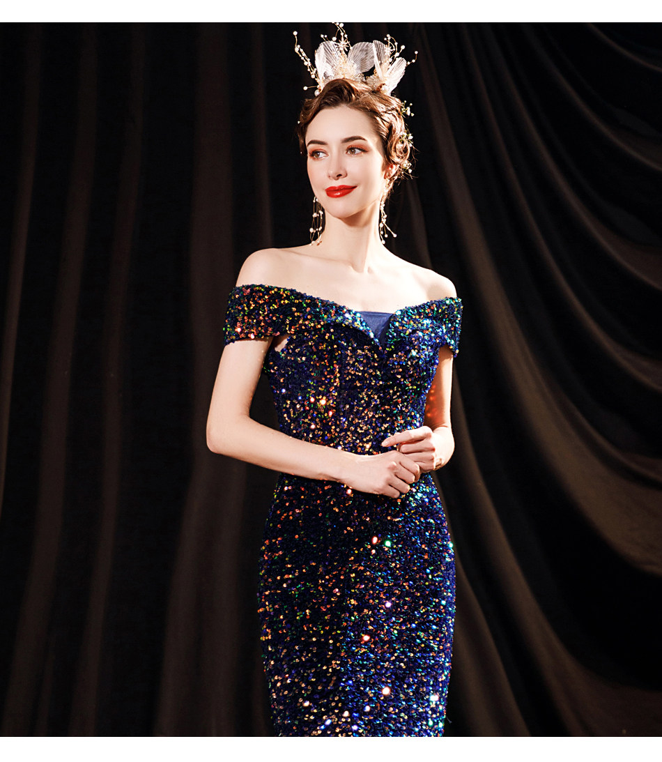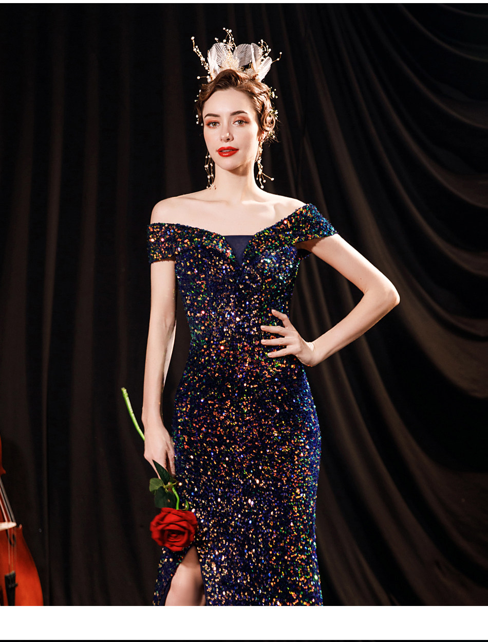 Свадебное платье ангела Блестящее синее звездное банкет Банкет с днем рождения с расщепленным свадебным платьем вечернее платье 17069
