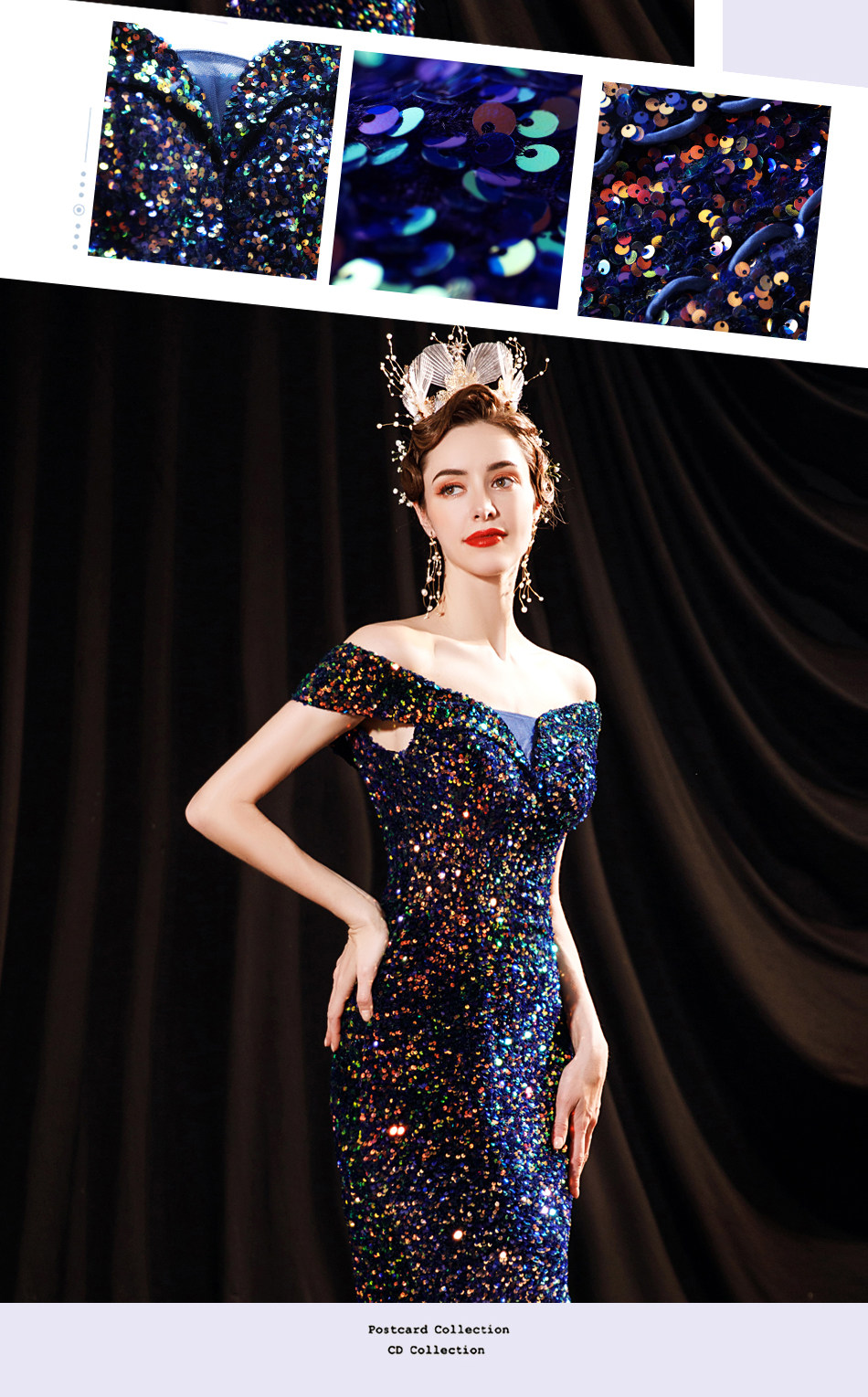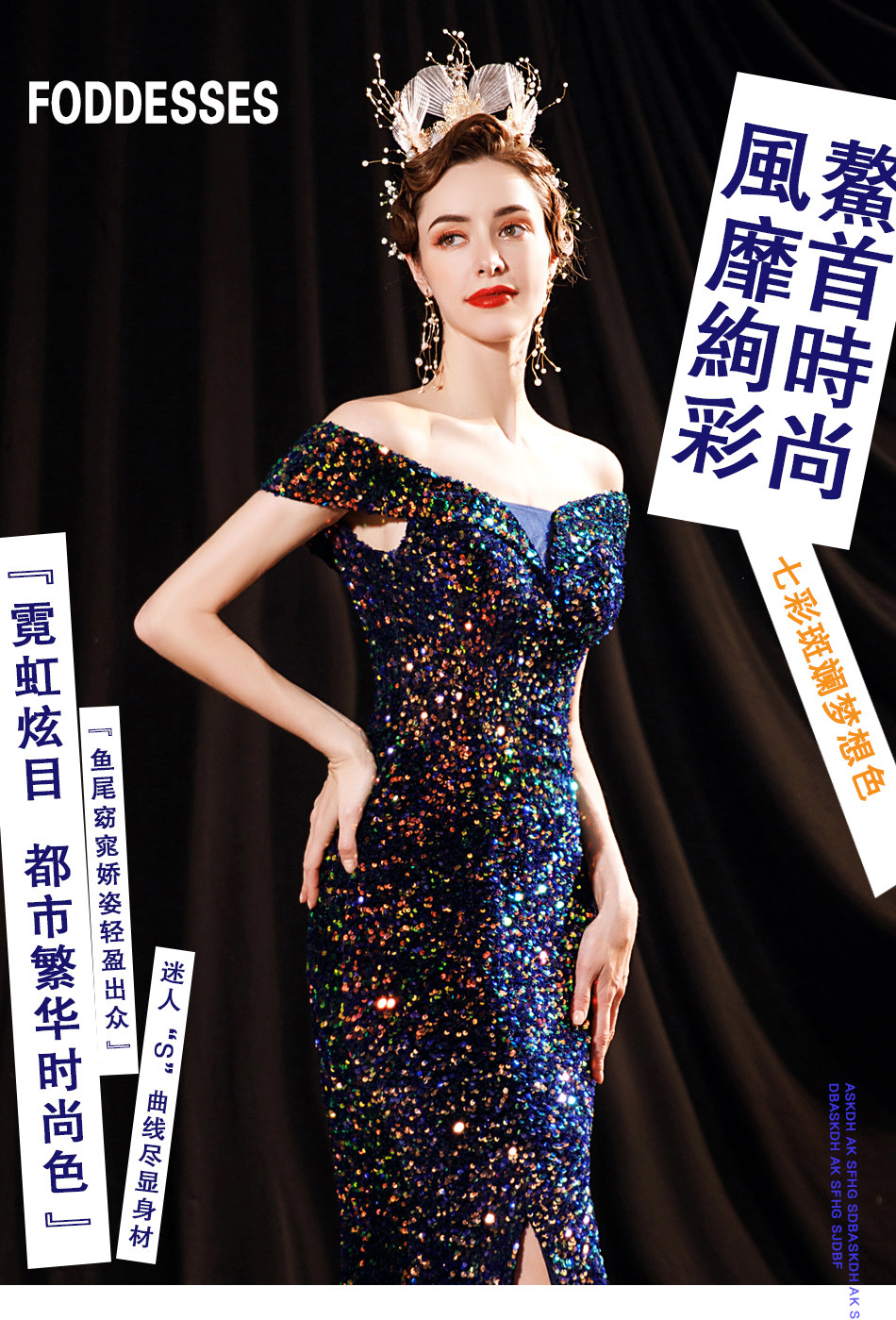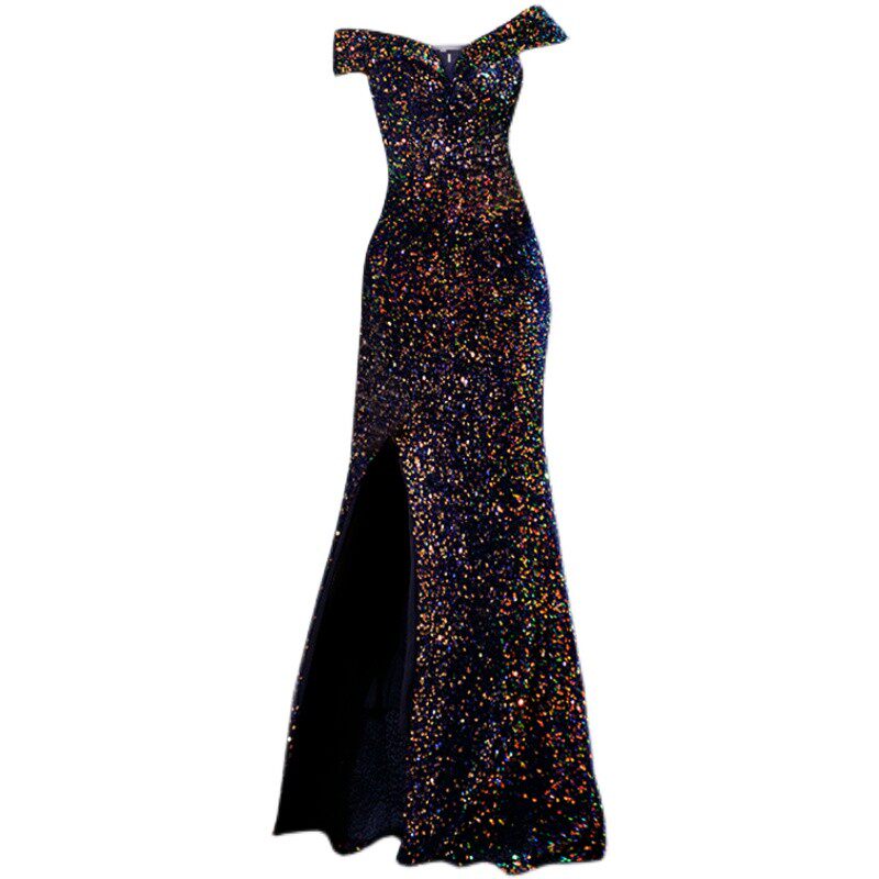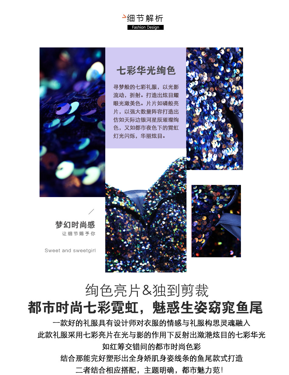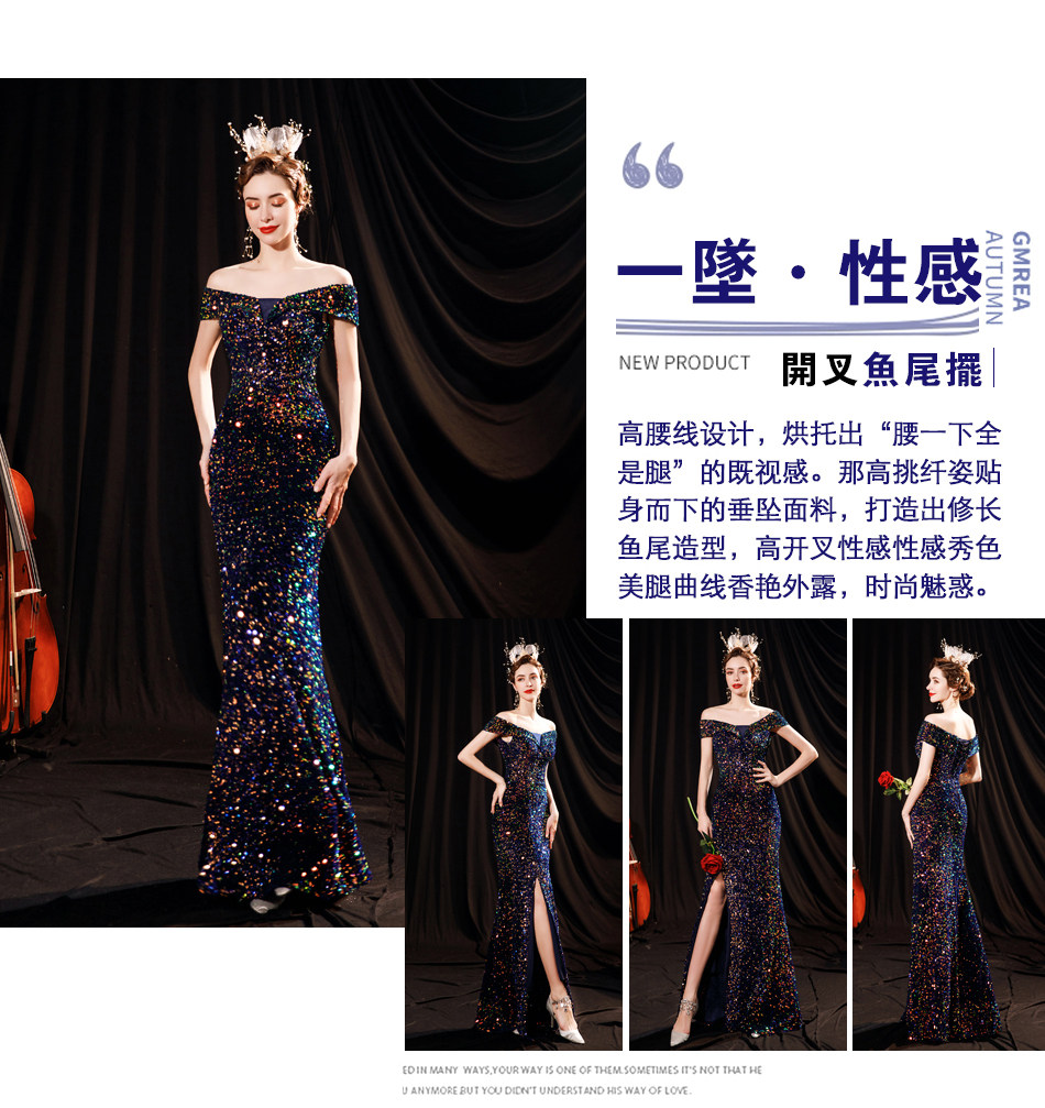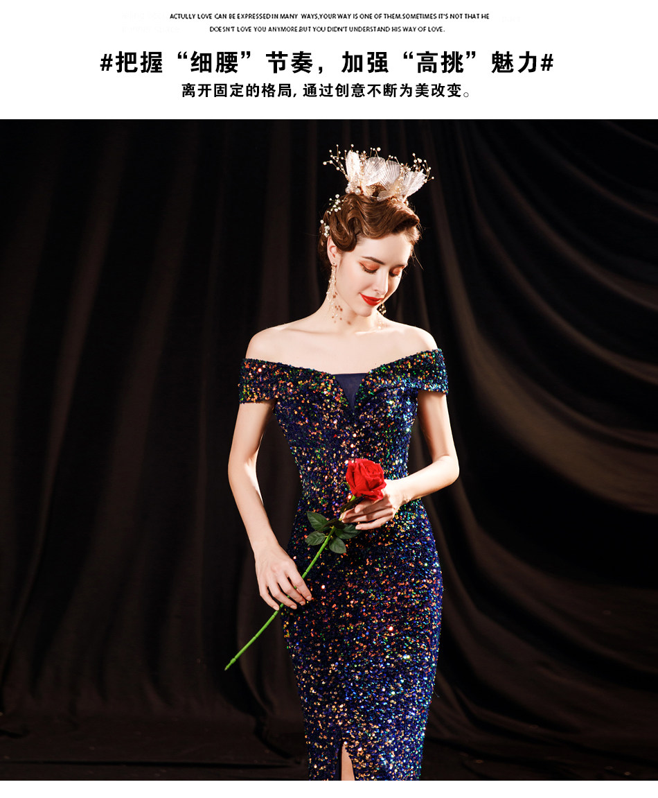Свадебное платье ангела Блестящее синее звездное банкет Банкет с днем рождения с расщепленным свадебным платьем вечернее платье 17069