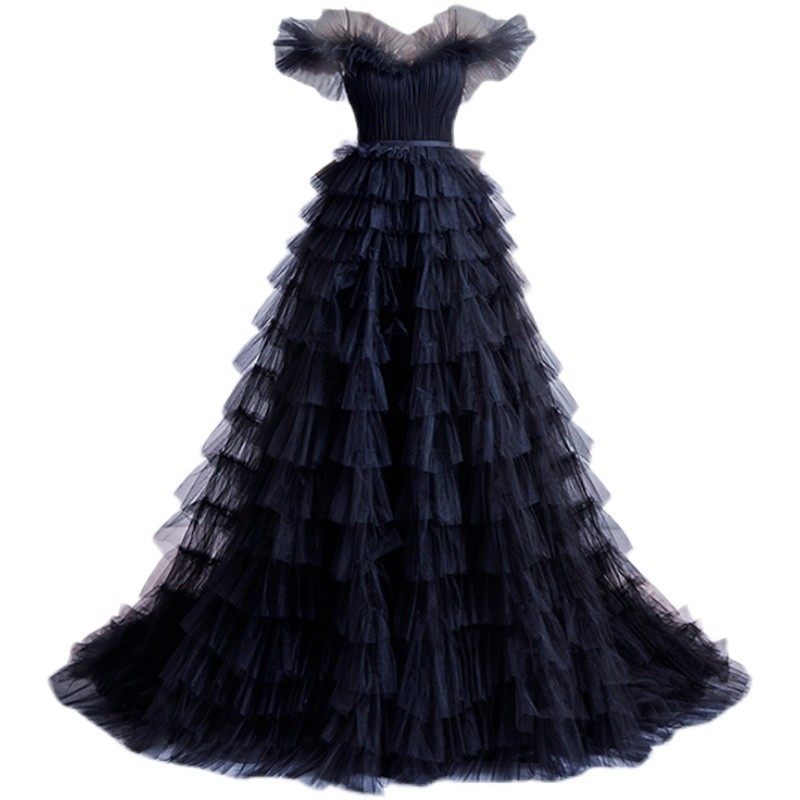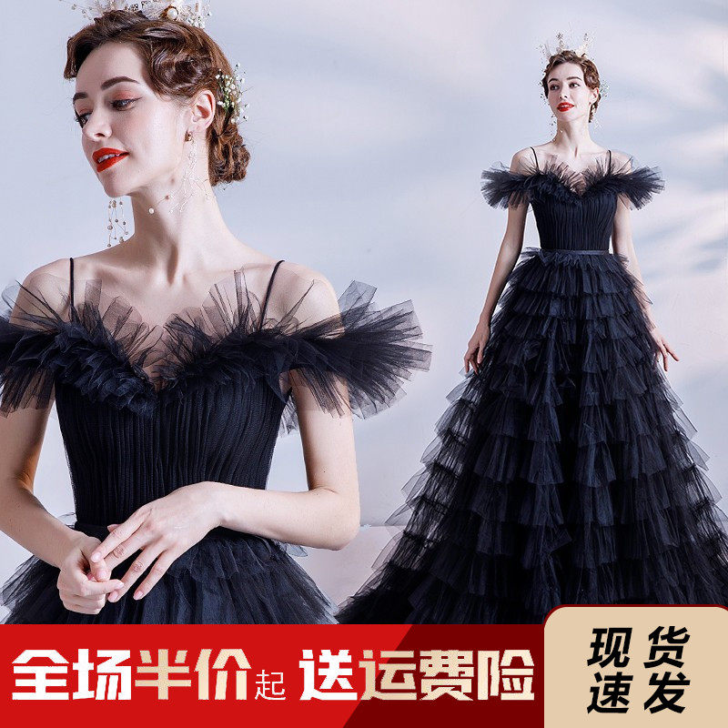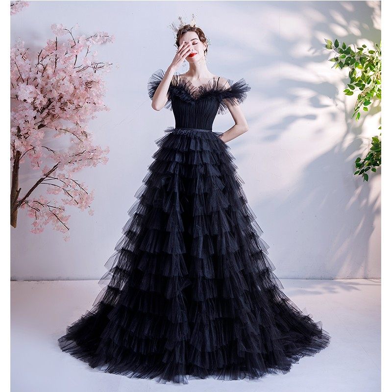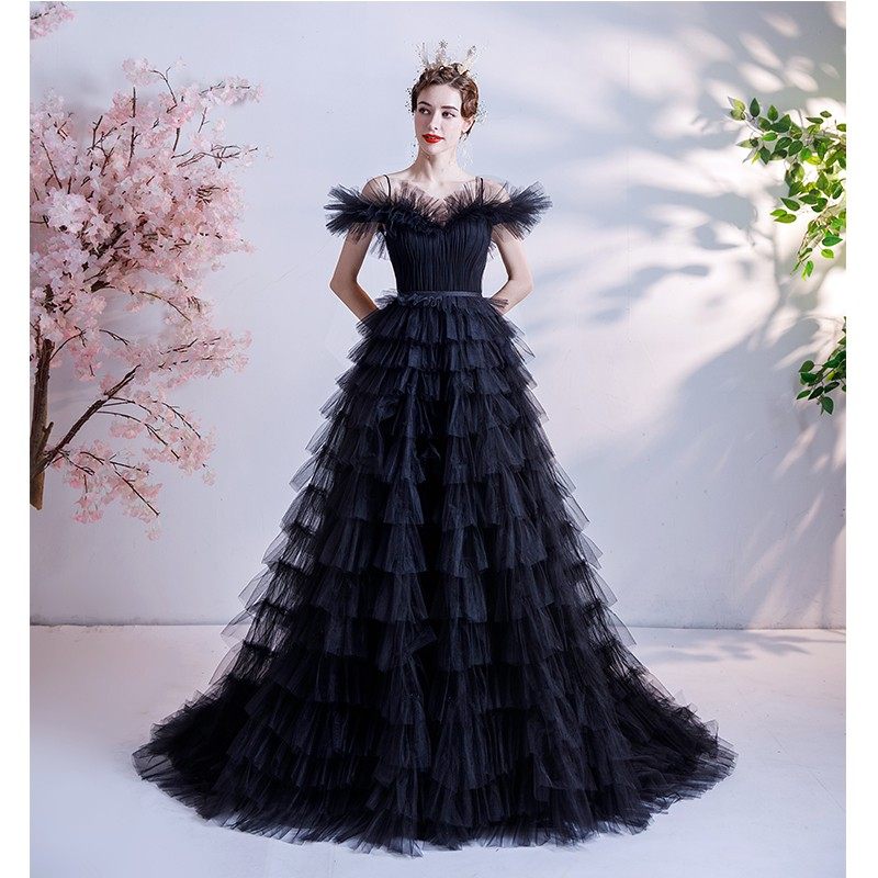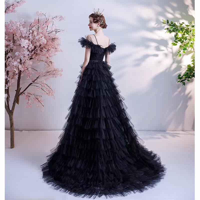 Черное свадебное платье, ассиметричный крой, для подиума