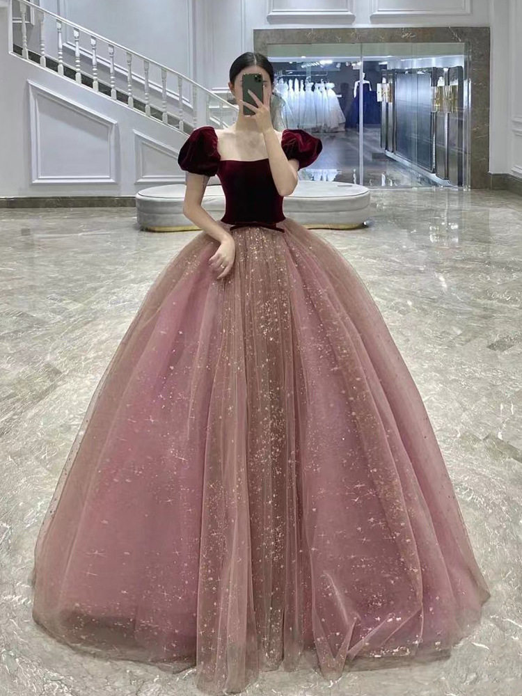 Красное бархатное ретро свадебное платье, наряд маленькой принцессы для невесты, юбка, юбка-пачка