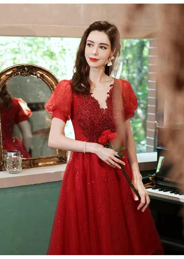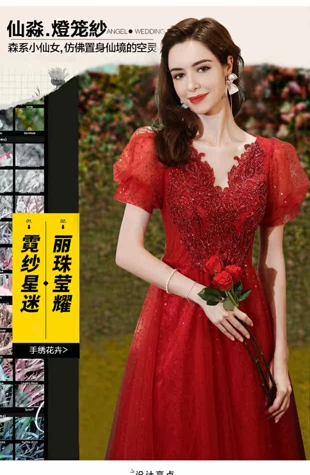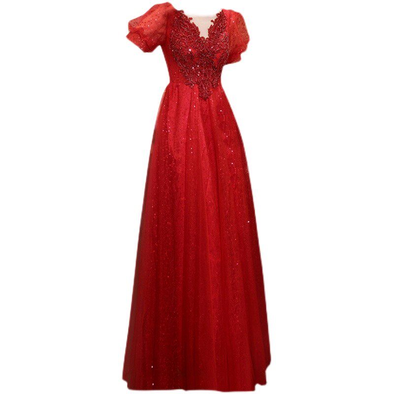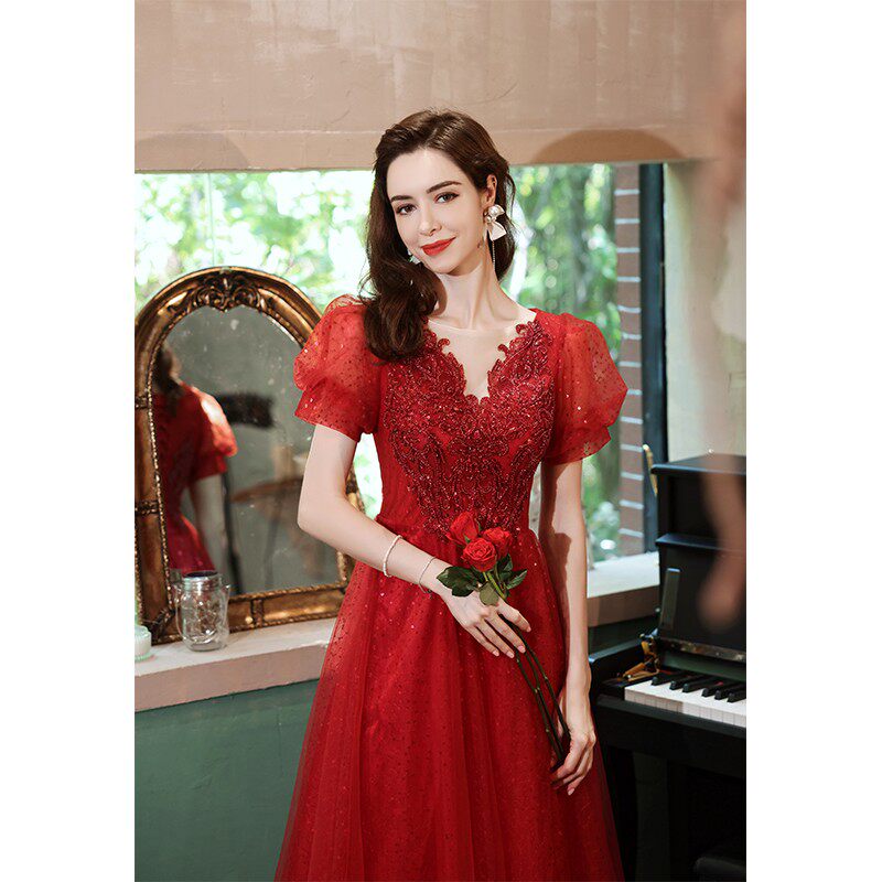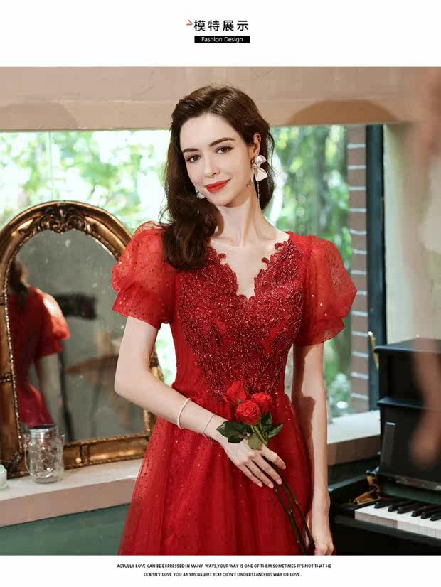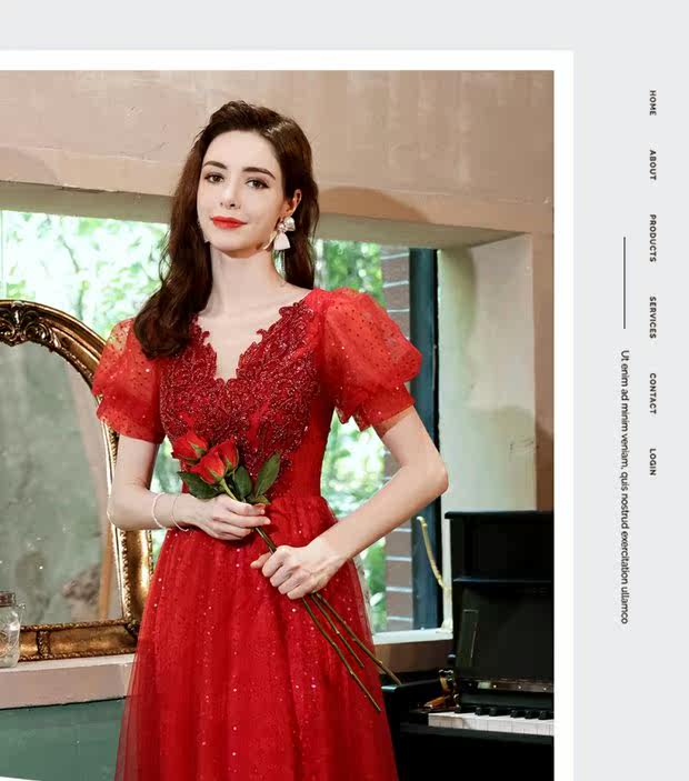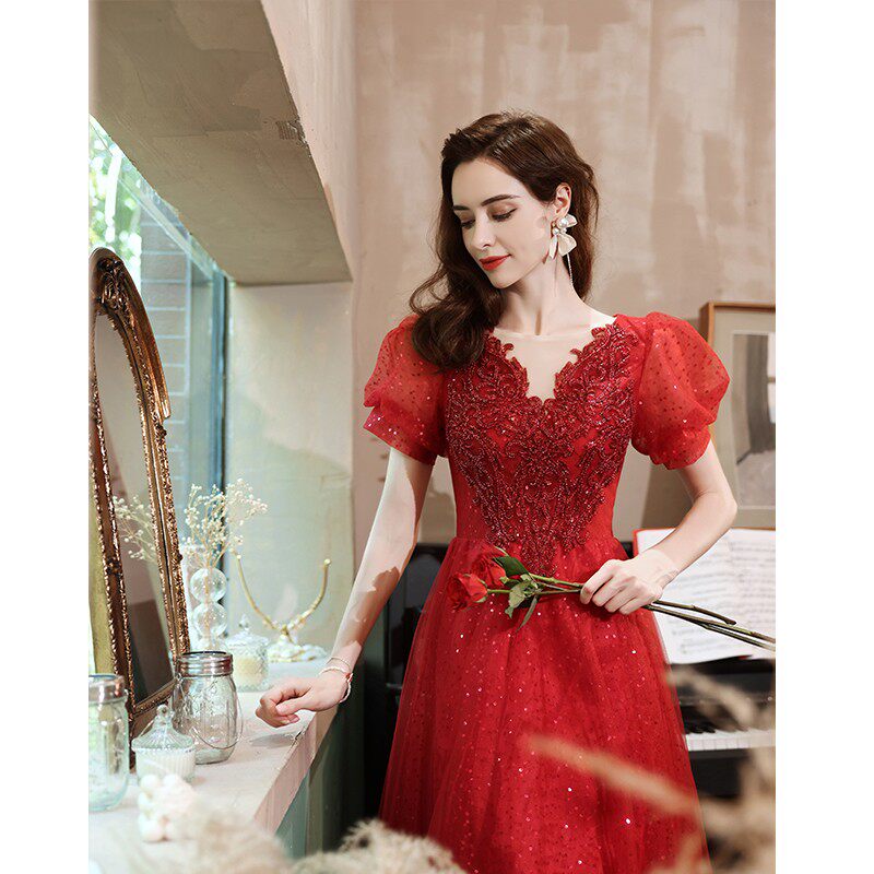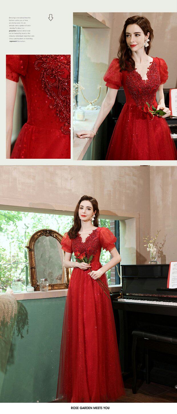 Сексуальное красное свадебное платье, вечернее платье для невесты, V-образный вырез, рукава фонарики