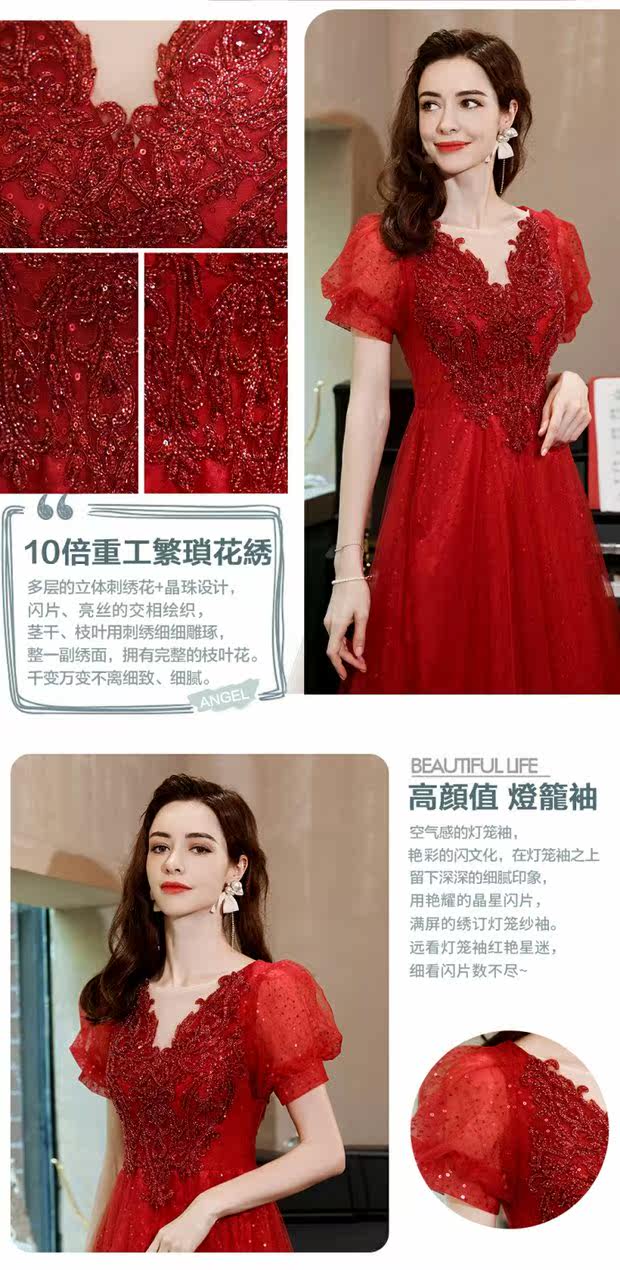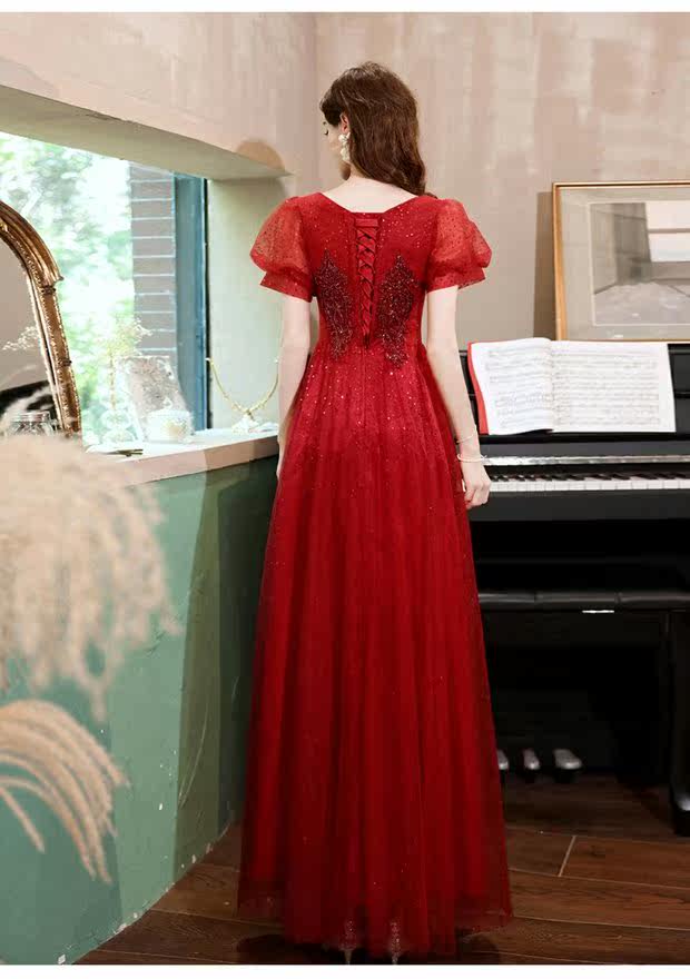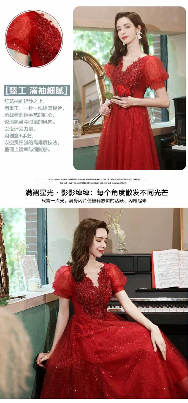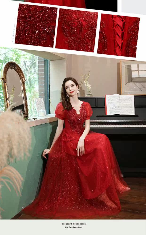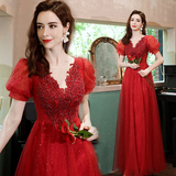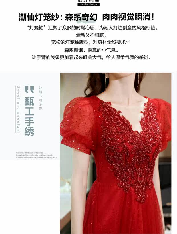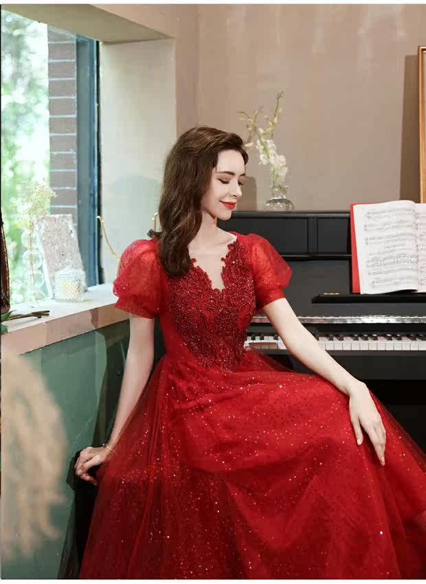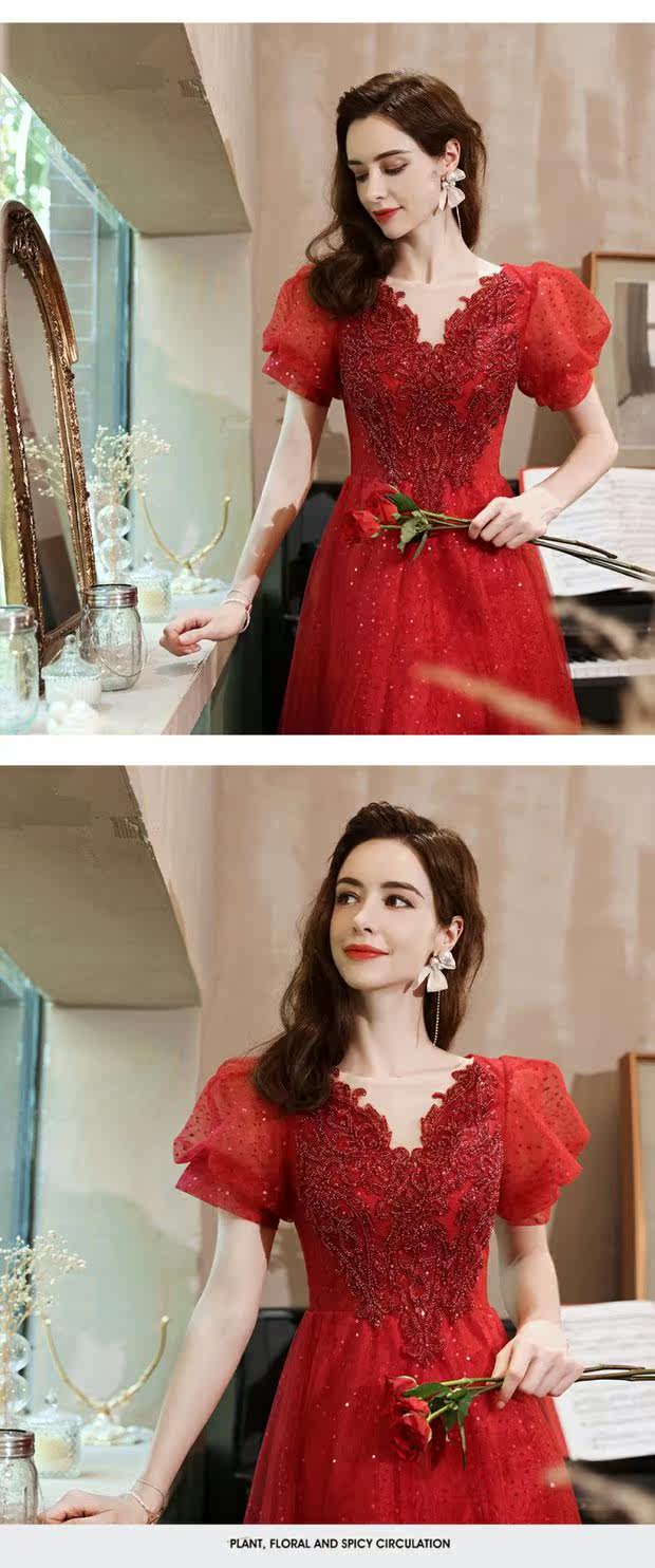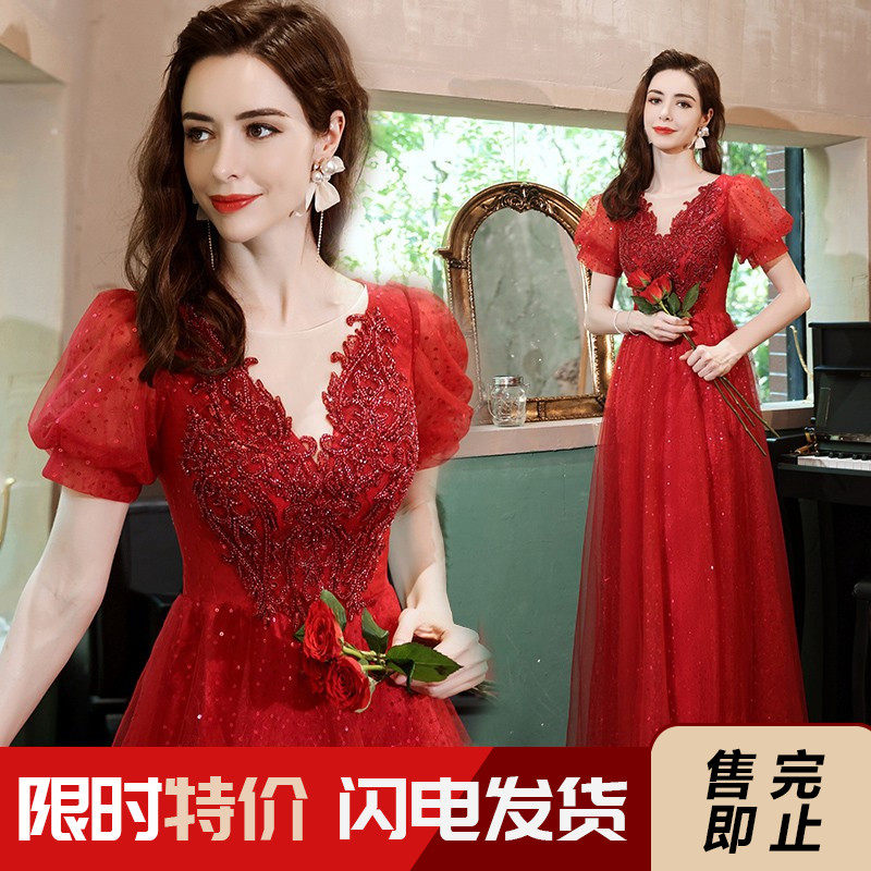Сексуальное красное свадебное платье, вечернее платье для невесты, V-образный вырез, рукава фонарики
