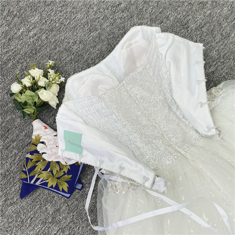Винтажное абсолютно новое подержанное свадебное платье без бретелек с пайетками и бисером ручной работы неправильной формы на подтяжках