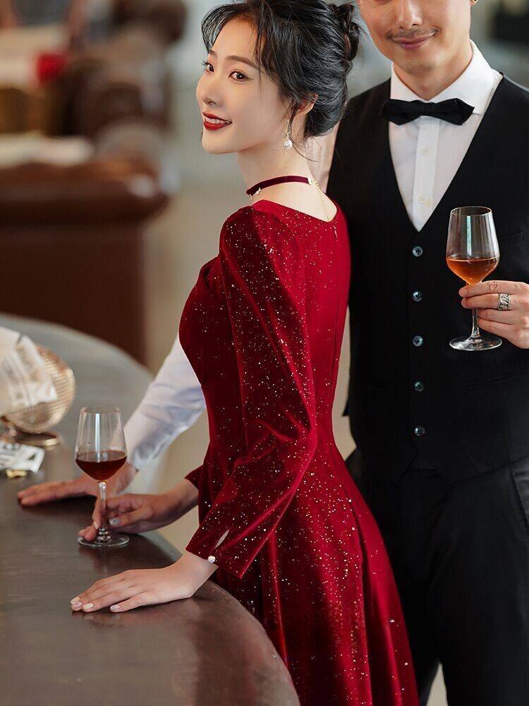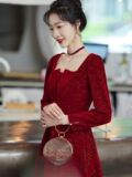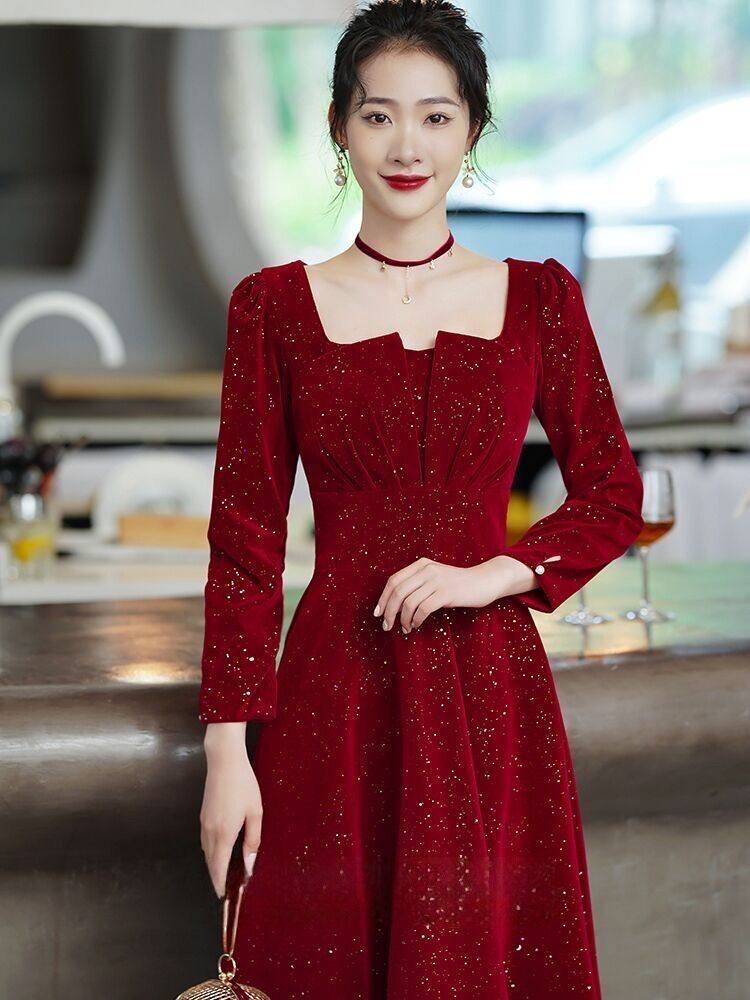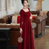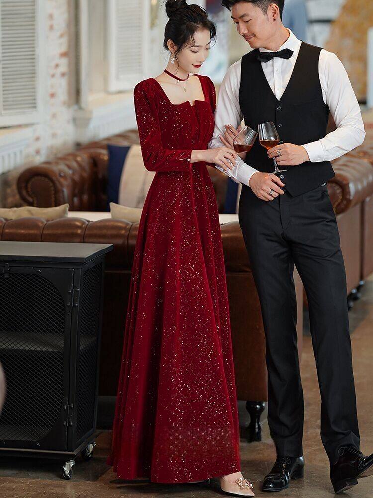 Демисезонное бордовое вечернее платье, коллекция 2023, изысканный стиль