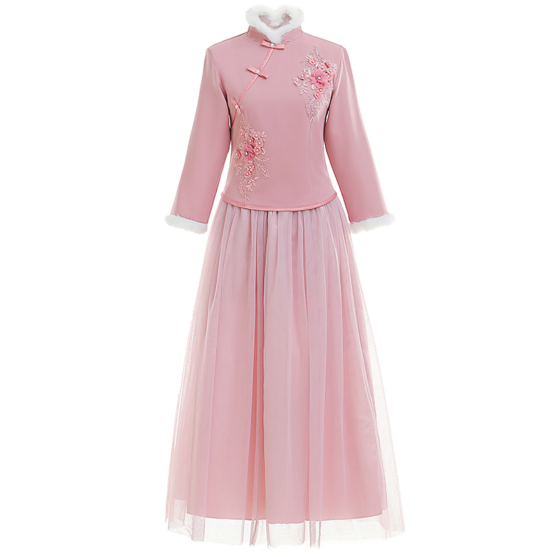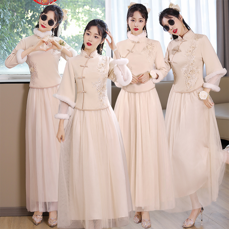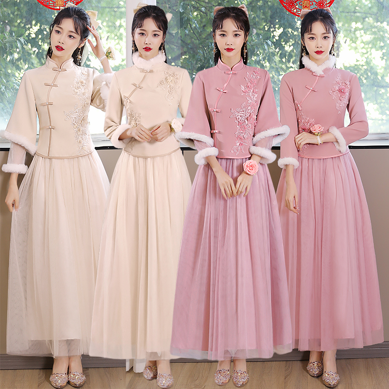 Зимнее платье подружки невесты, утепленная юбка для невесты, китайский стиль, для подружки невесты