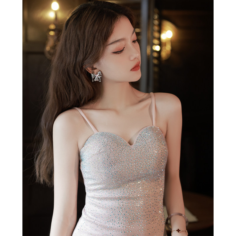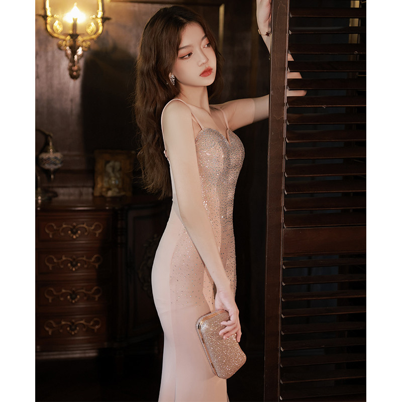 Розовое элитное вечернее платье, весенняя длинная юбка, изысканный стиль, крой «рыбий хвост»