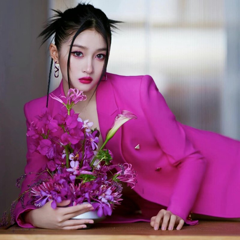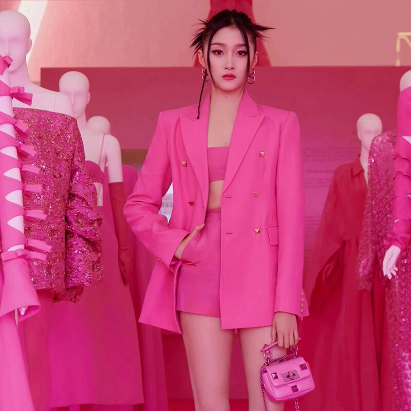 Красный пиджак классического кроя, костюм, комплект, французский стиль, китайский стиль, яркий броский стиль, изысканный стиль