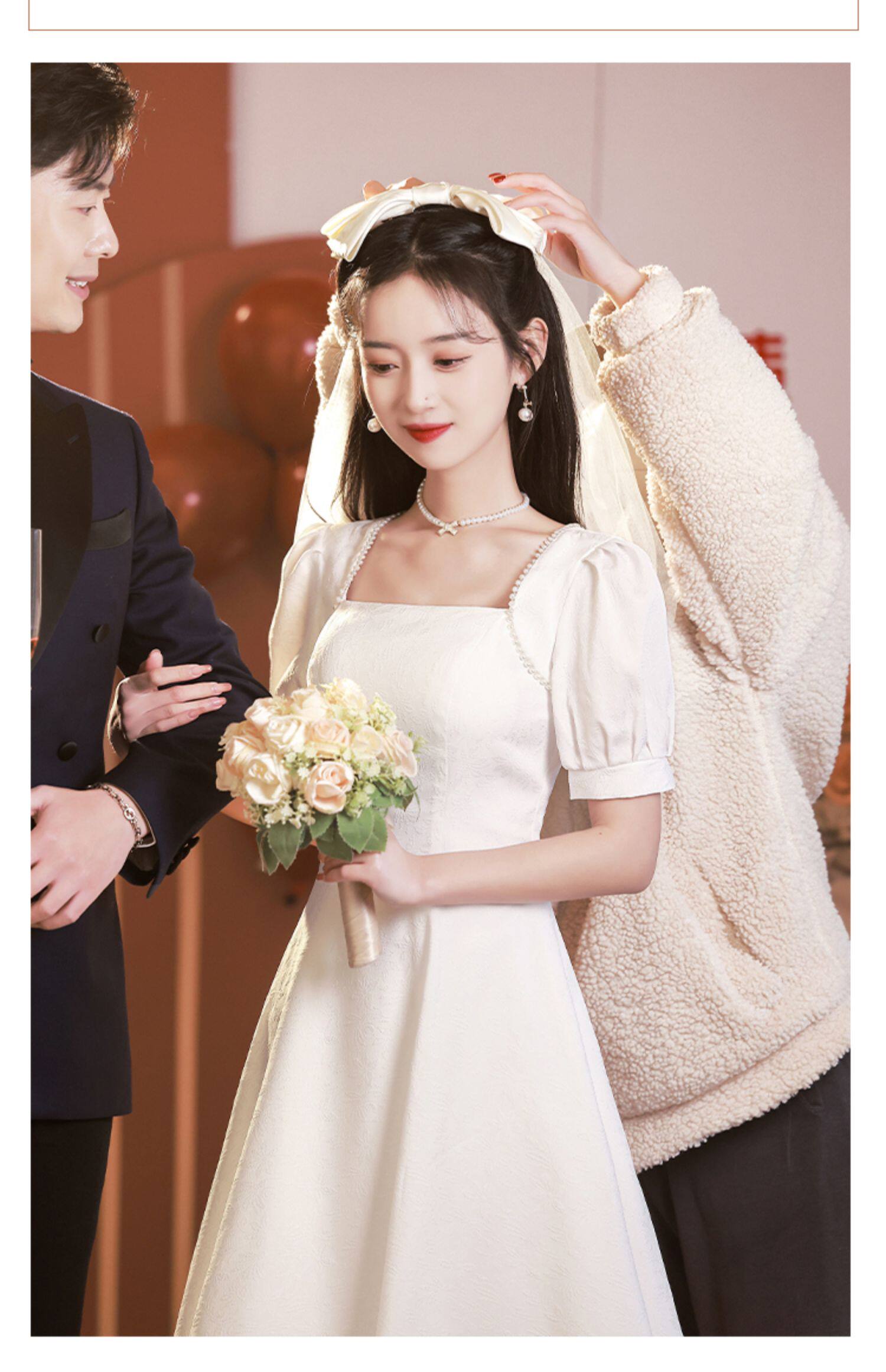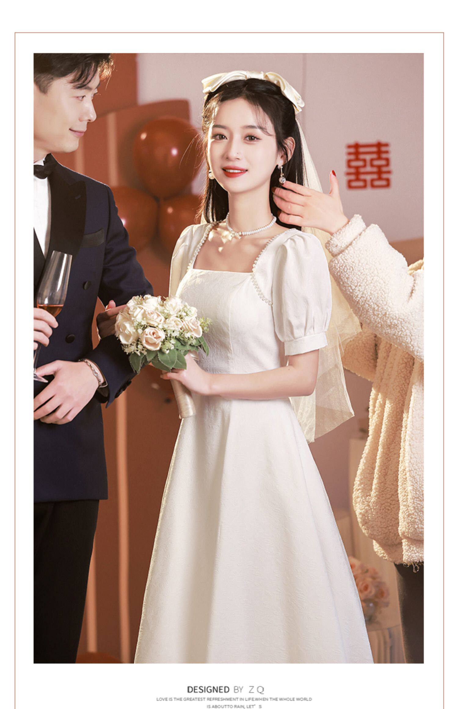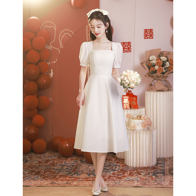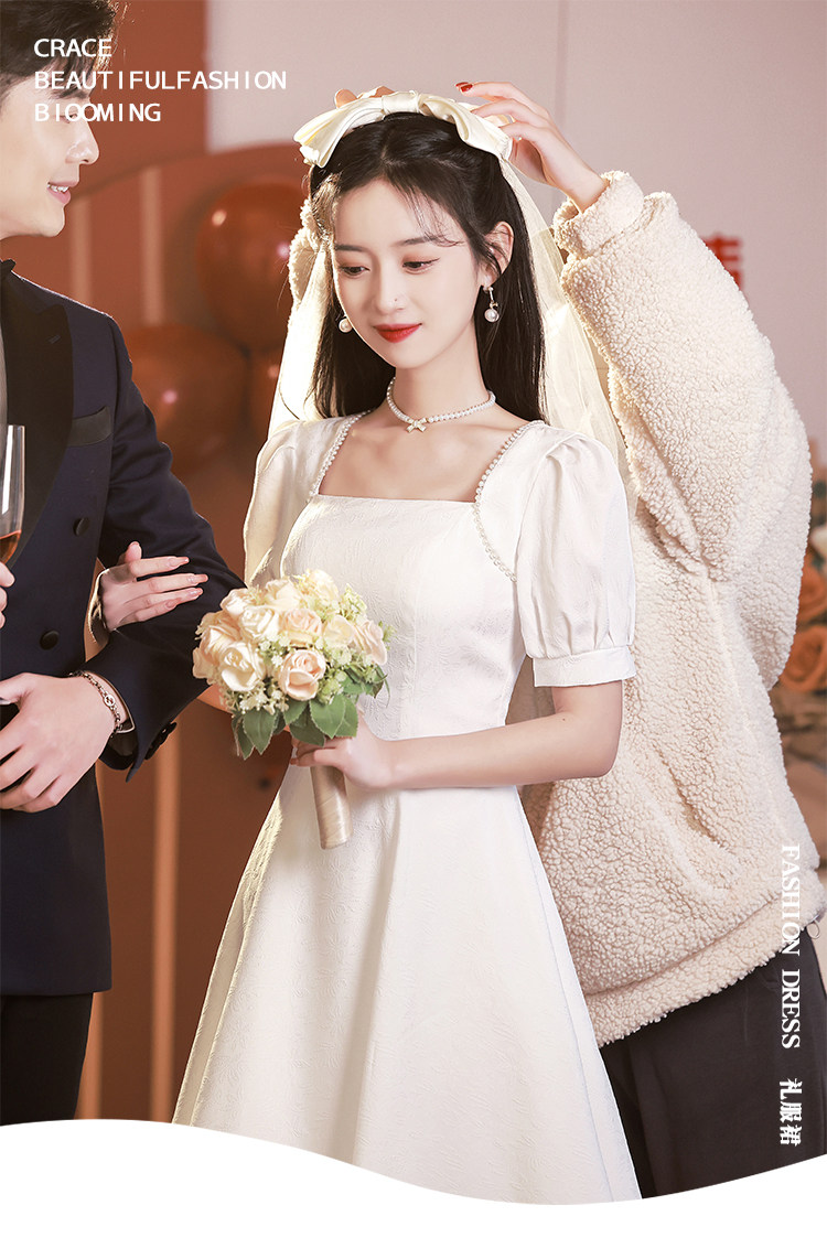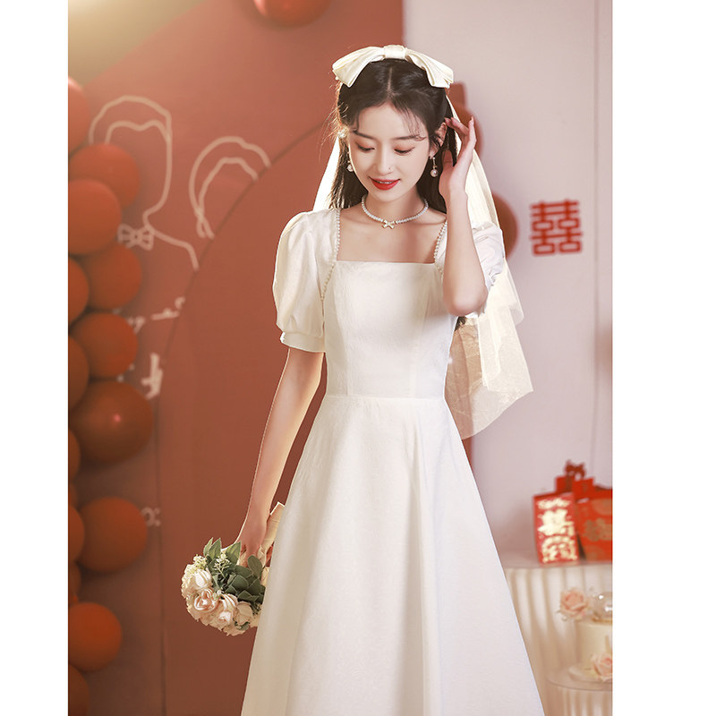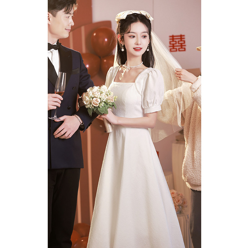 Белое свадебное платье, белая юбка, французский стиль, изысканный стиль