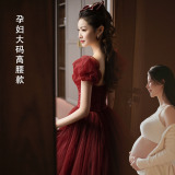 Бордовое цветное вечернее платье для беременных, большой размер, изысканный стиль